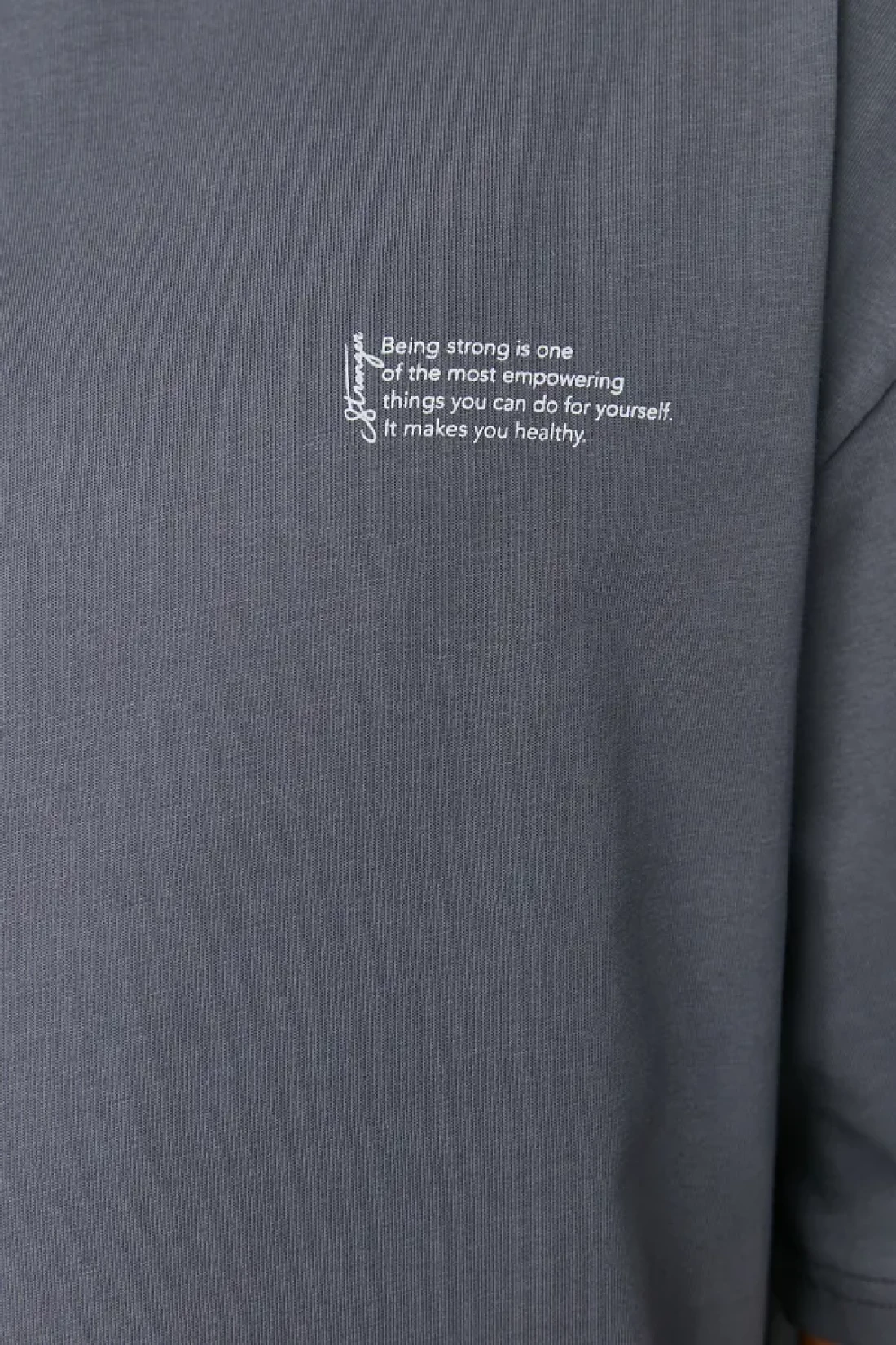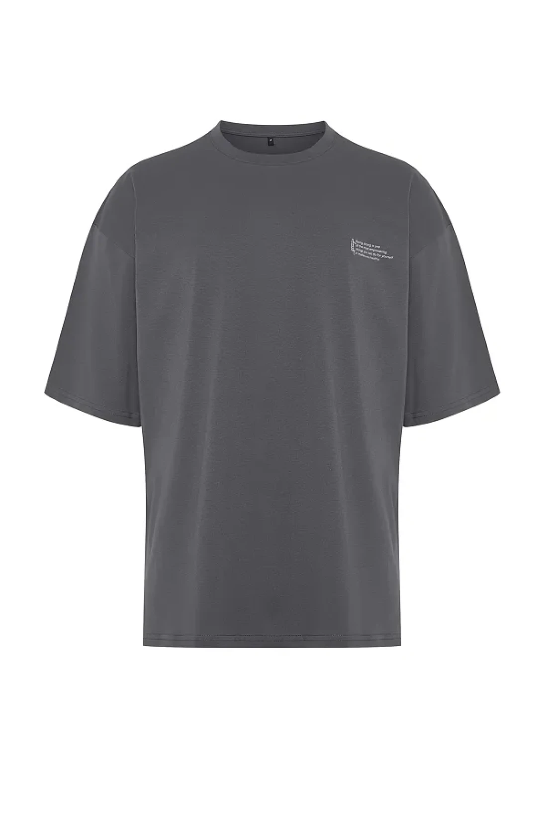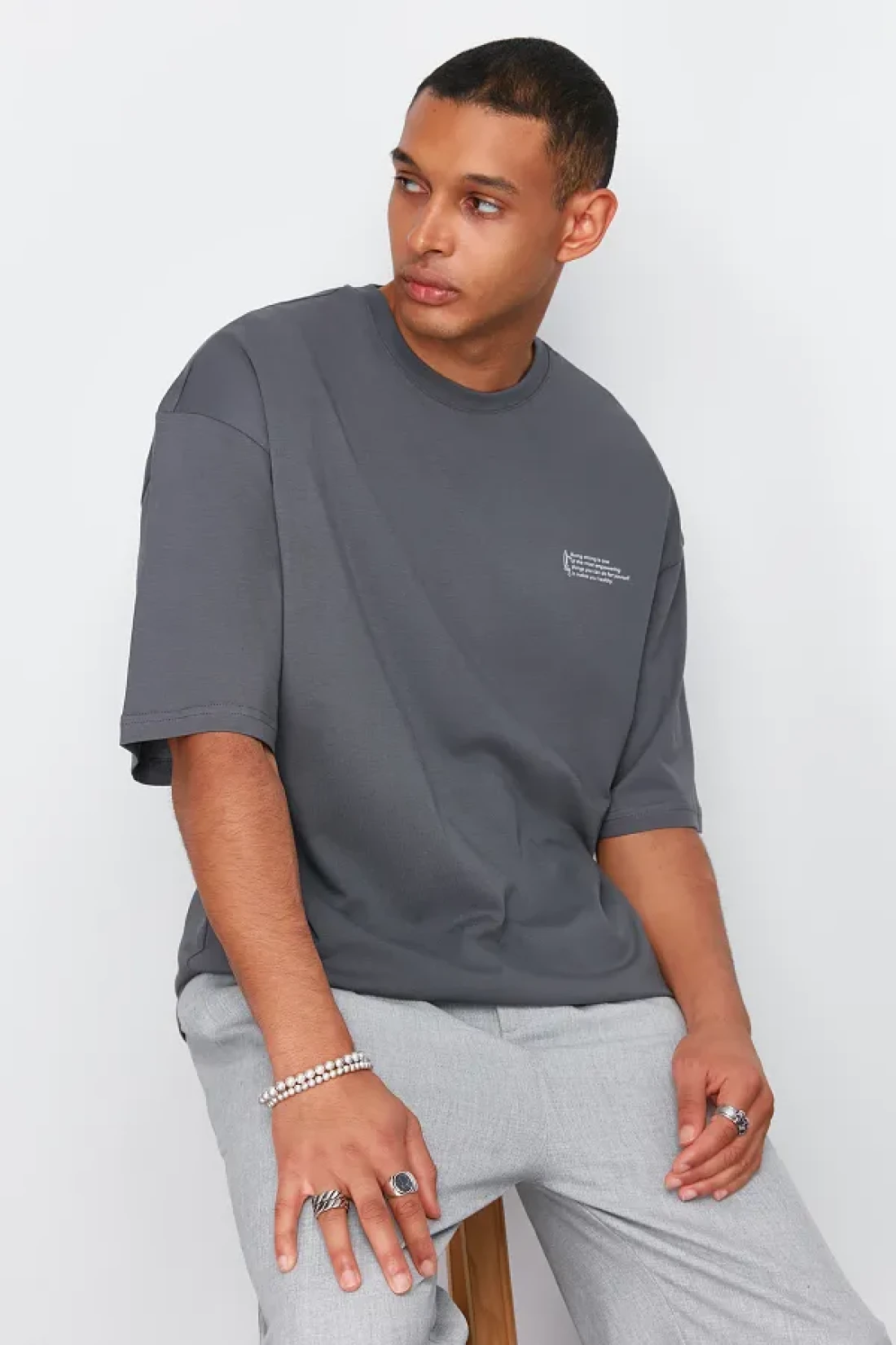 Collection تي شيرت أنثراسايت كبير الحجم مطبوع برقبة دائرية - 100% قطن TMNSS23TS00084
