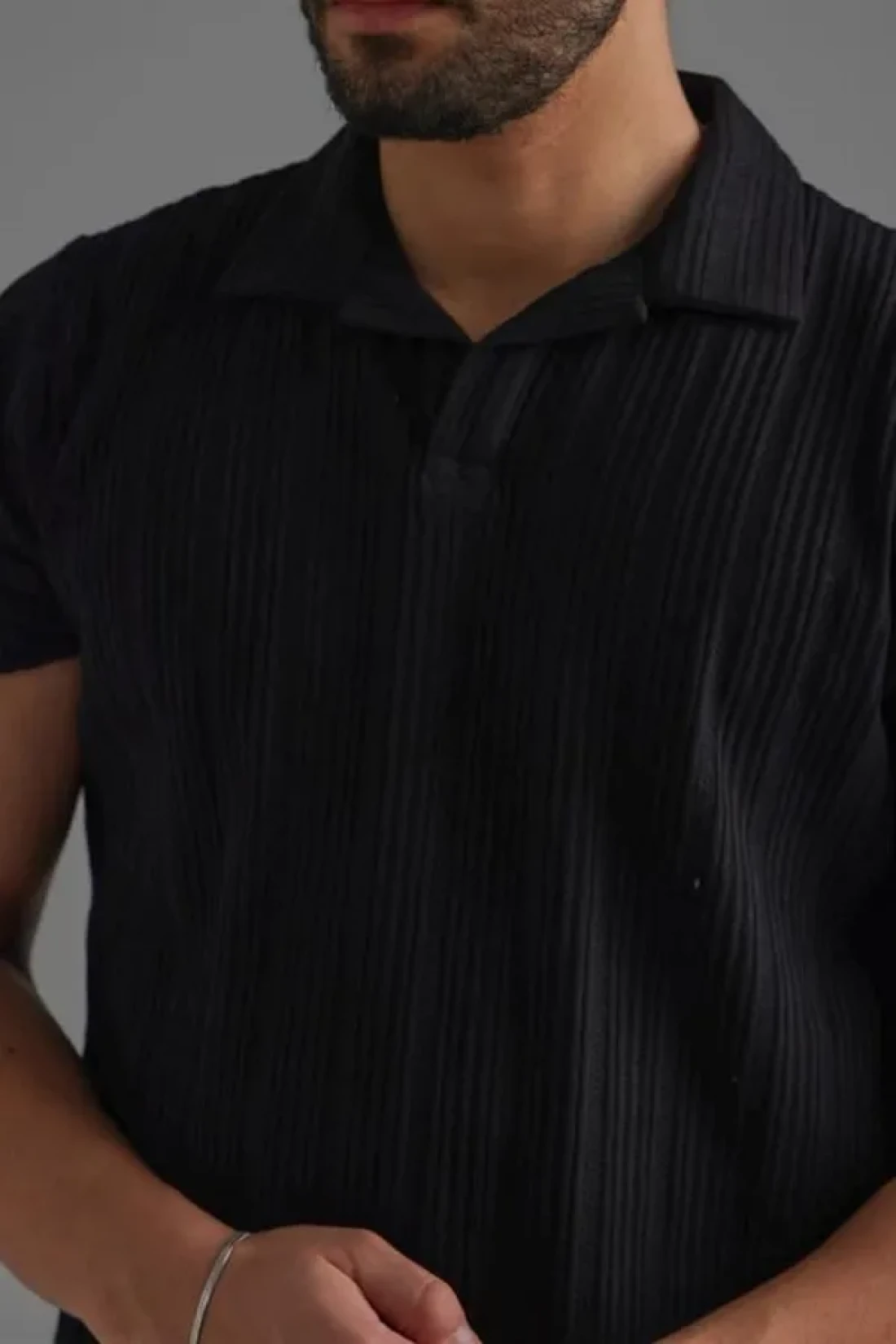 Tarz Cool تي شيرت بولو بياقة مطرزة باللون الأسود للرجال
