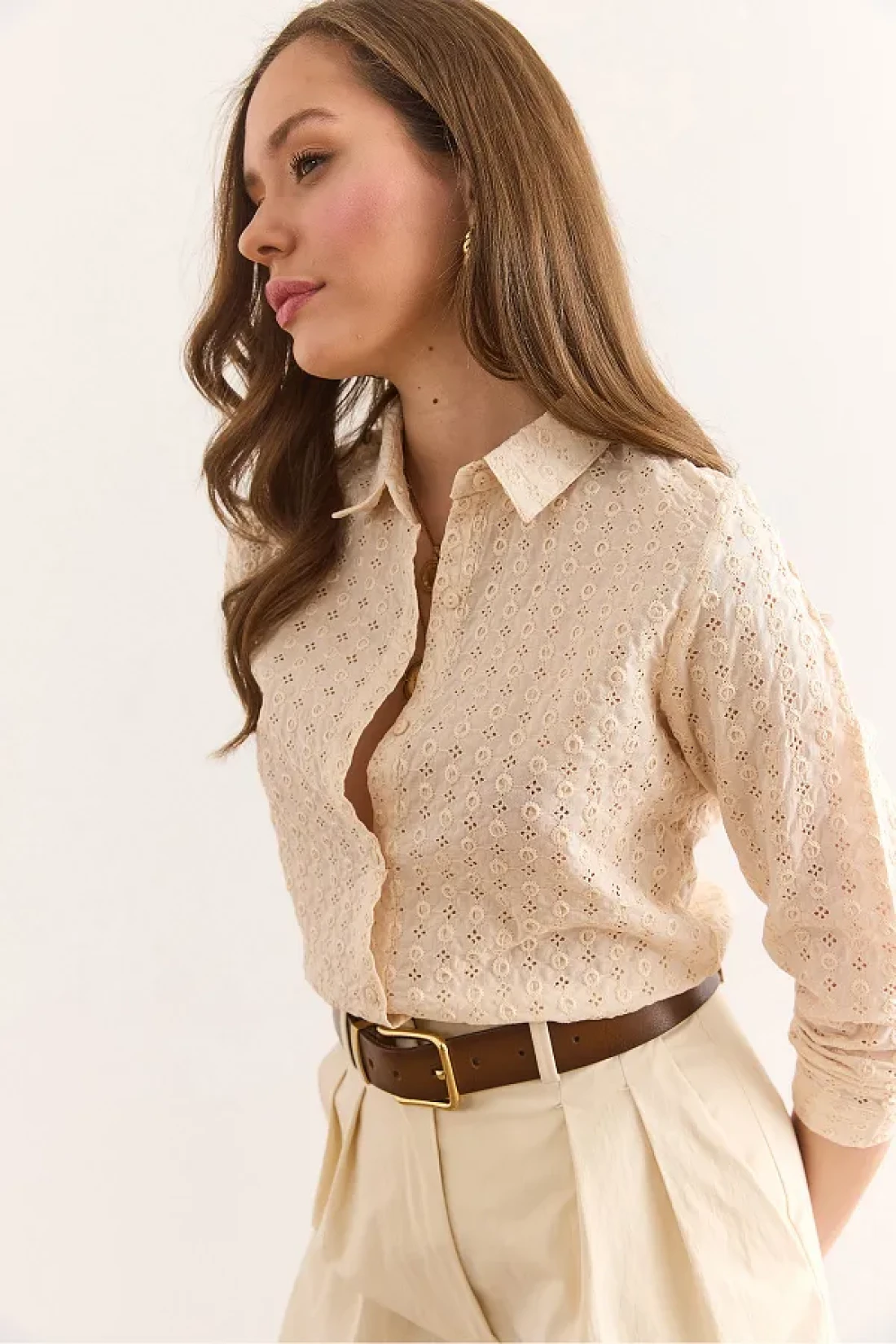 Olalook قميص إكرو نسائي ذو قصة عادية GML-19001332