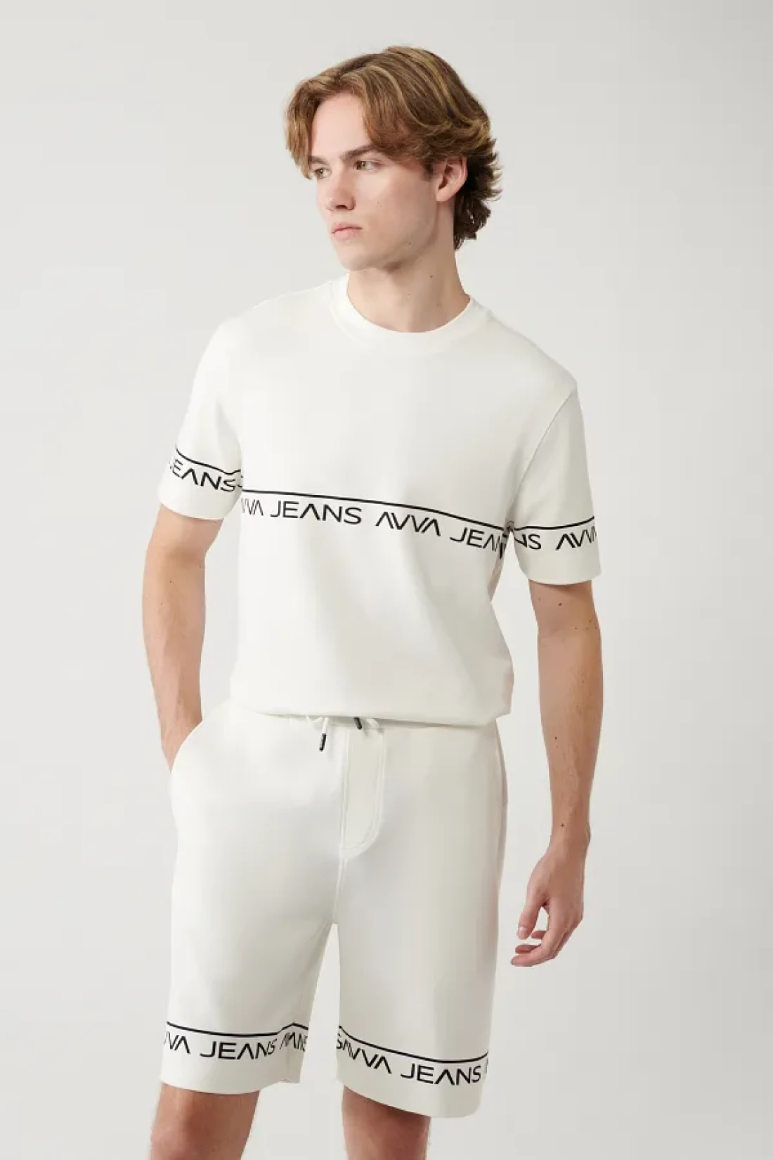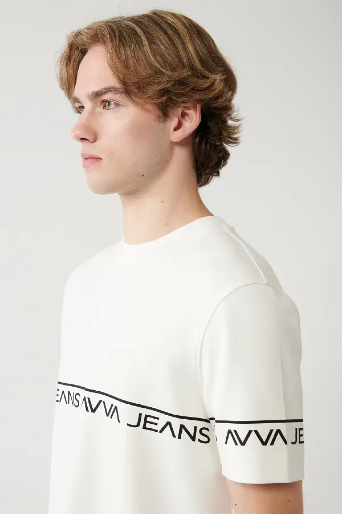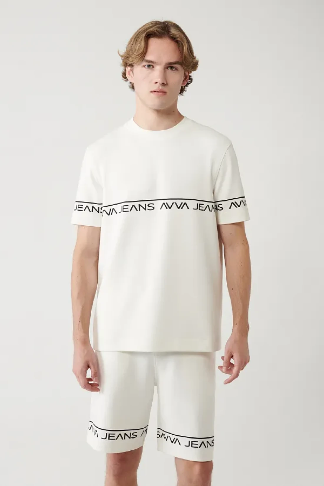 Avva تي شيرت رجالي أبيض مطبوع برقبة دائرية وناعم الملمس A41y1329