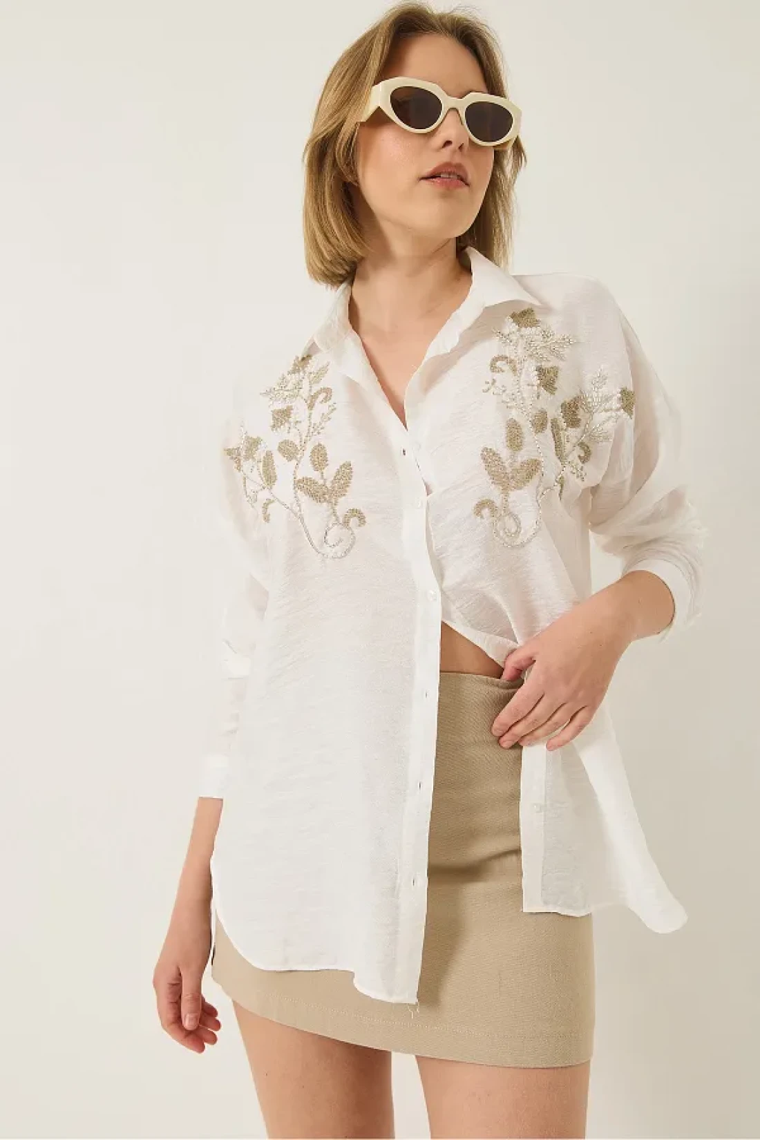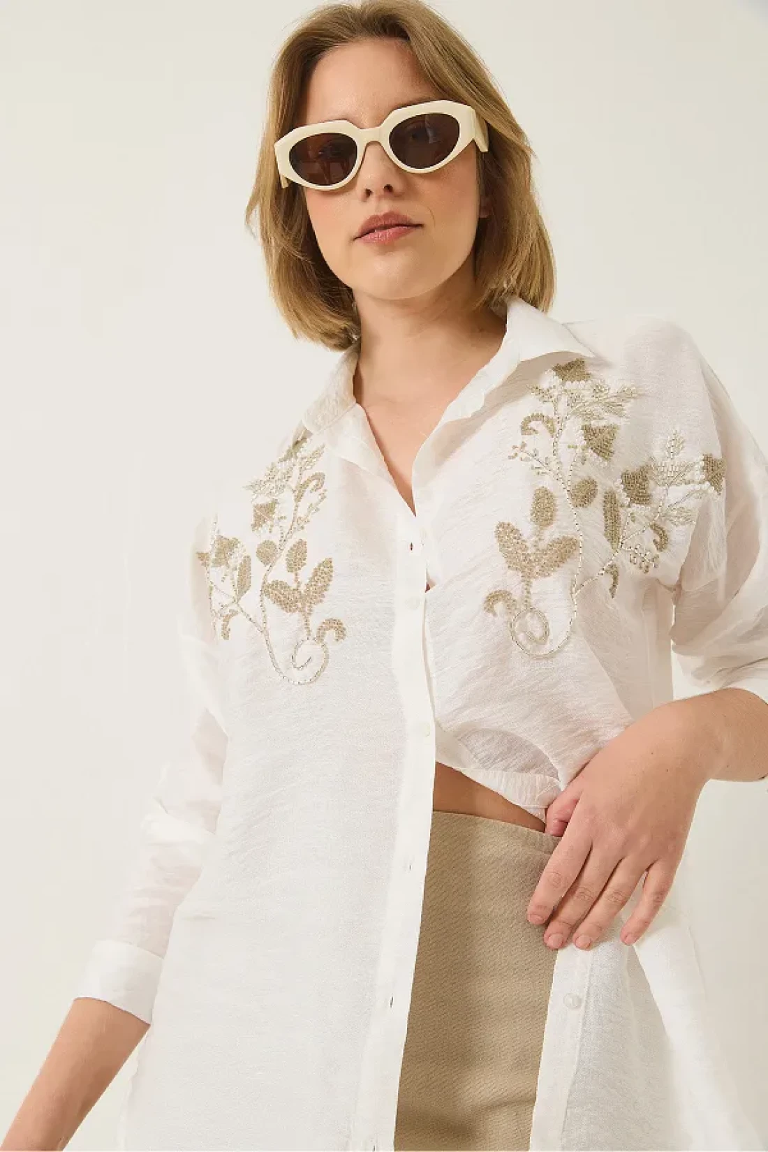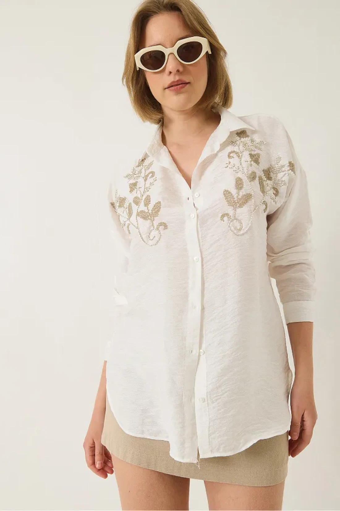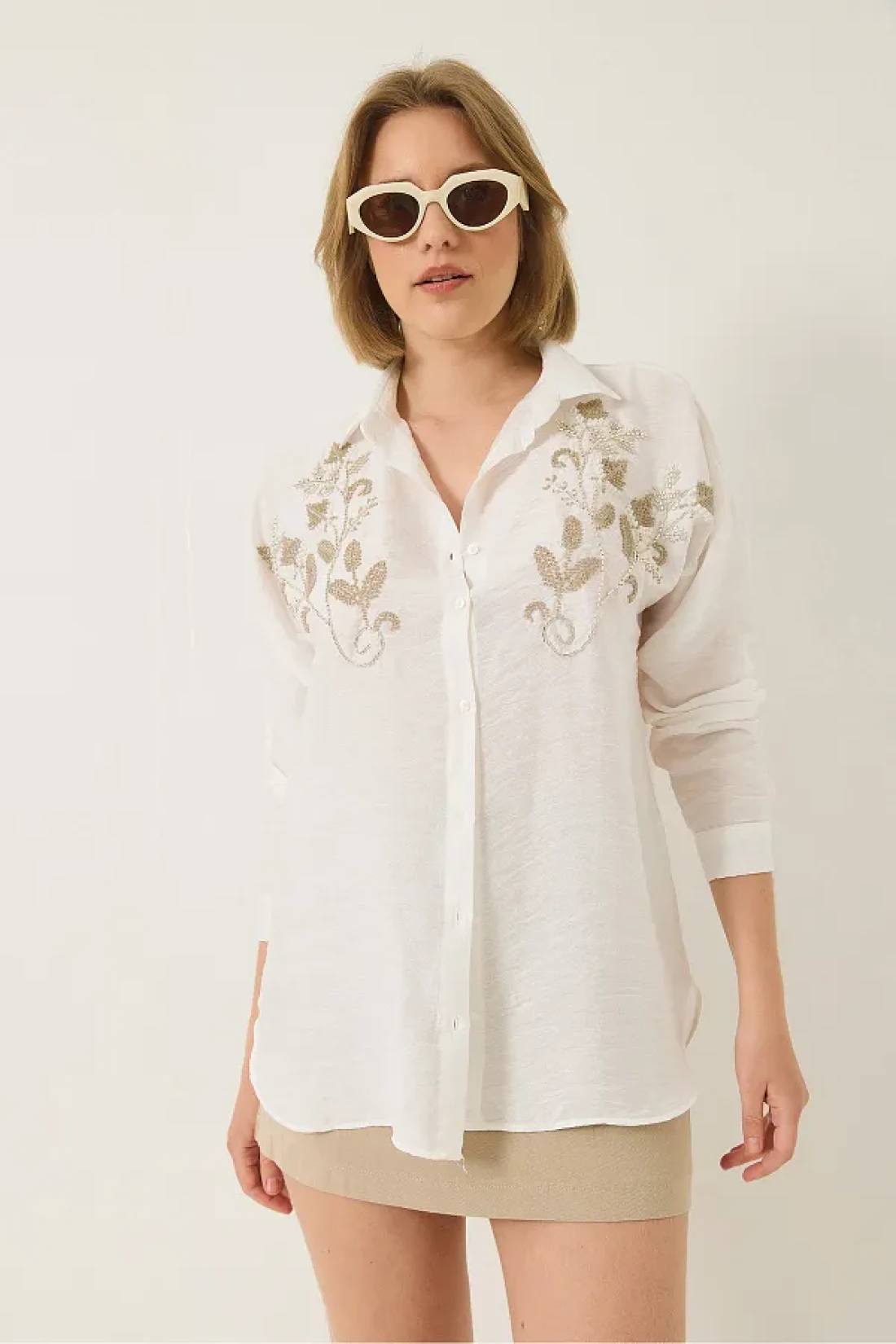 Bianco Lucci قميص Aerobin نسائي مطرز بالترتر والترتر ذو المقاس العادي 60283213