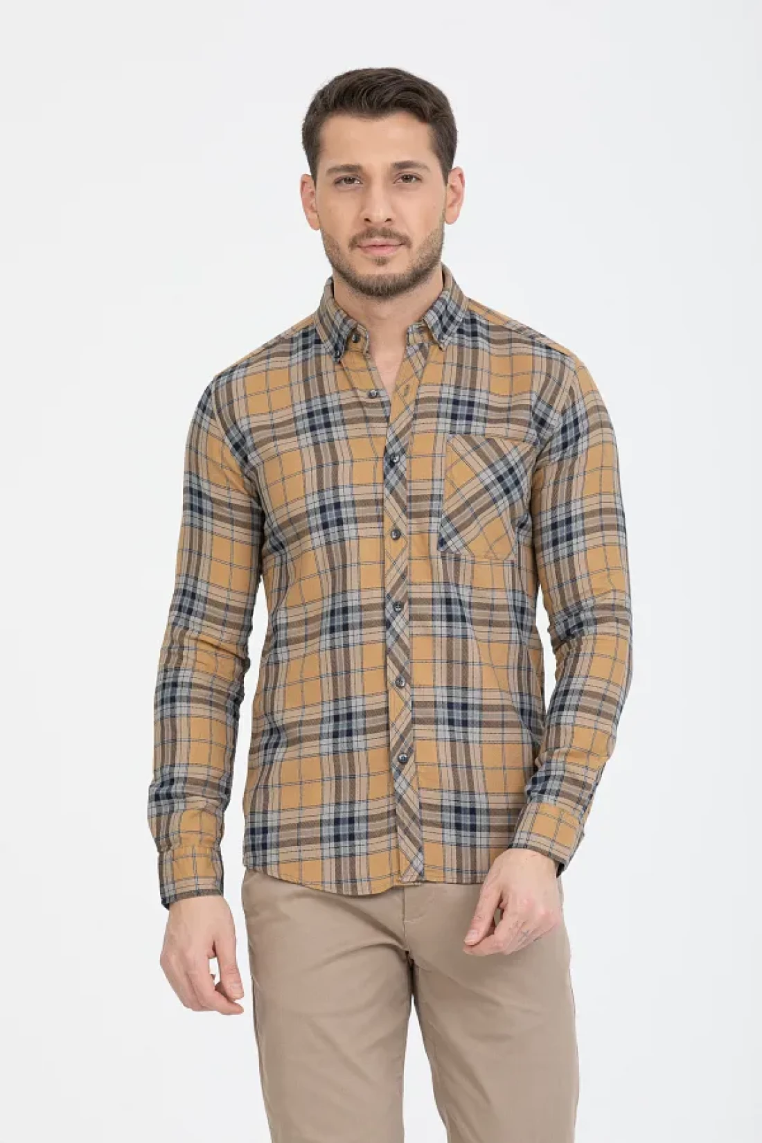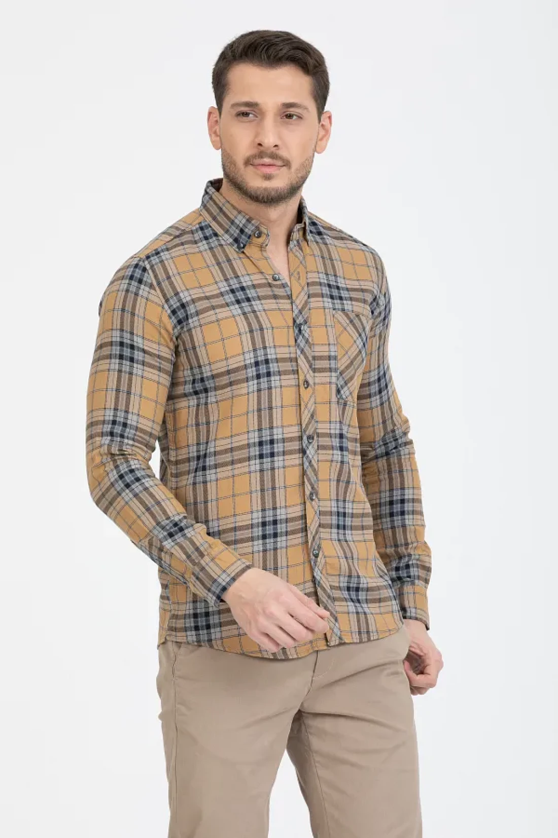 - بديل مثالي لأولئك الذين لا يتخلون عن الخطوط الكلاسيكية بنمط منقوش/مربع. بفضل مادته القطنية، فإنه يتمتع ببنية قابلة للتنفس ويوفر الراحة طوال اليوم.
