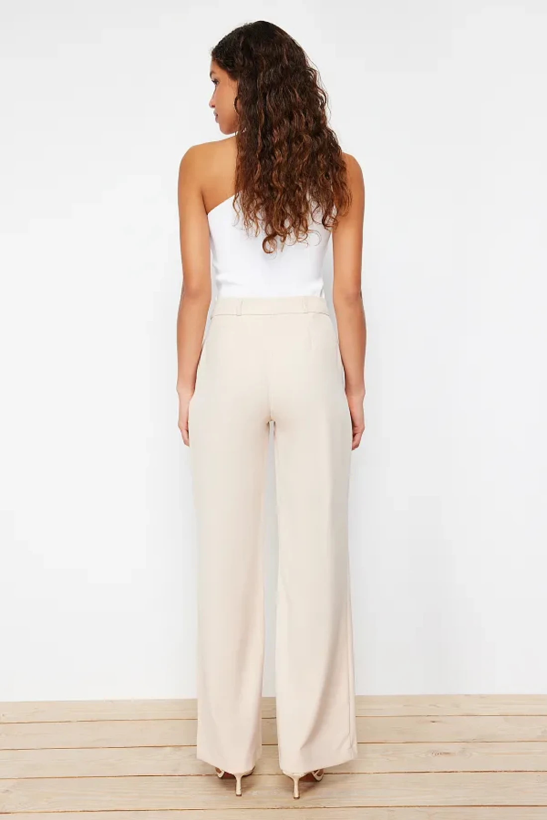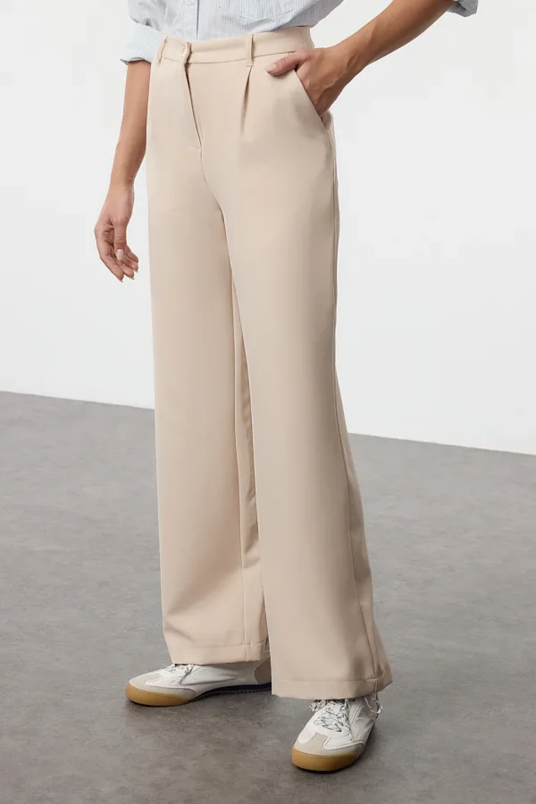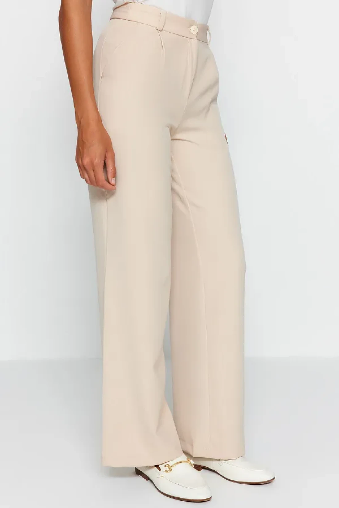 Collection بنطال قماش مطوي عالي الخصر بأرجل واسعة - TWOAW21PL0076
