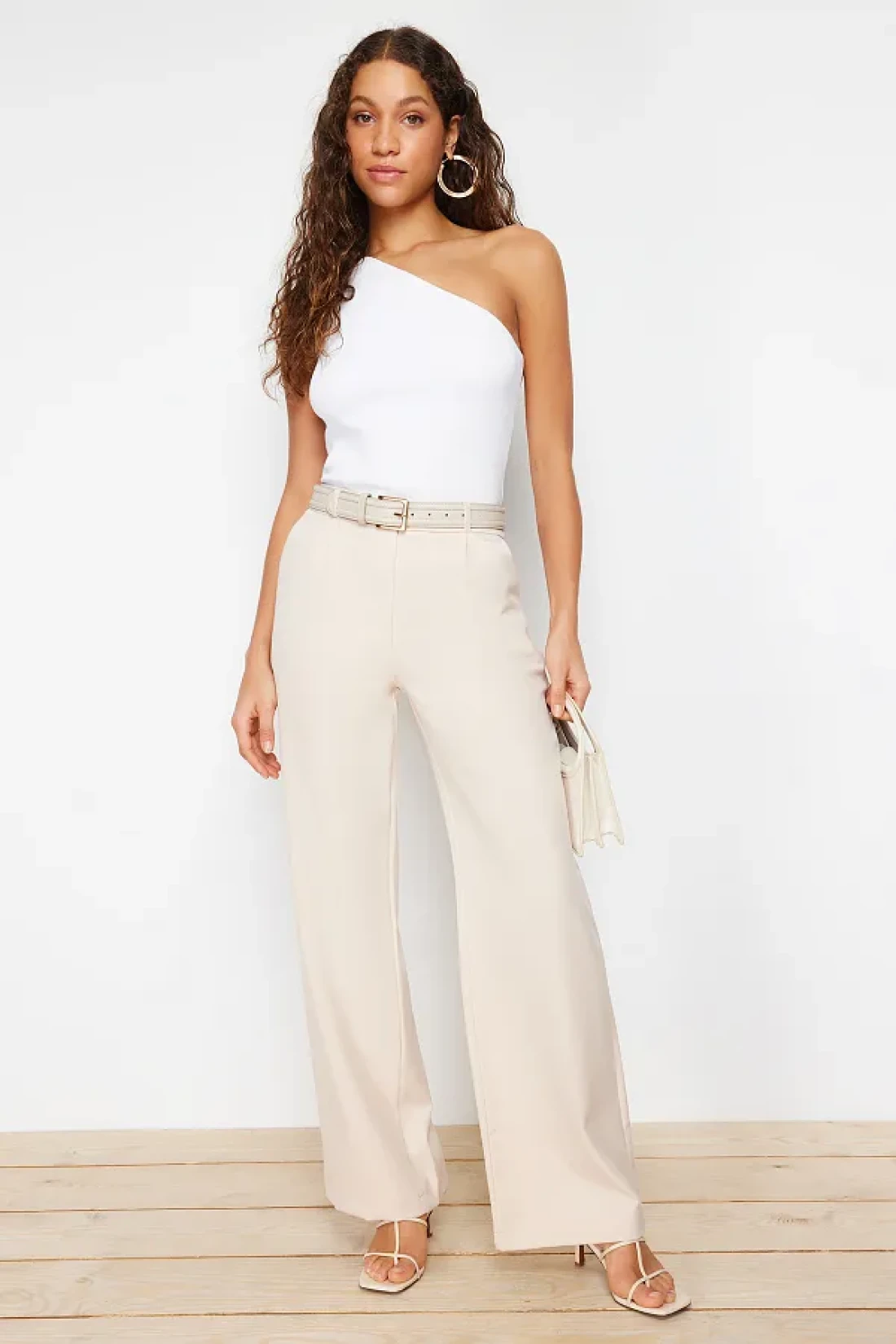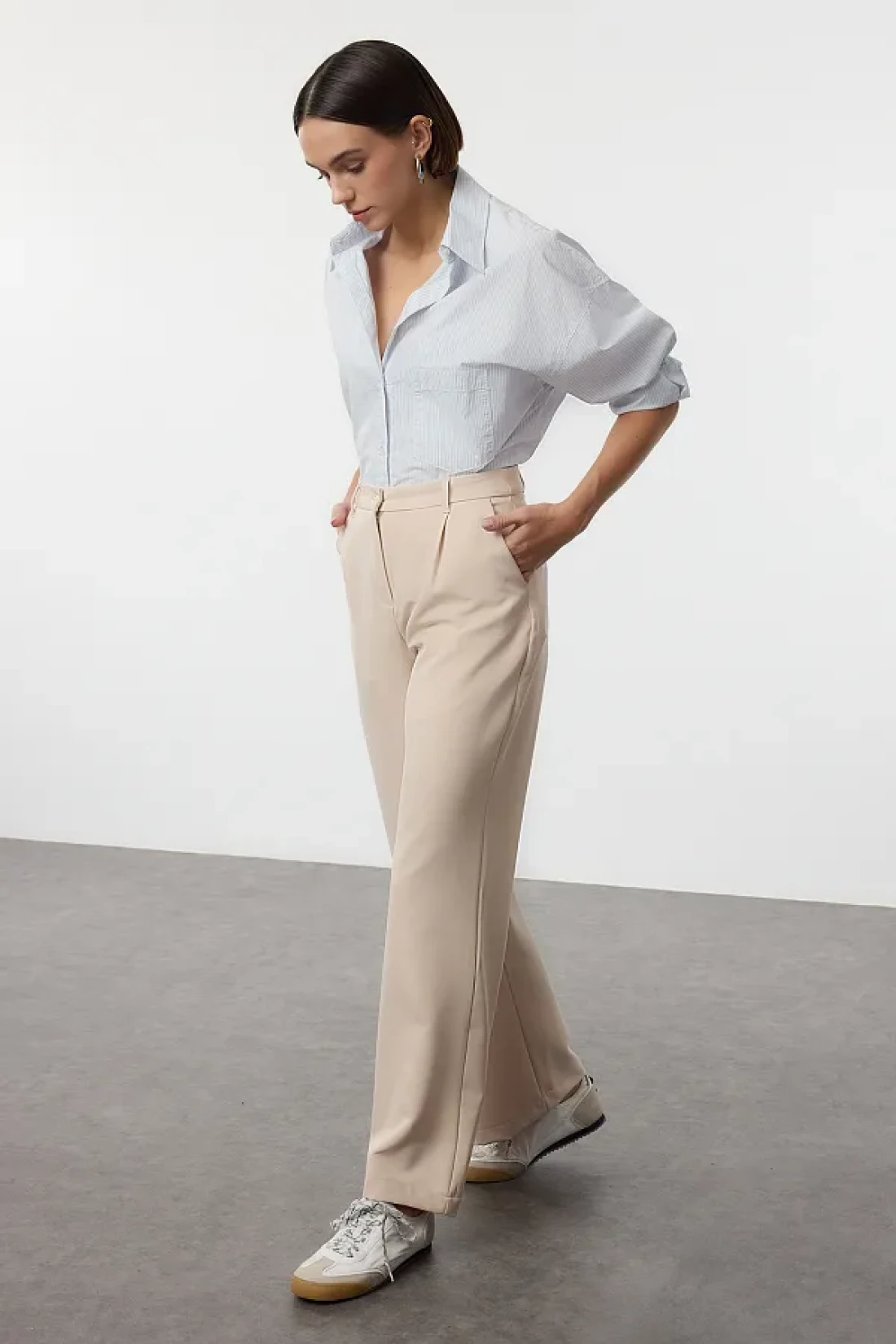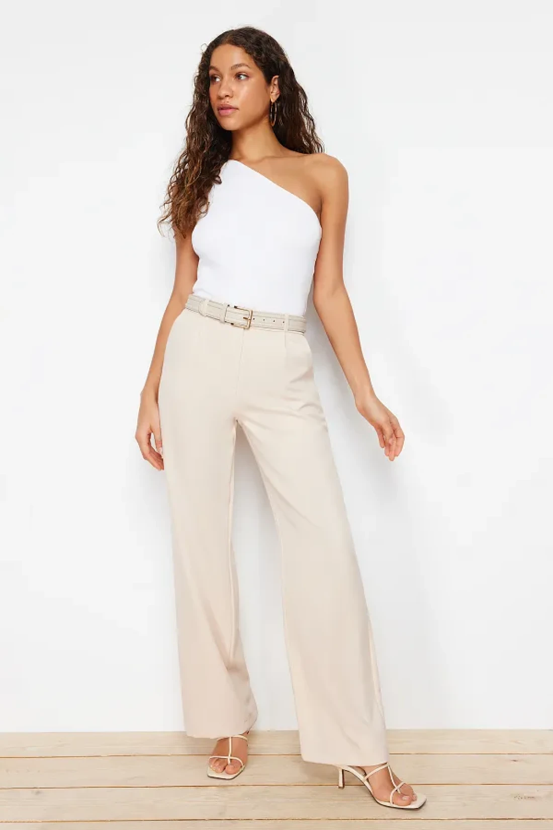 Collection بنطال قماش مطوي عالي الخصر بأرجل واسعة - TWOAW21PL0076