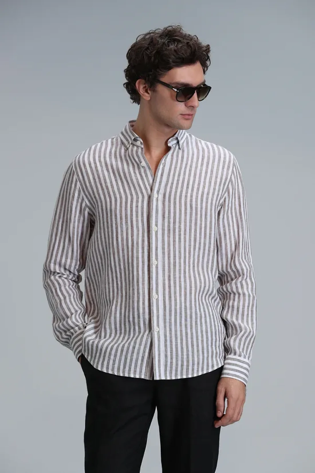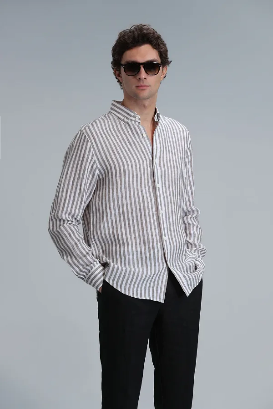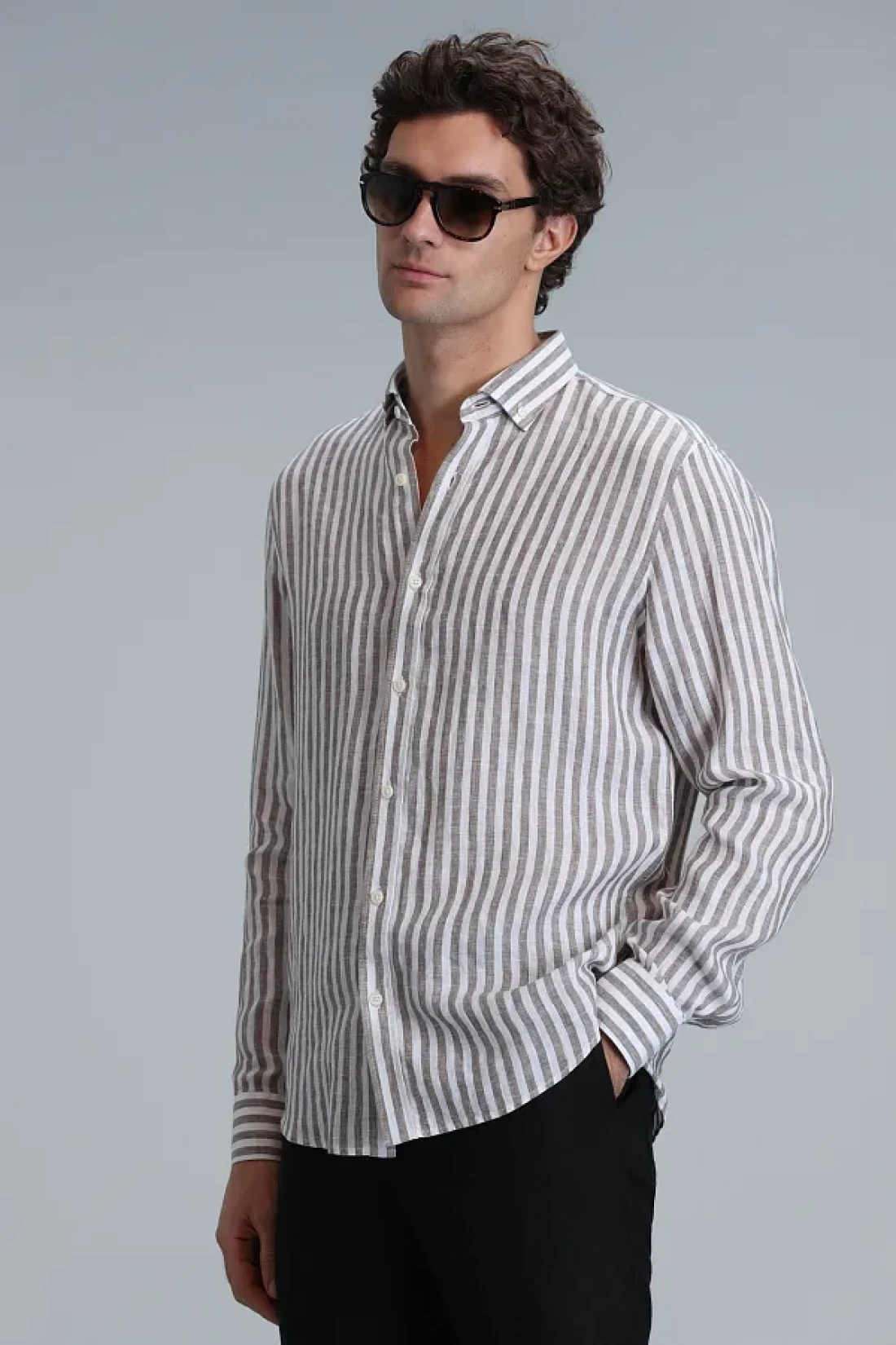 قميص رجالي أساسي جديد قميص رجالي منسوج من الكتان بنسبة 100% بمقاس عادي