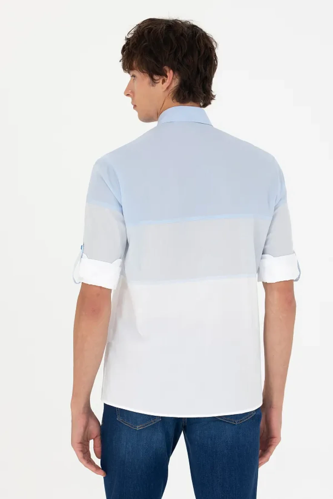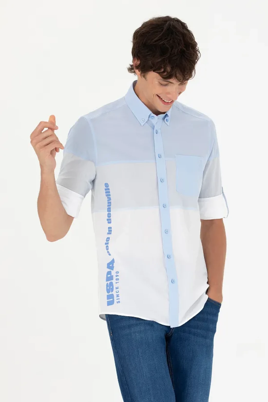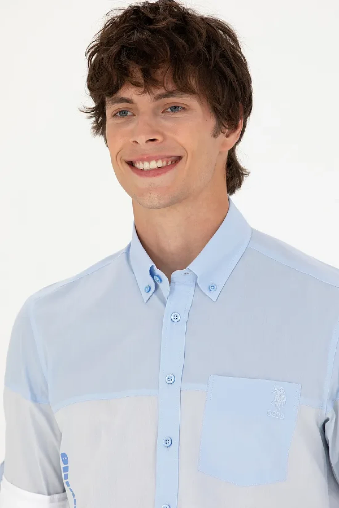 U.S. Polo Assn. قميص رجالي أزرق بأكمام طويلة 50263758 -vr036
