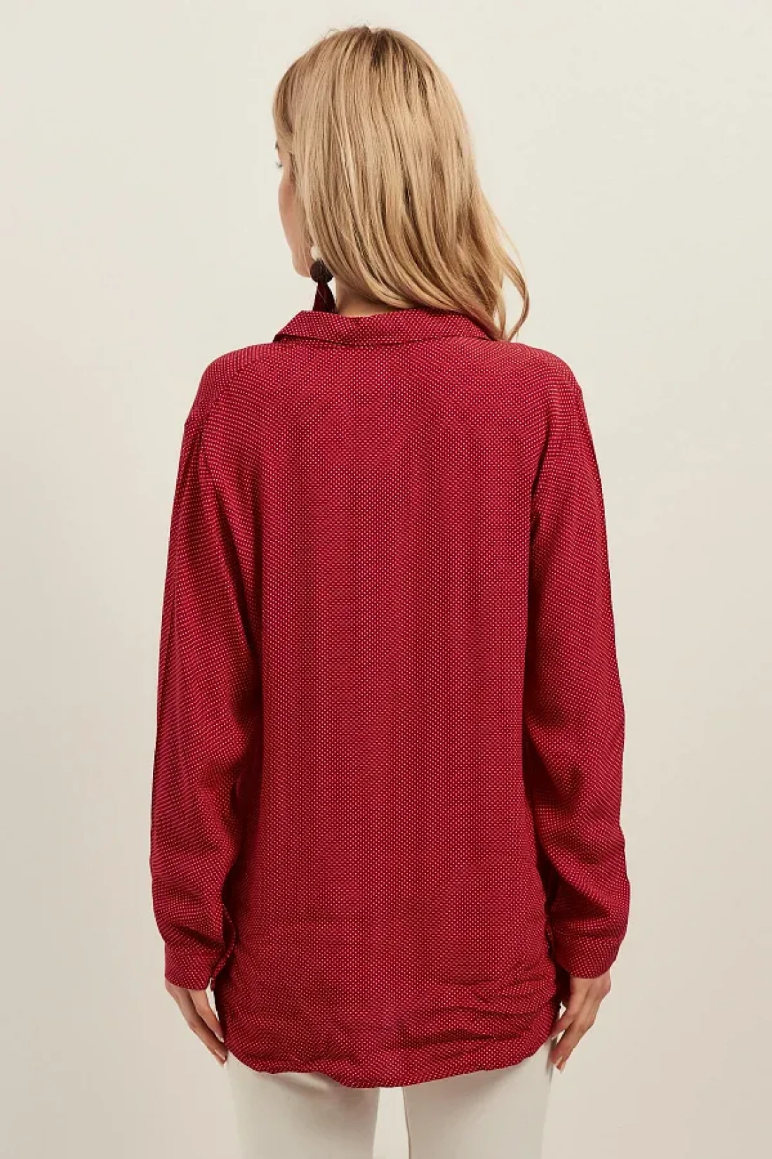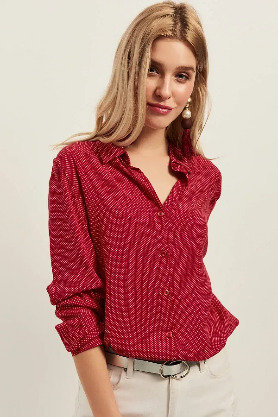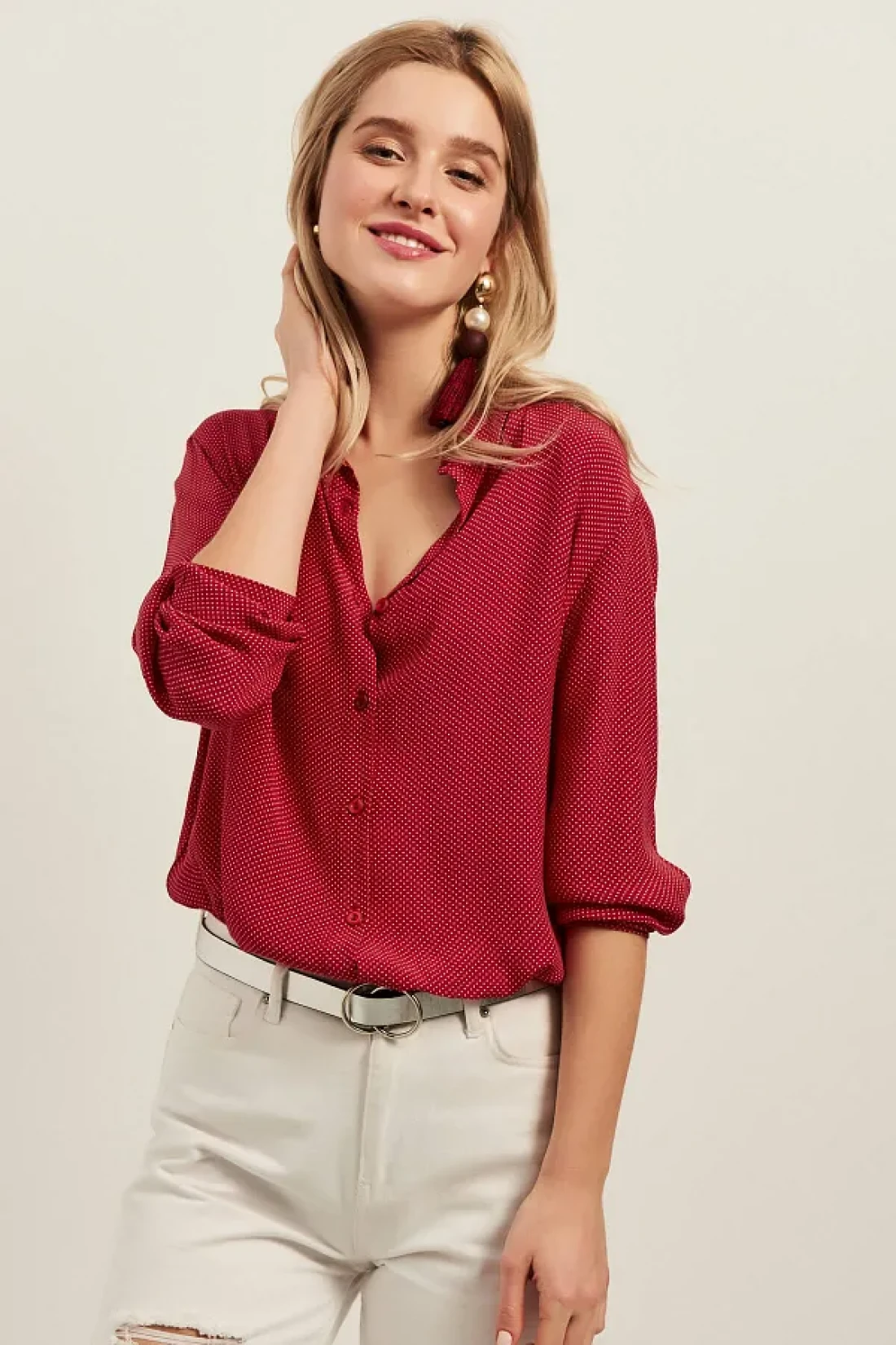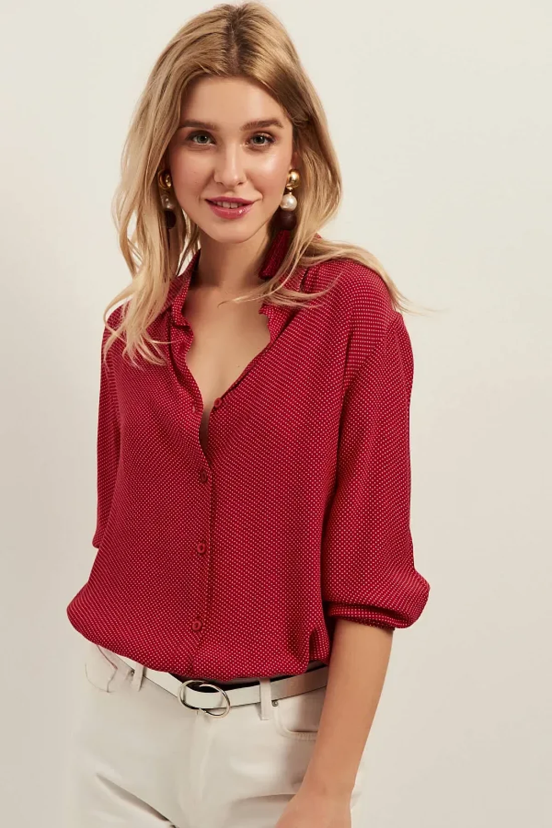 Olalook قميص فيسكوز كاجوال نسائي أحمر صغير منقط OLA-G10654