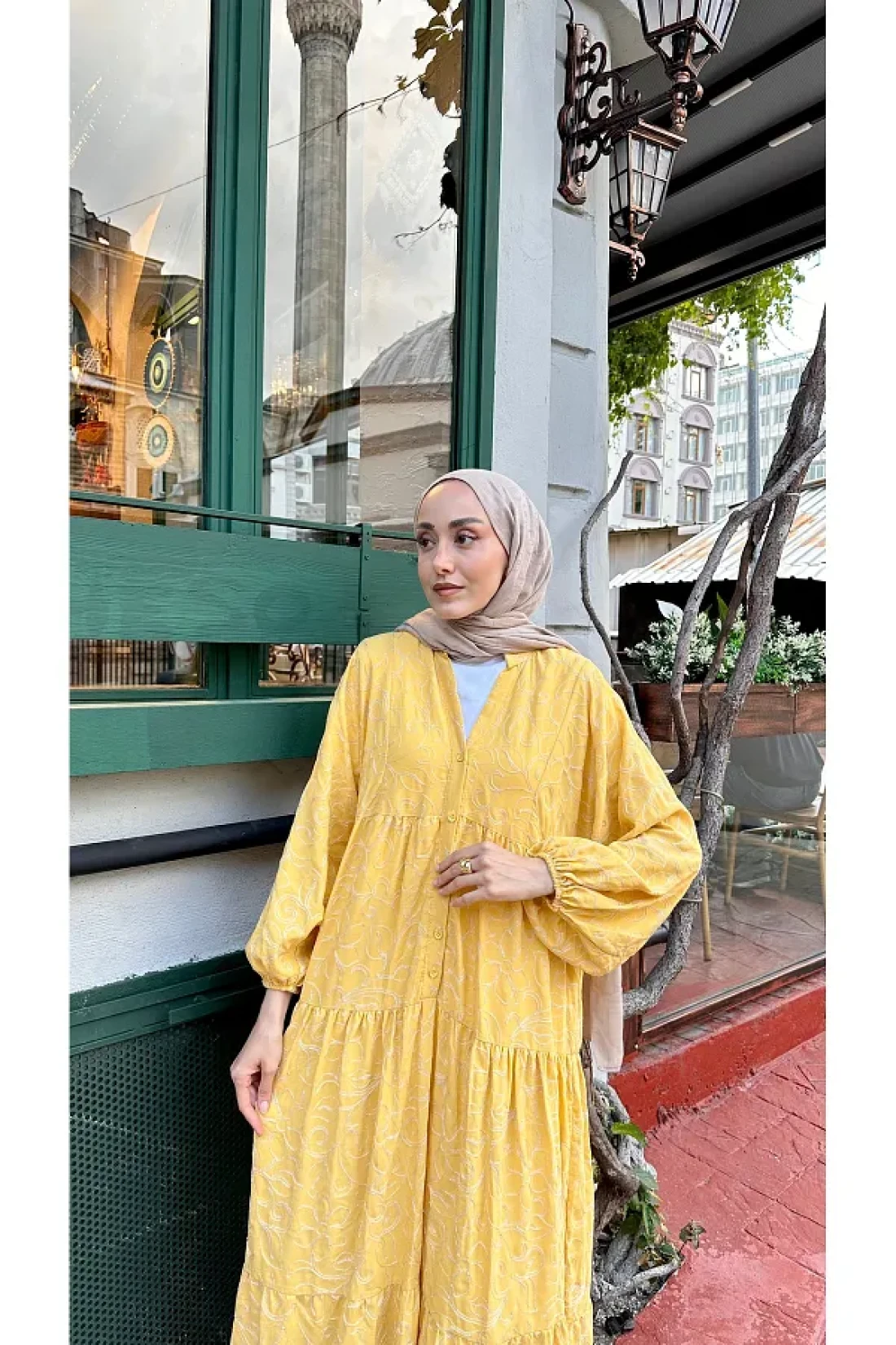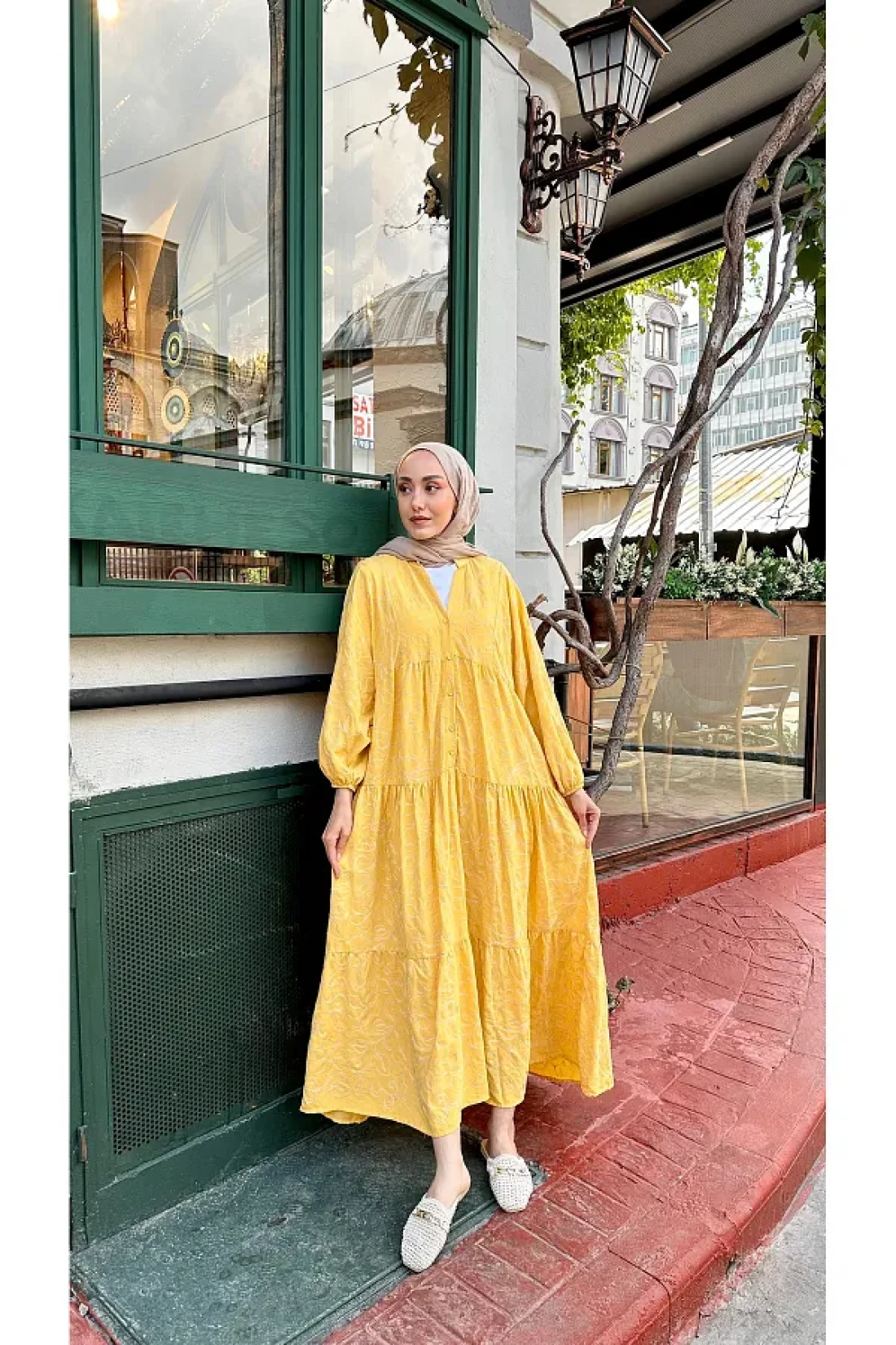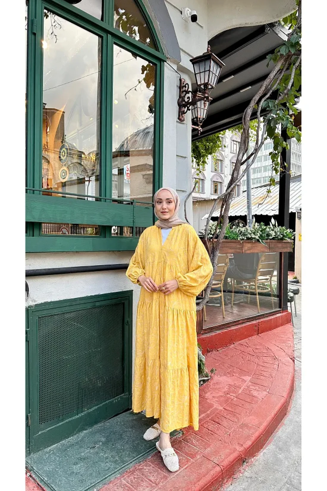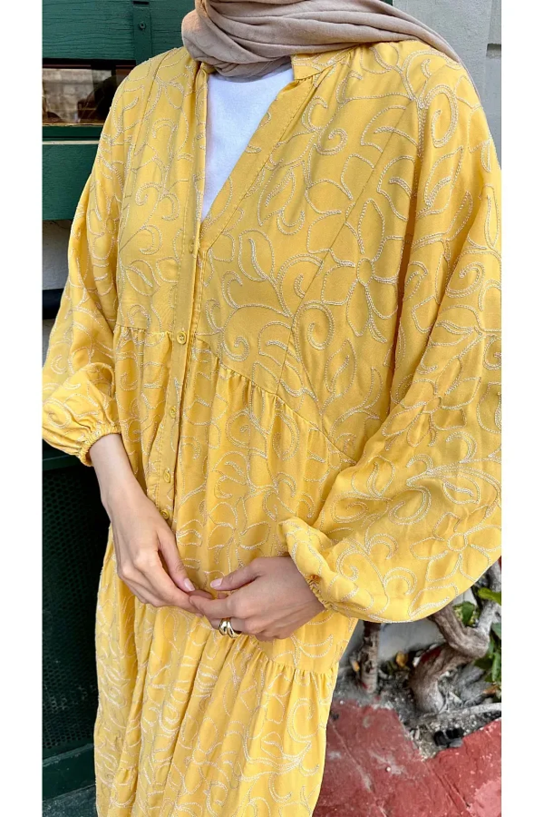 LOCCO فستان نسائي مطرز بالزهور الذهبية باللون الأصفر