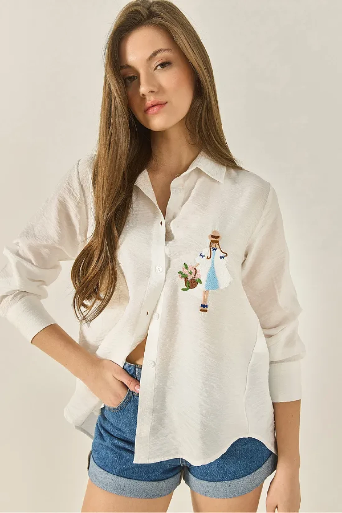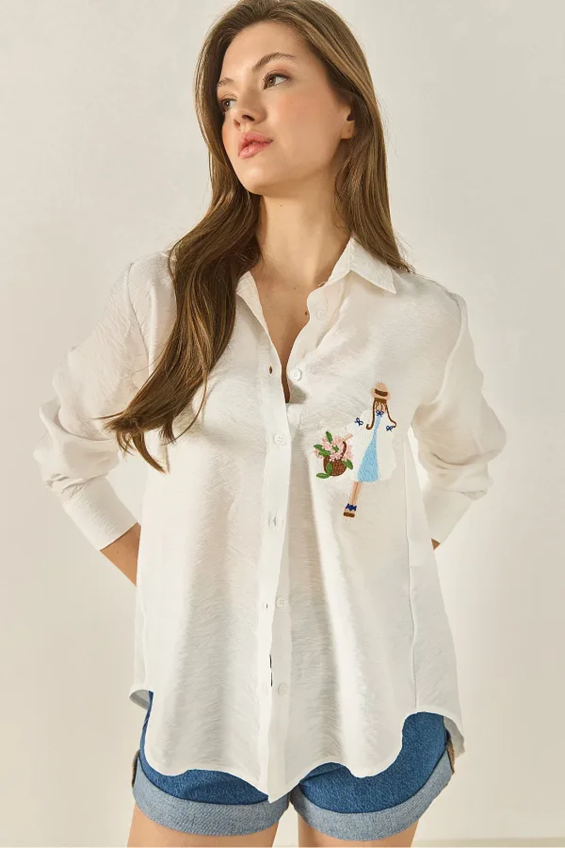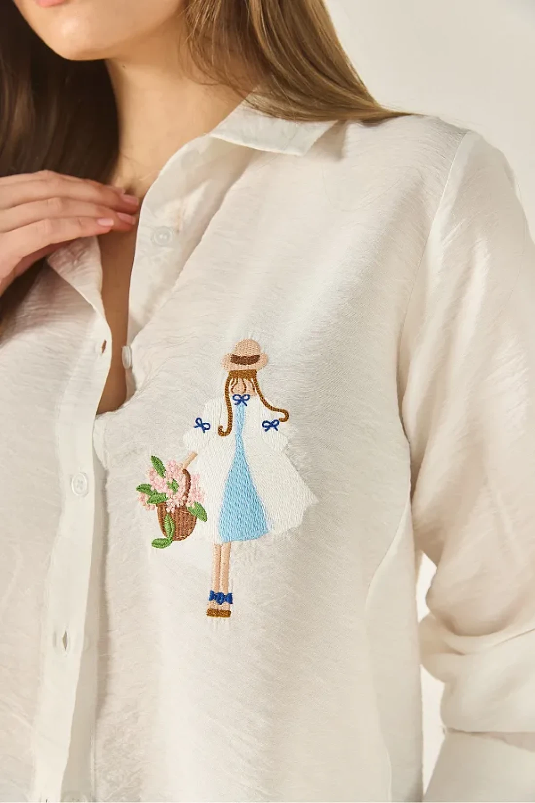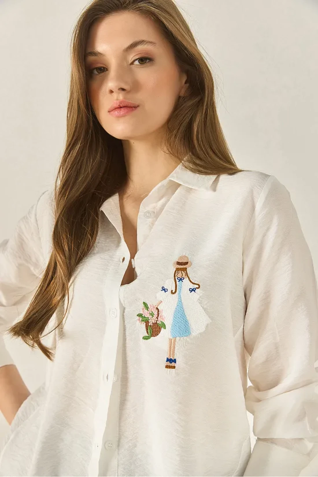 Bianco Lucci قميص نسائي بأكمام طويلة مفصلة بتطريزات أيروبين MG5166 60283242