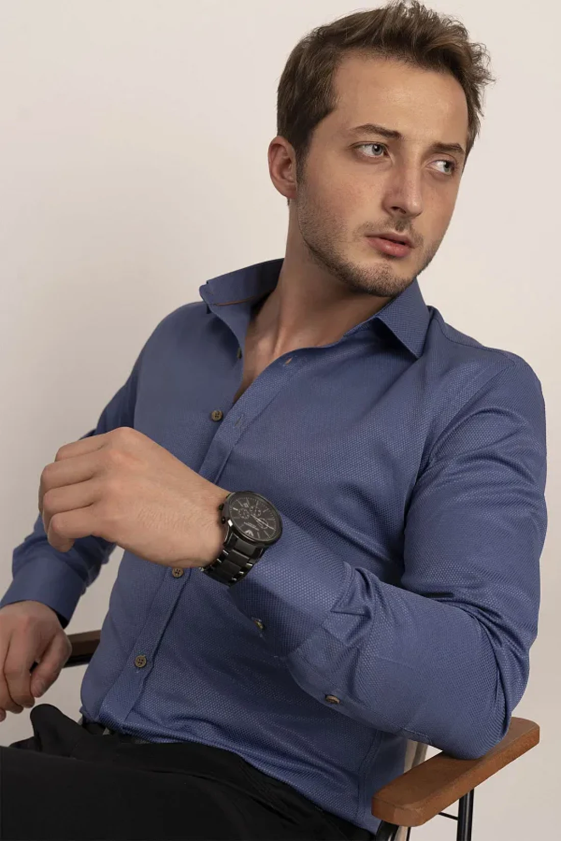 Etikmen قميص Slimfit للرجال باللون البني النيلي - مع صندوق هدايا وأزرار