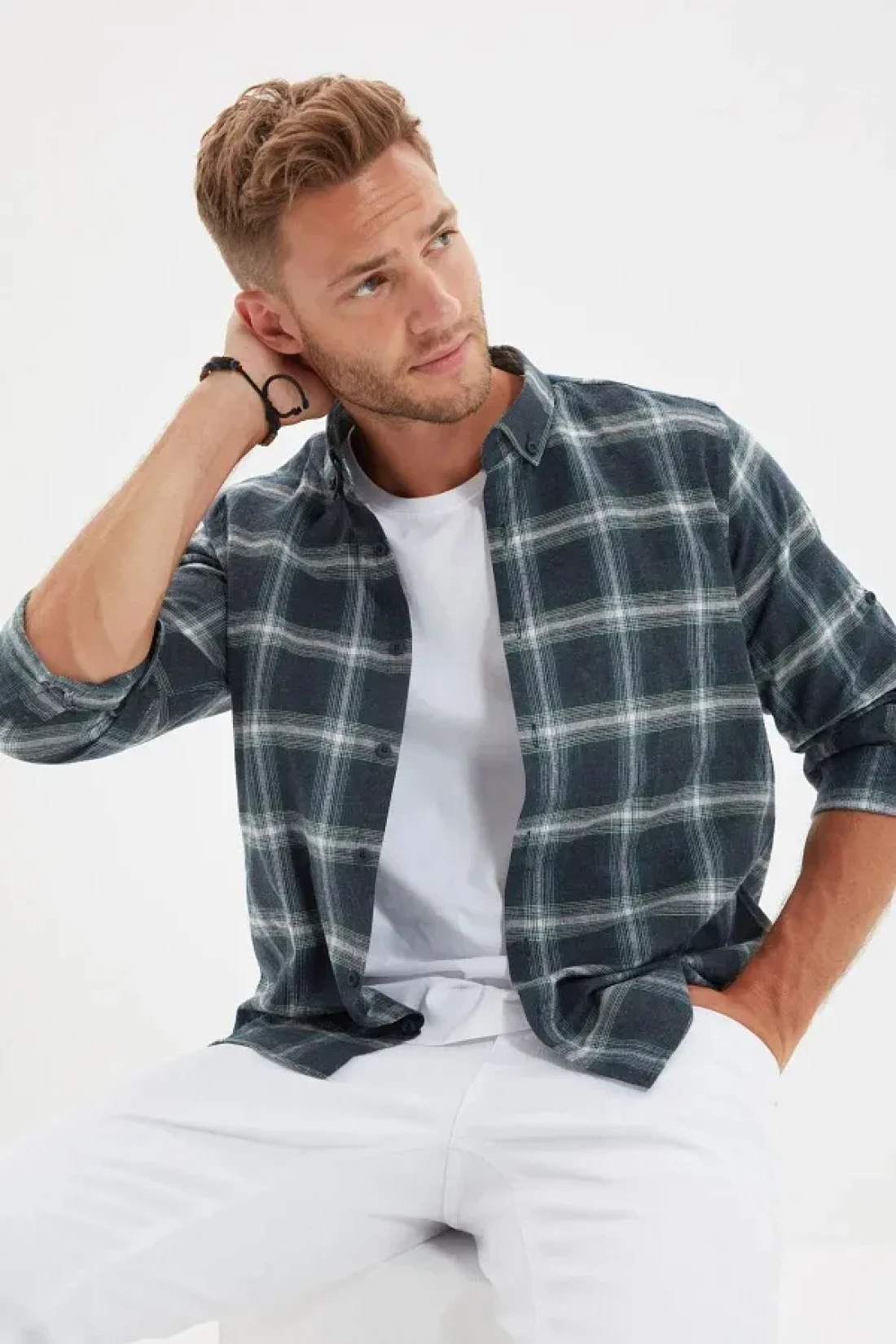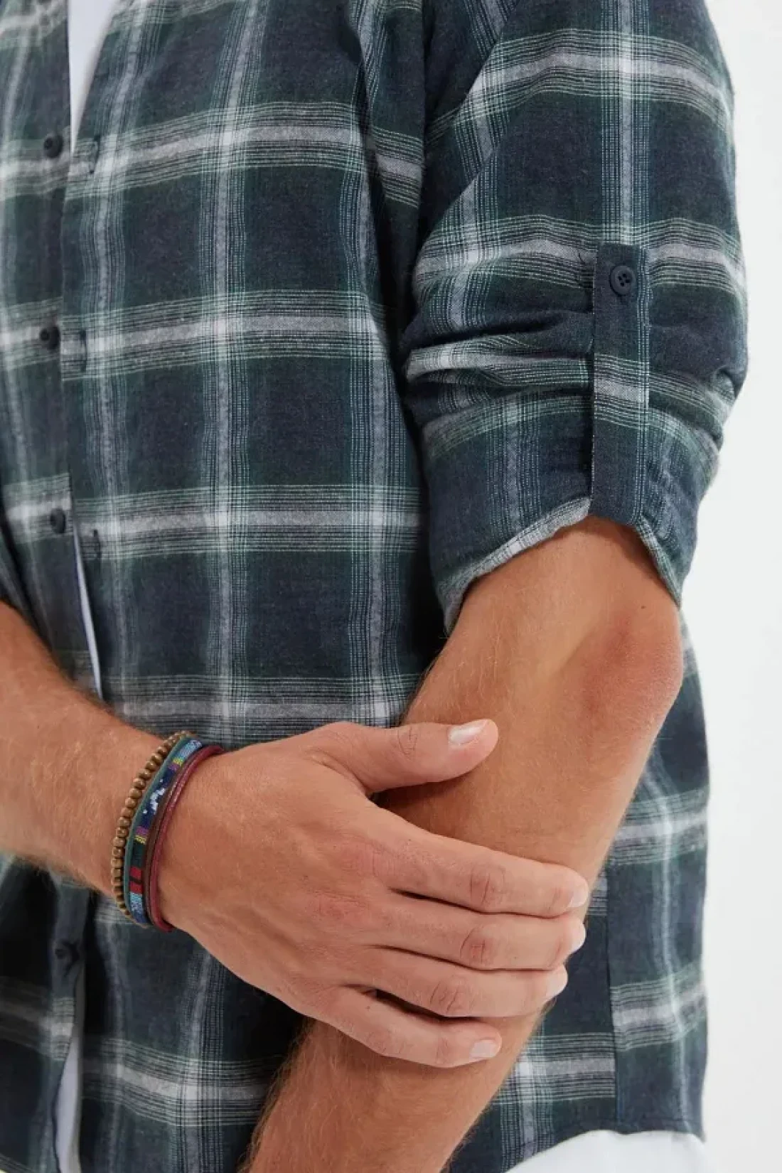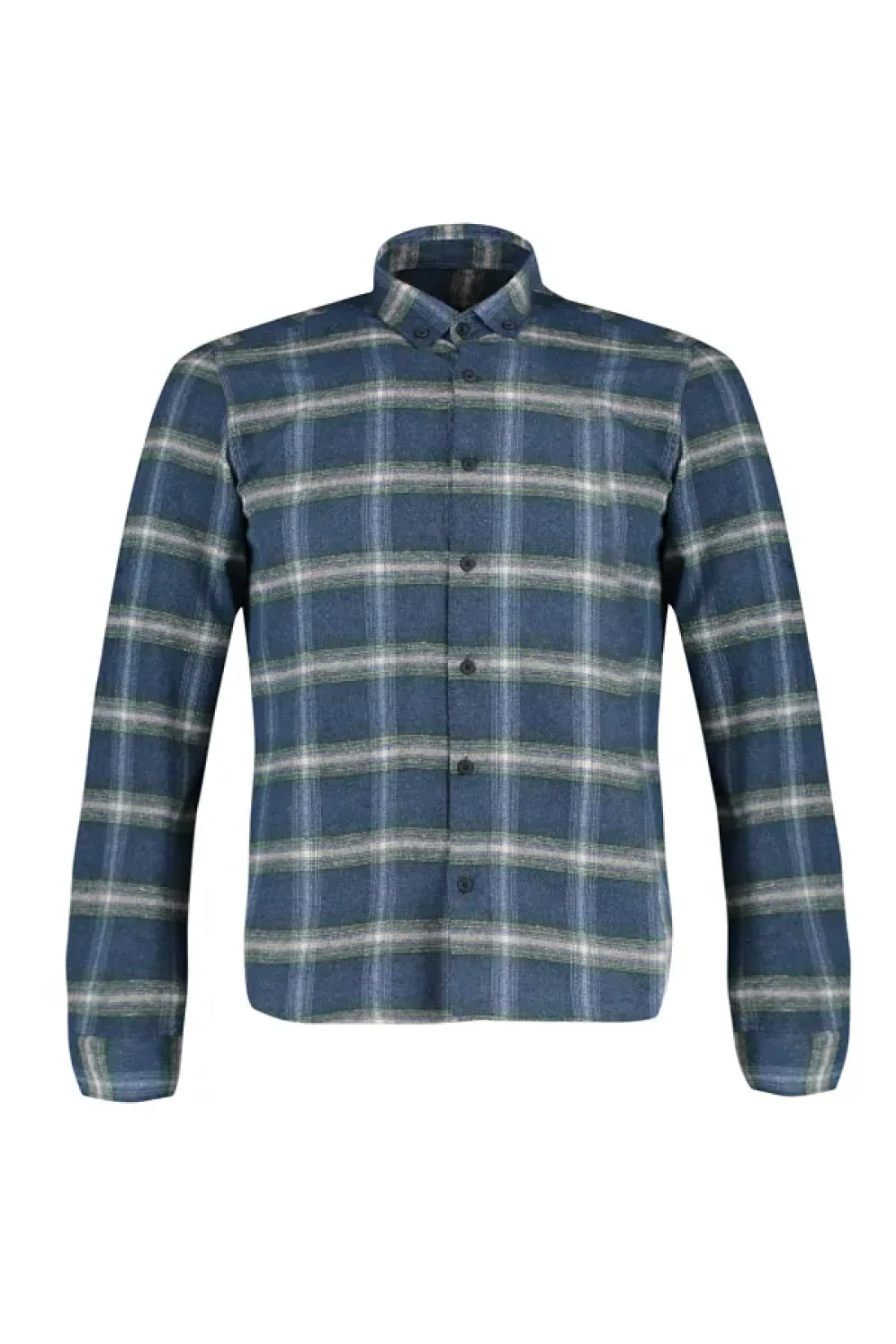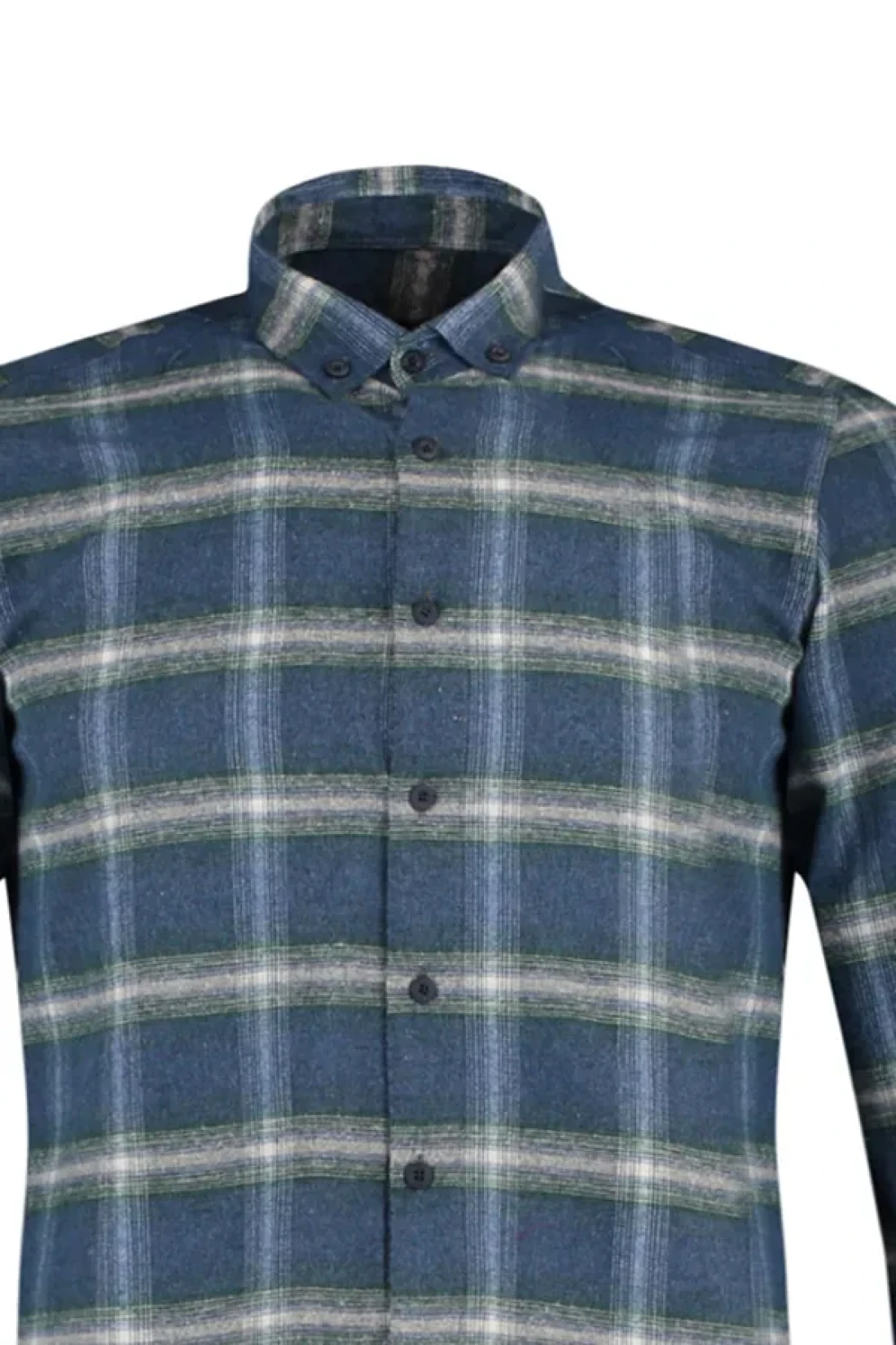 Collection قميص حطاب شتوي بقصة ضيقة باللون الأخضر - ياقة بأزرار، كتاف، مربعات TMNAW22GO0357