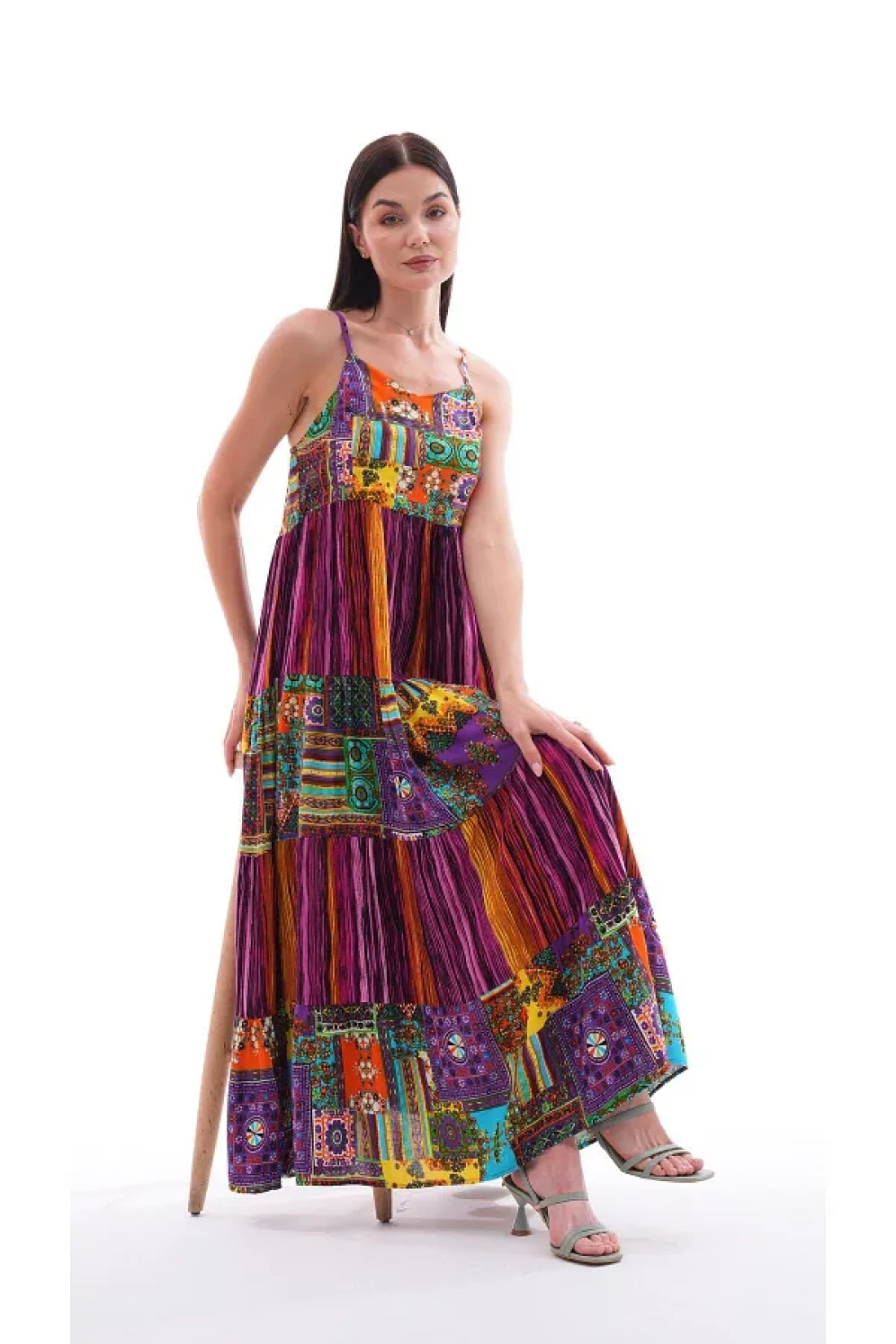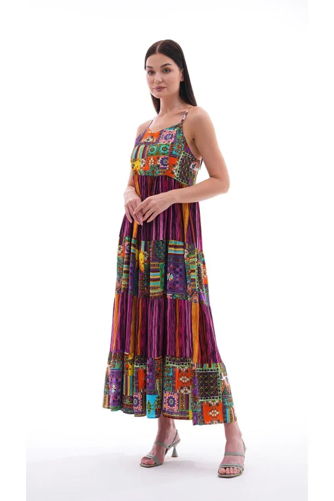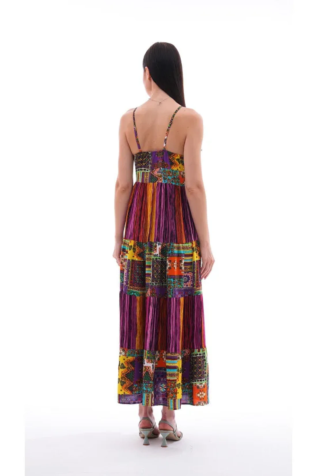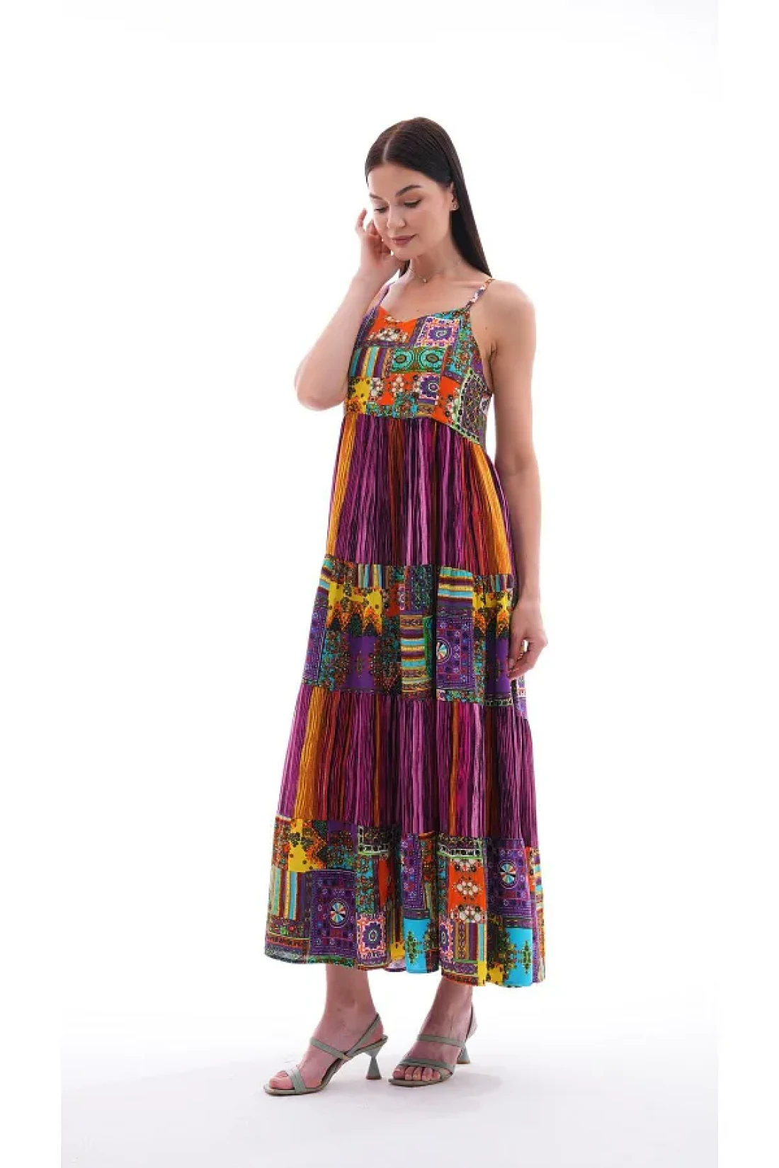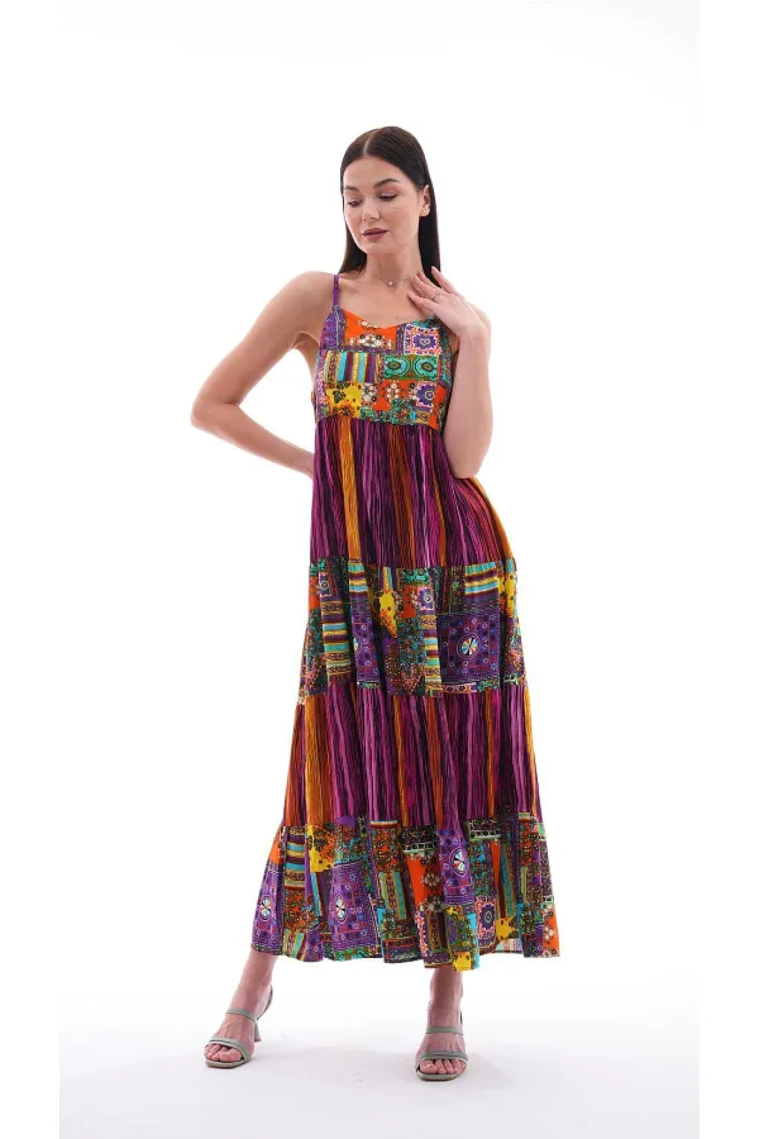 Şimal فستان طويل بحزام حبل منقوش عرقيًا للنساء 250215 -