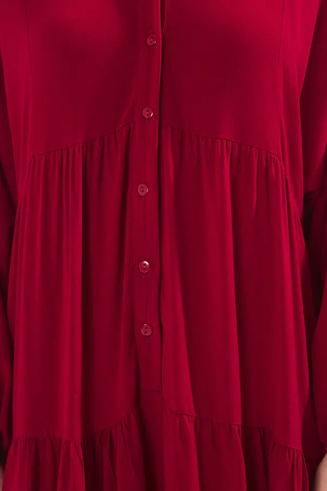 Modest فستان منسوج من الفسكوز باللون العنابي TCTSS24EB00221