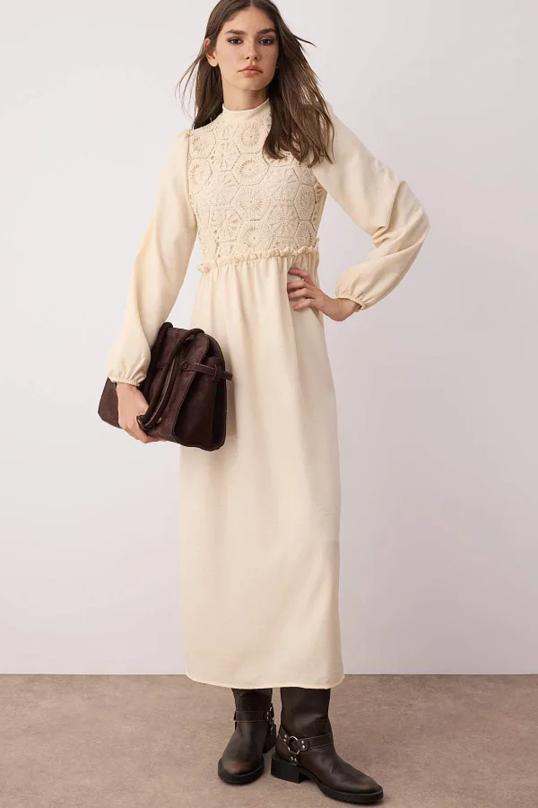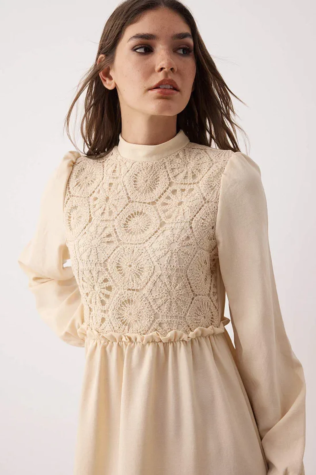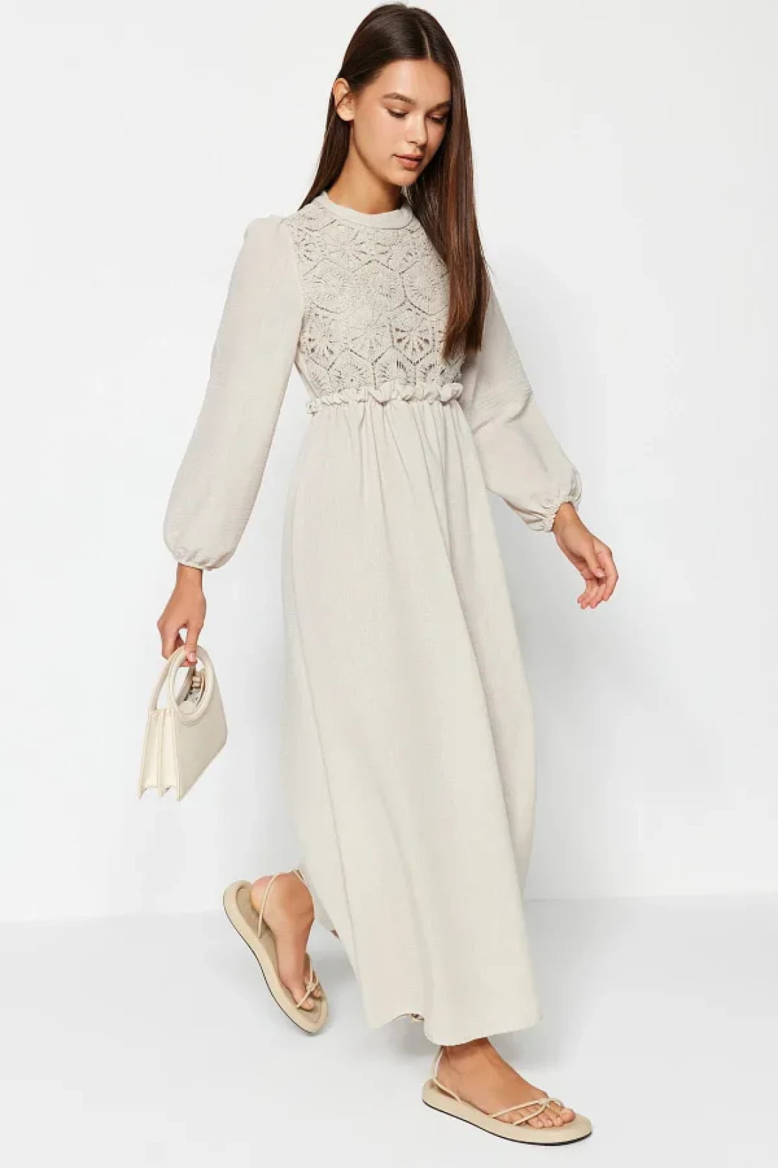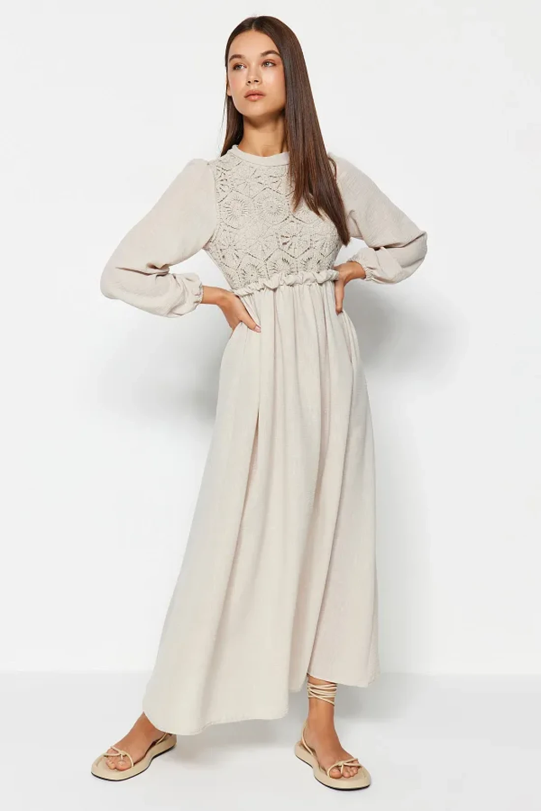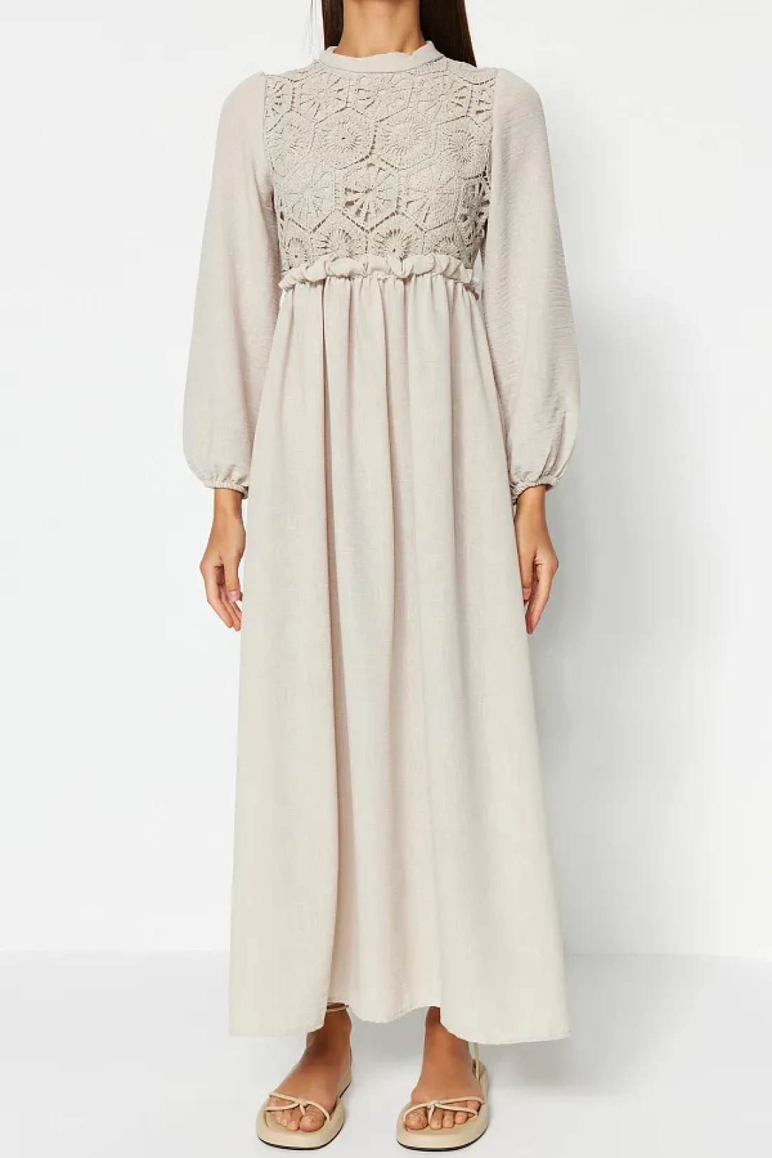 Modest فستان منسوج بتفاصيل حجرية من الجبر/الصدفية TCTAW24EB00110