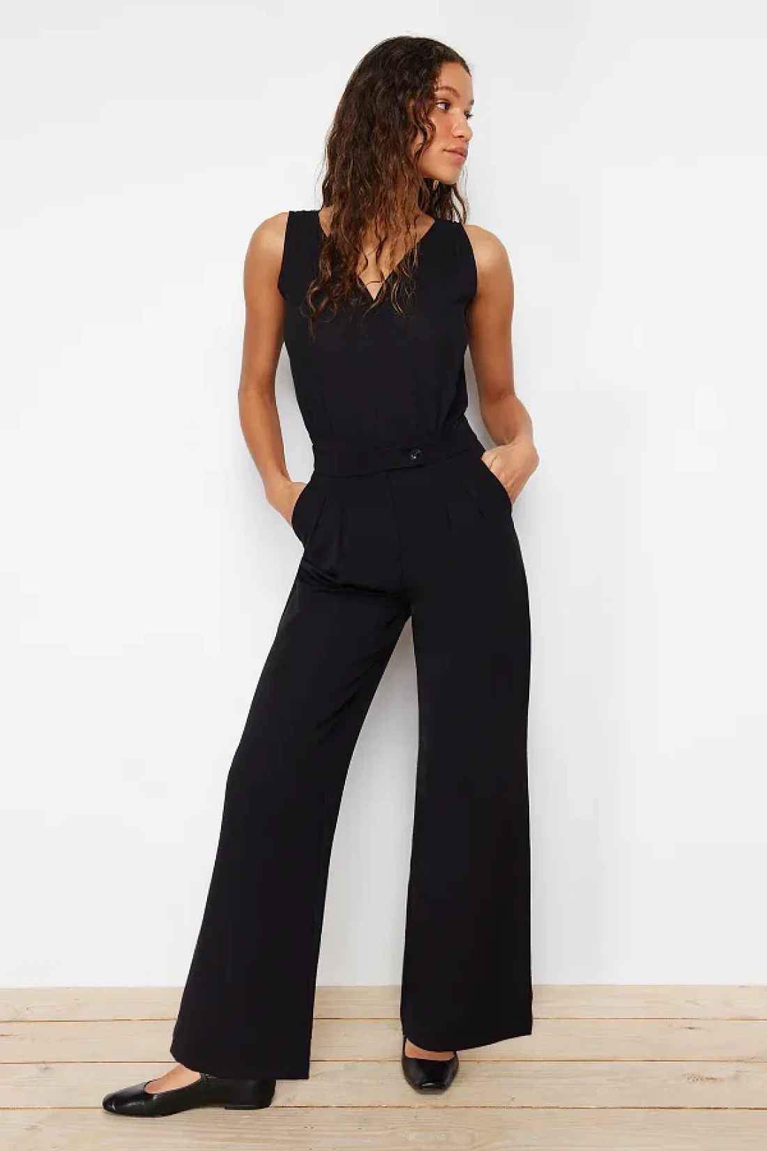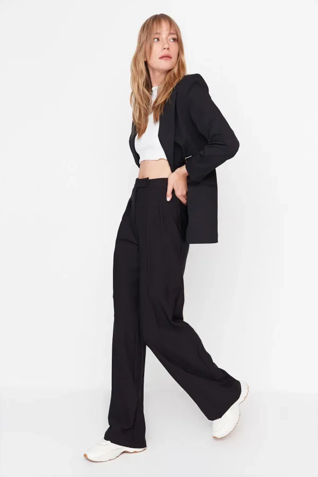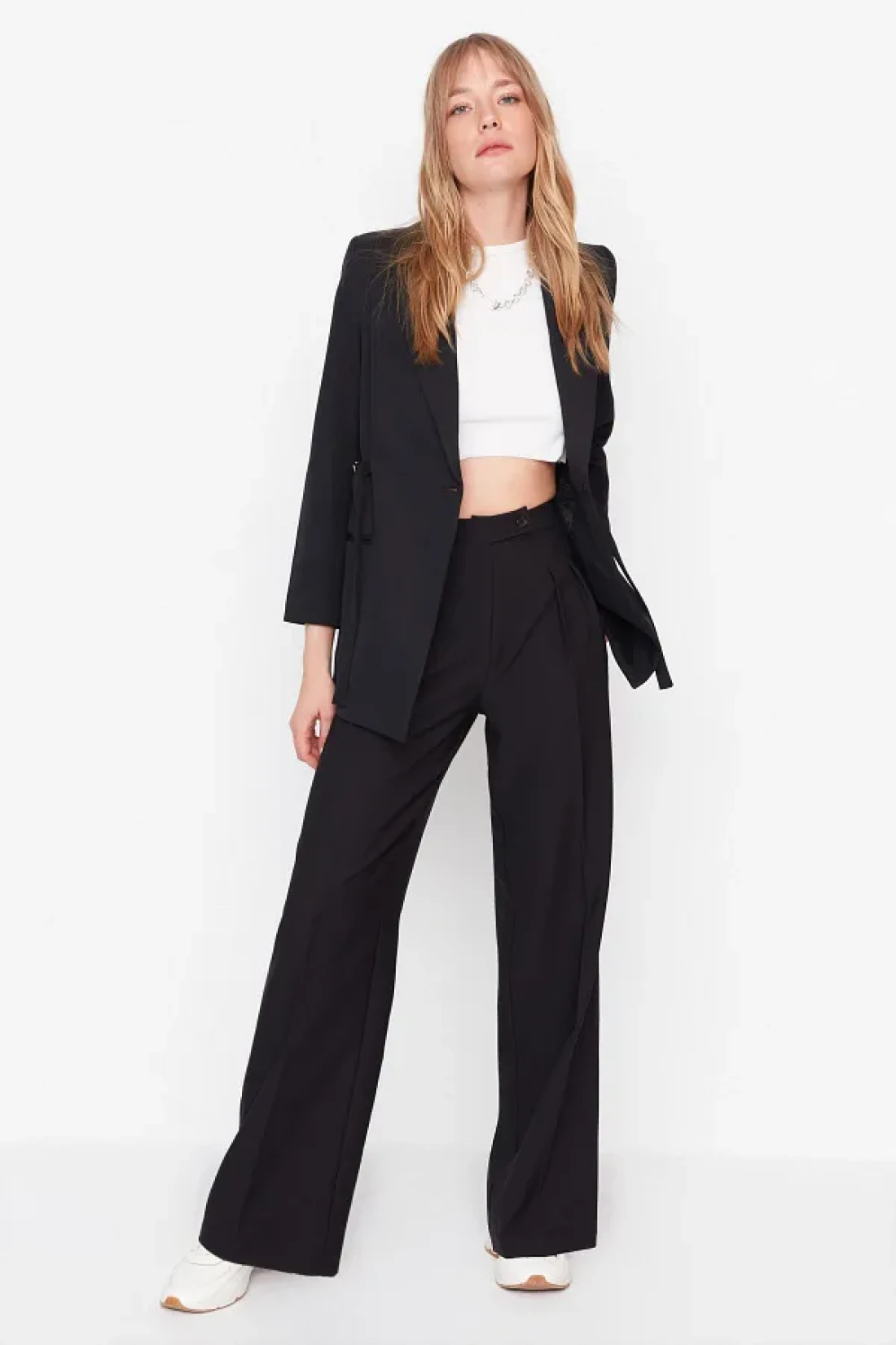 Collection بنطال أسود عالي الخصر بأرجل واسعة - TWOAW22PL0066