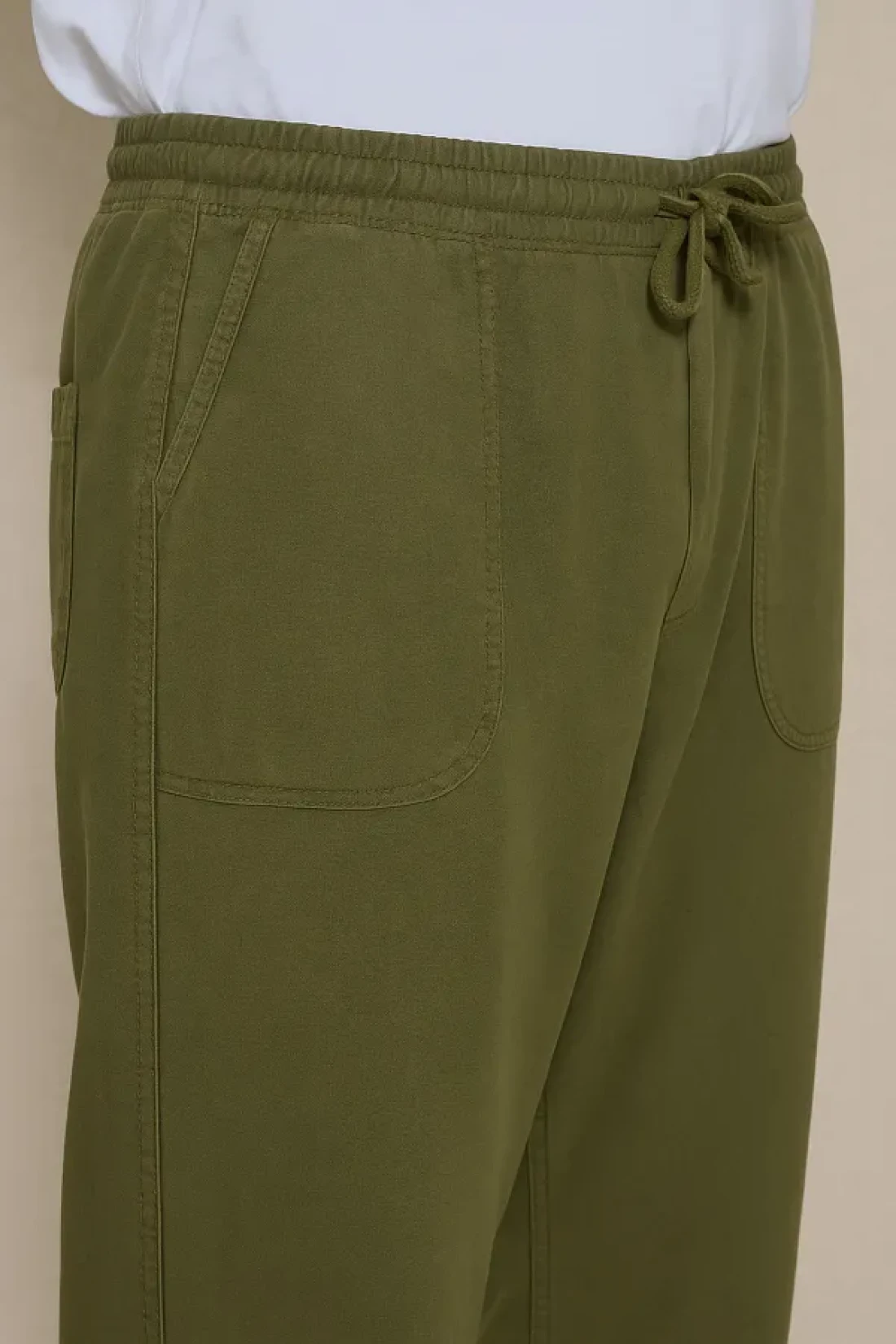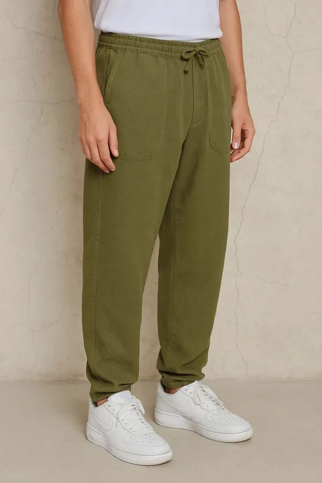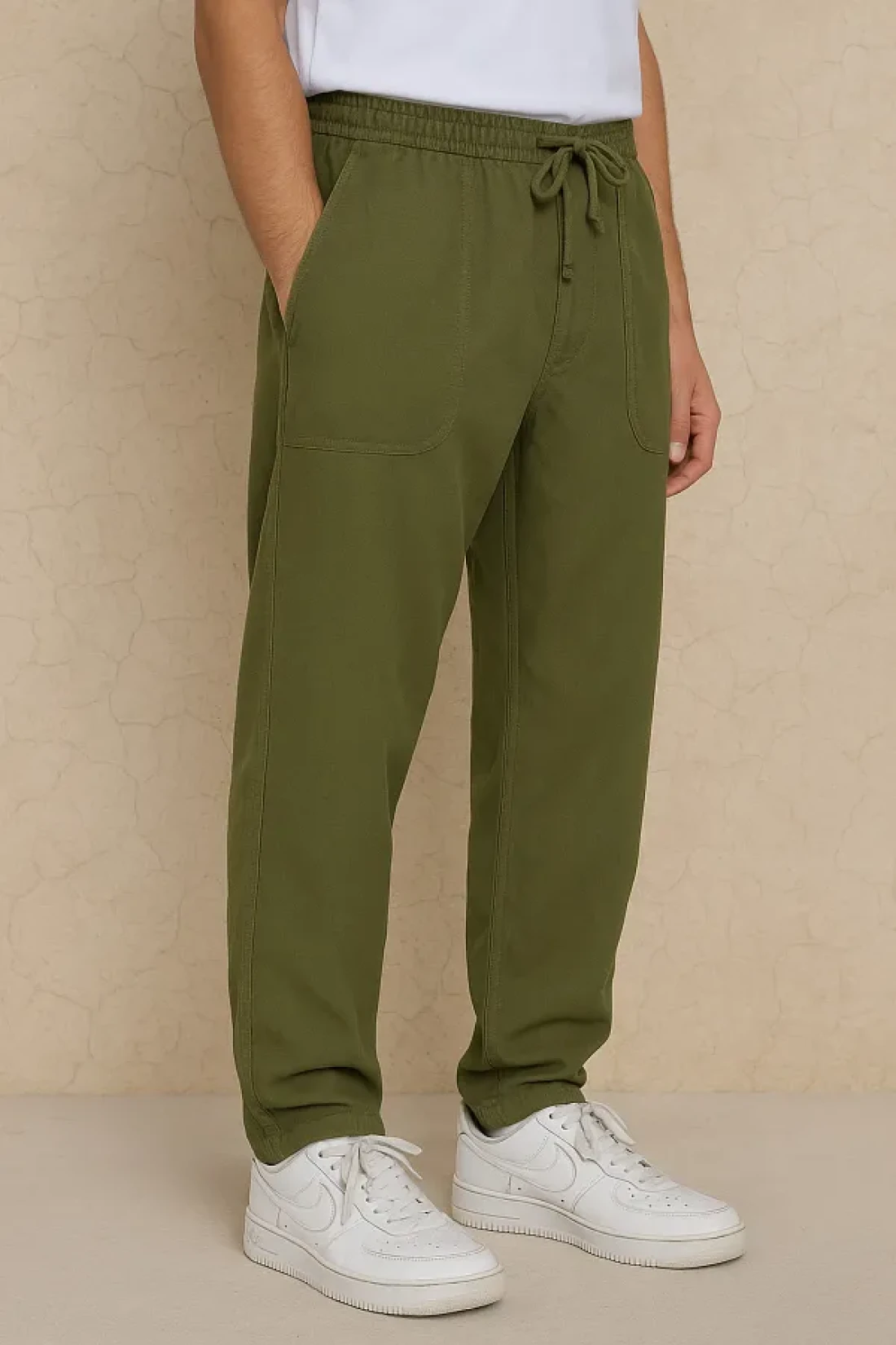 Royalside بنطال رجالي من الكتان الكاكي فضفاض برباط