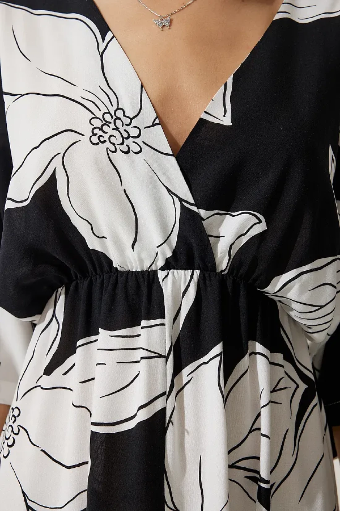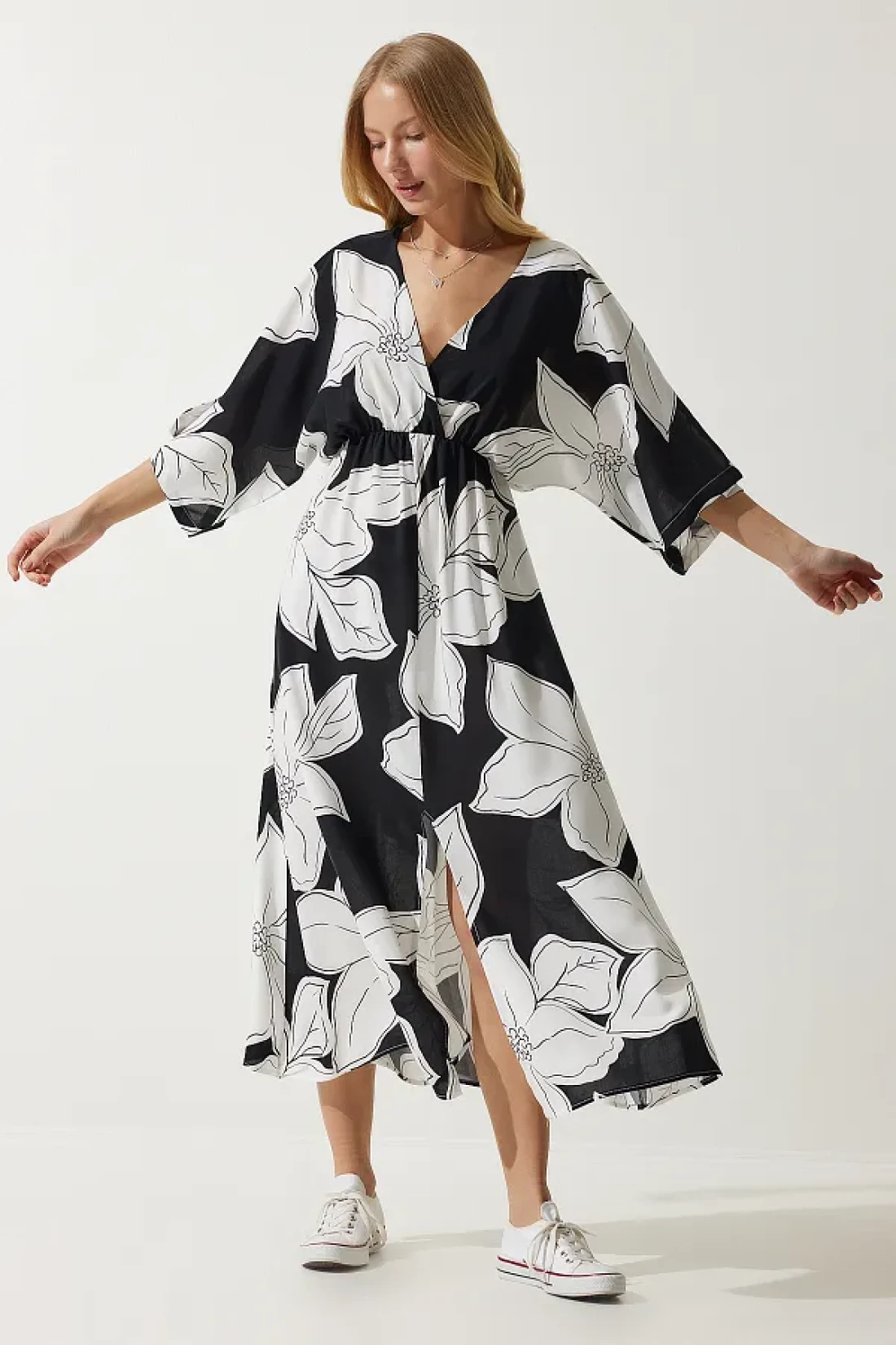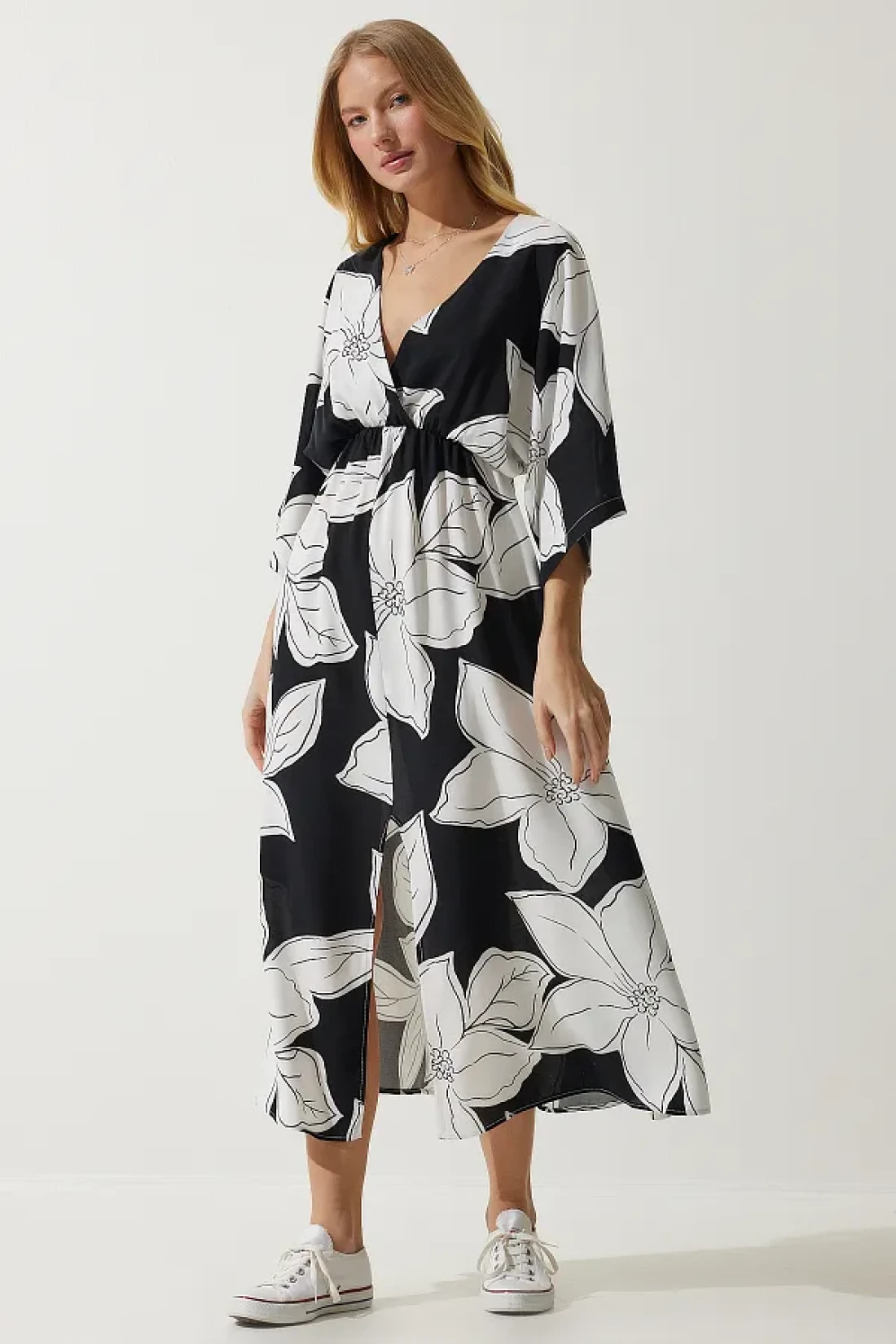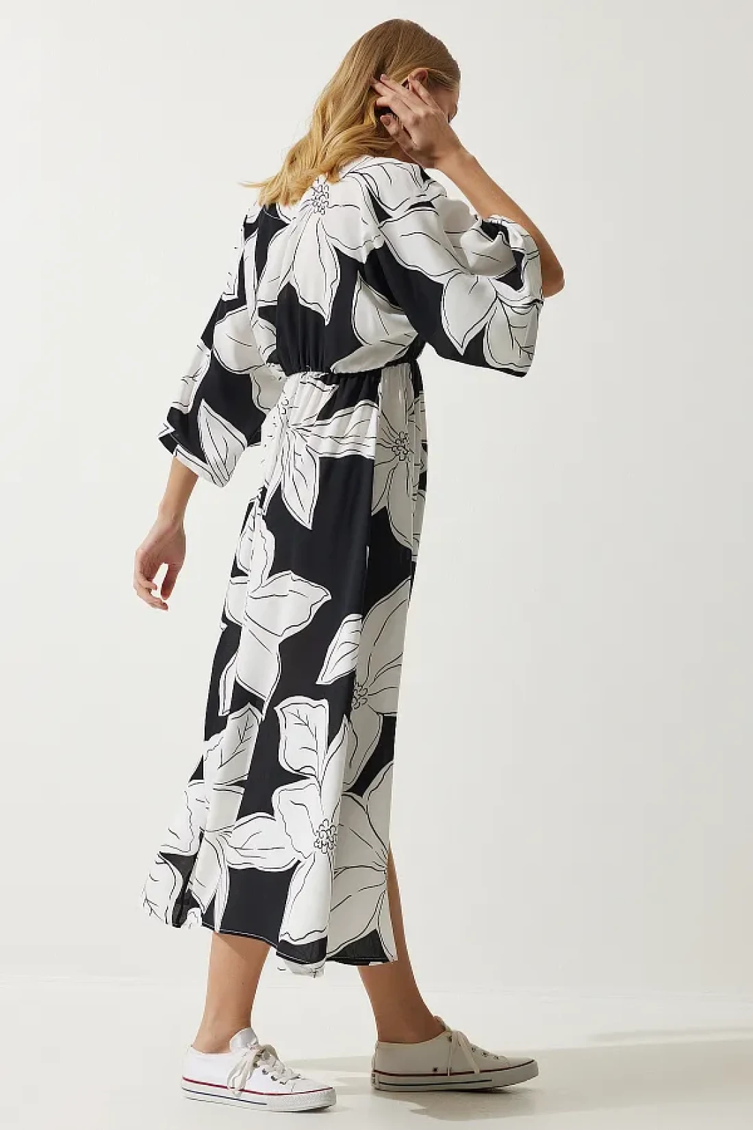 100% فيسكوز؛ فستان فيسكوز مطبوع بياقة ملفوفة، وأكمام الخفافيش، وخصر مرن، وفتحة أمامية واحدة؛ طول المنتج: 130 سم طول الكم: 40 سم طول الشق: 45 سم؛ قد تختلف الألوان في لقطات الاستوديو بسبب اختلافات الإضاءة. الارتفاع: 1.73 سم، الصدر: 79 سم، الخصر: 60 سم، الورك: 90 سم