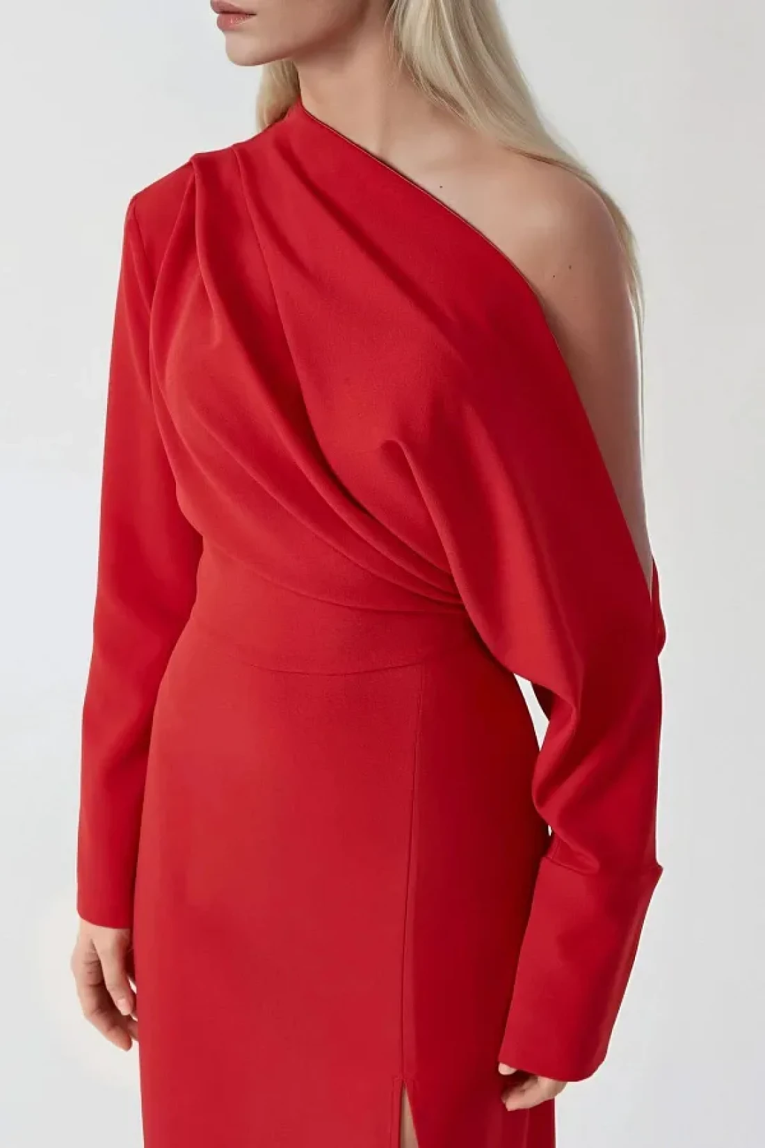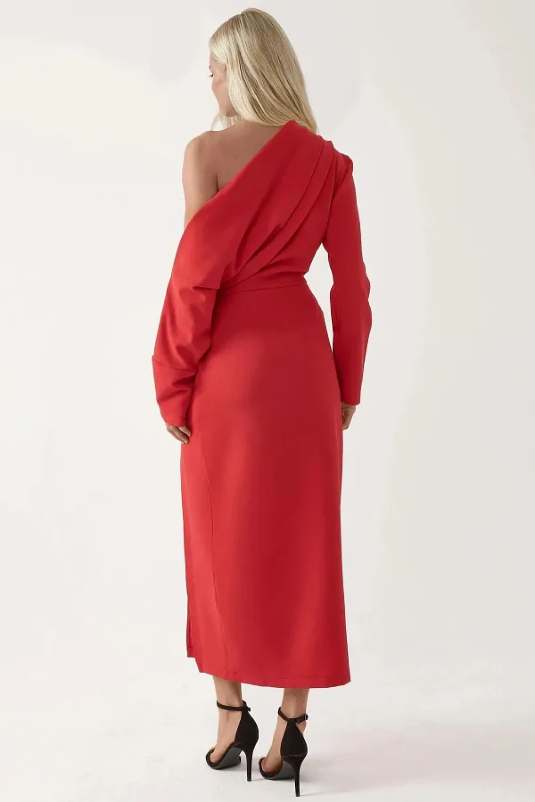 اسم المنتج: فستان ميدي بياقة غير متماثلة Y شق؛ القماش: 5% إيلاستين، 95% بوليستر؛ تعليمات الغسيل: لا تستخدم المبيضات، دورة خفيفة 30، كي بالبخار، تجفيف مسطح، يُغسل بمنظف خفيف؛