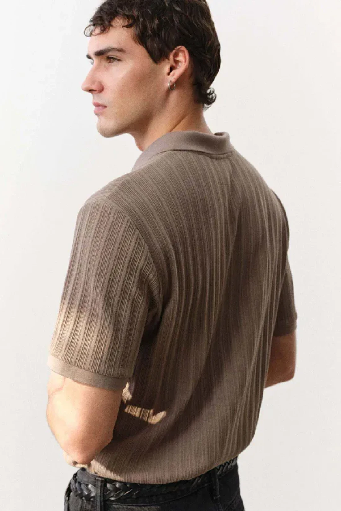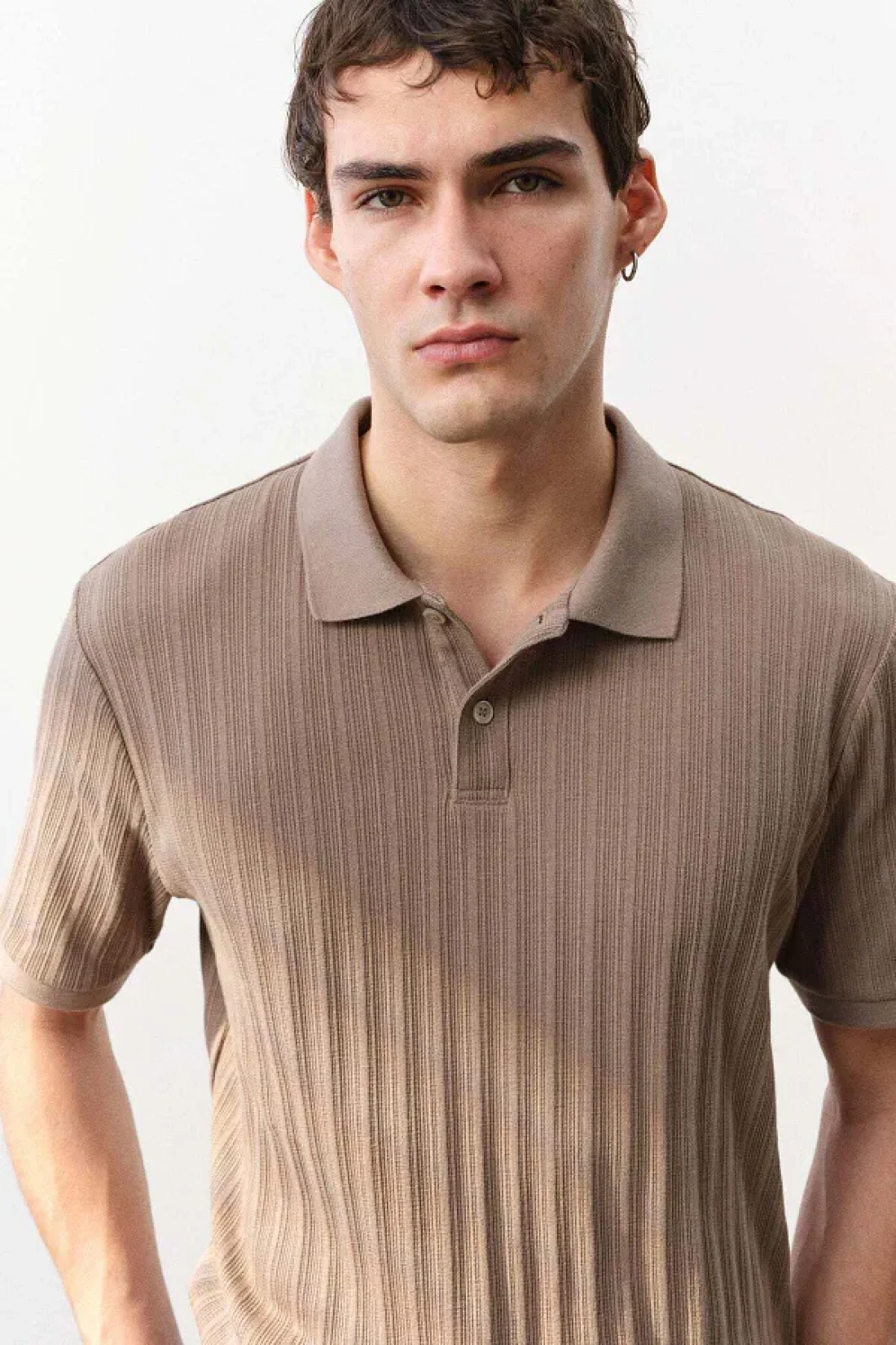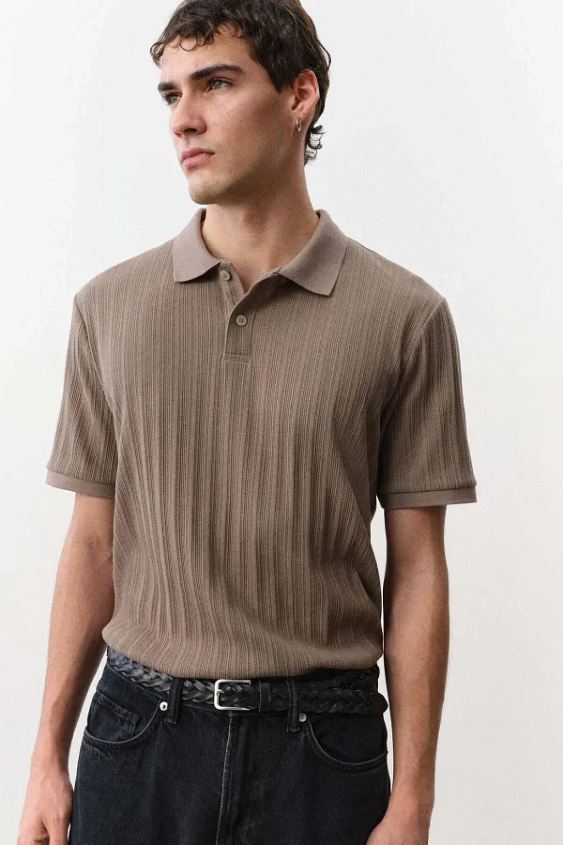 قميص بولو مصنوع من قماش جيرسي متوسط الوزن ومحكم الغلق، مع ياقة وأزرار وأكمام قصيرة وحاشية مستقيمة القطع. قصة ضيقة تتناسب مع محيط جسمك، مما يخلق صورة ظلية ملائمة.