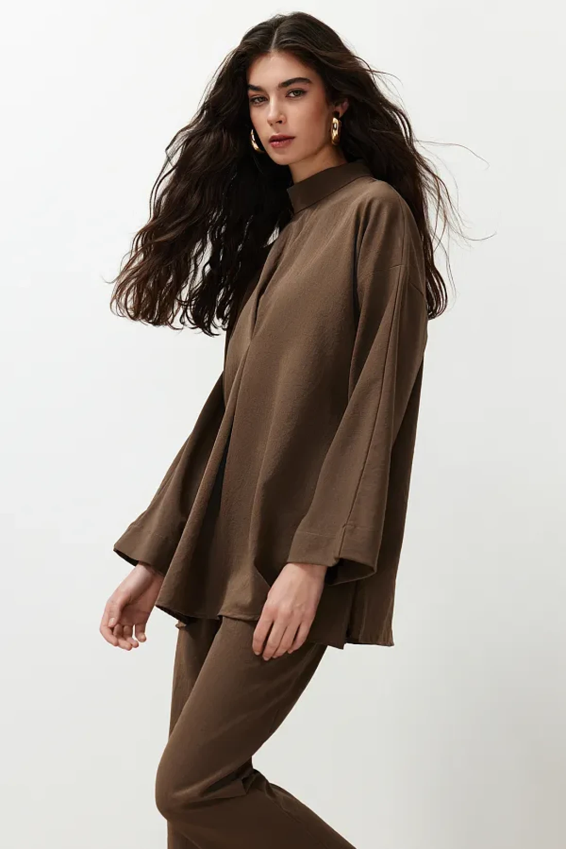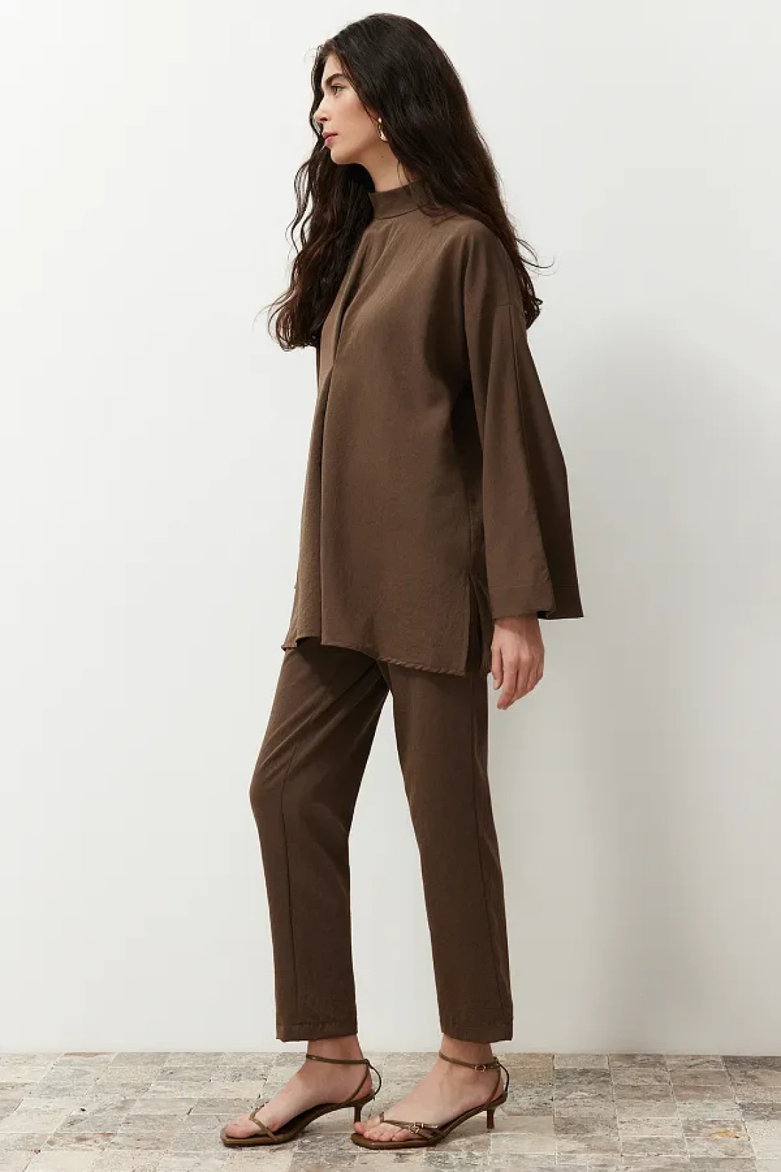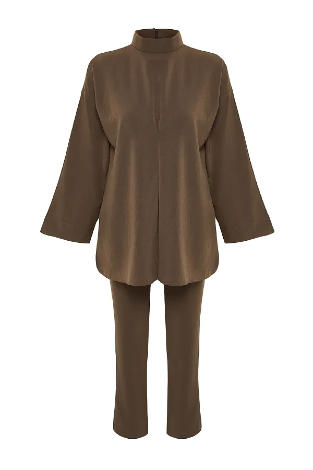 Modest طقم علوي منسوج بياقة بنية اللون TCTSS24US00055