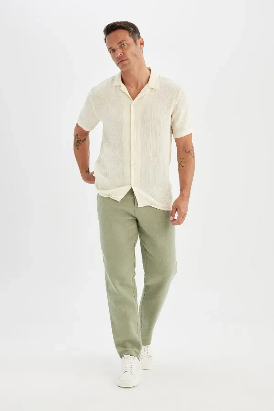 قطن 100% معلومات النموذج الأخضر-GN824: الصدر: 100 الطول: 1.89 الورك: 97 الخصر: 81؛ حجم العارضة الأخضر-GN824: 32؛ أبعاد طول المنتج: 34-0 سم، 40-0 سم، 28-0 سم، 30-0 سم، 36-0 سم، 38-0 سم، 32-0 سم؛ رمز المنتج: D2972AX24SM معلومات النموذج Ecru-ER42: الصدر: 100 الطول: 1.89 الورك: 97 الخصر: 81؛ مقاس العارضة Ecru-ER42: 32؛