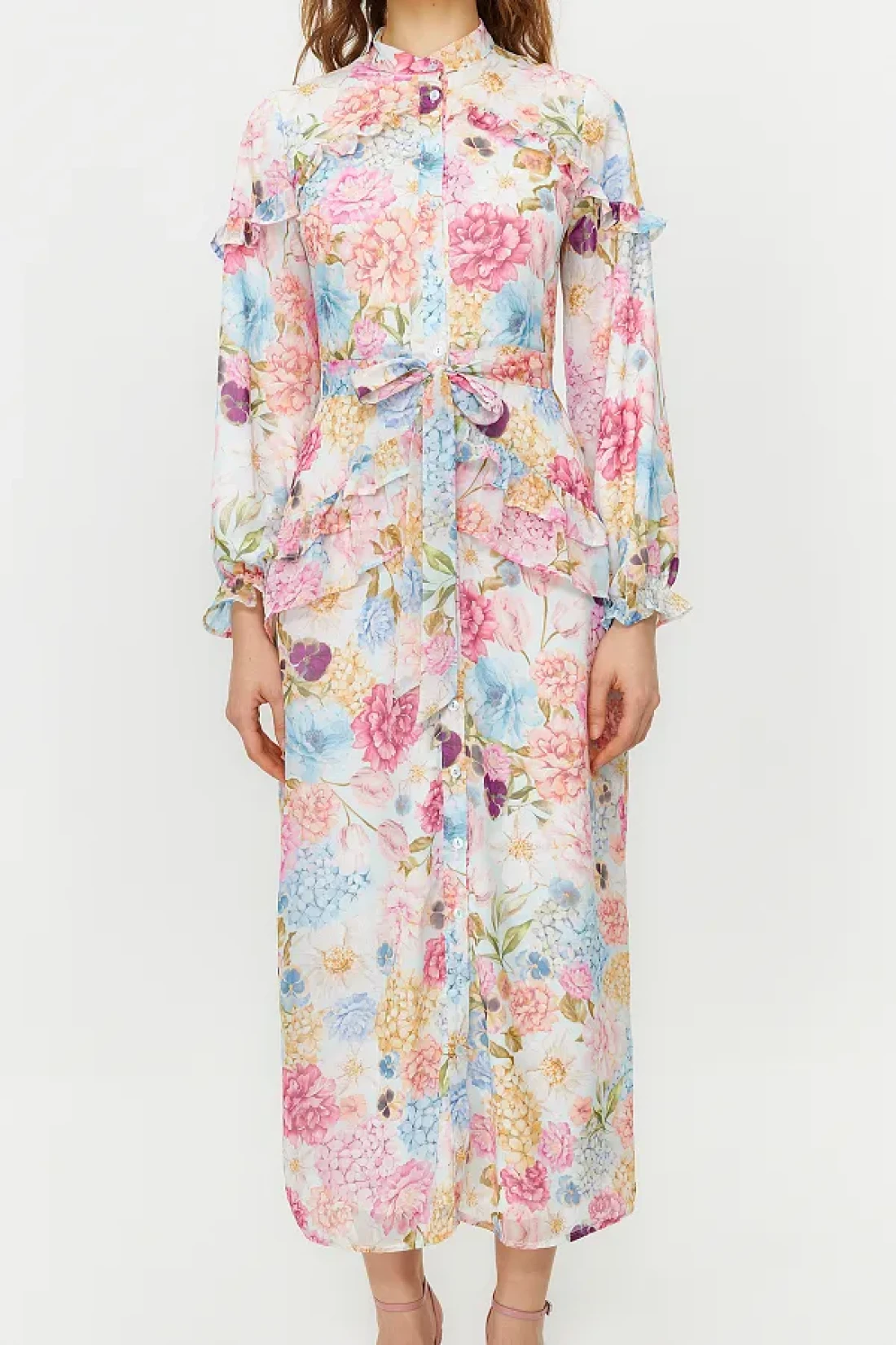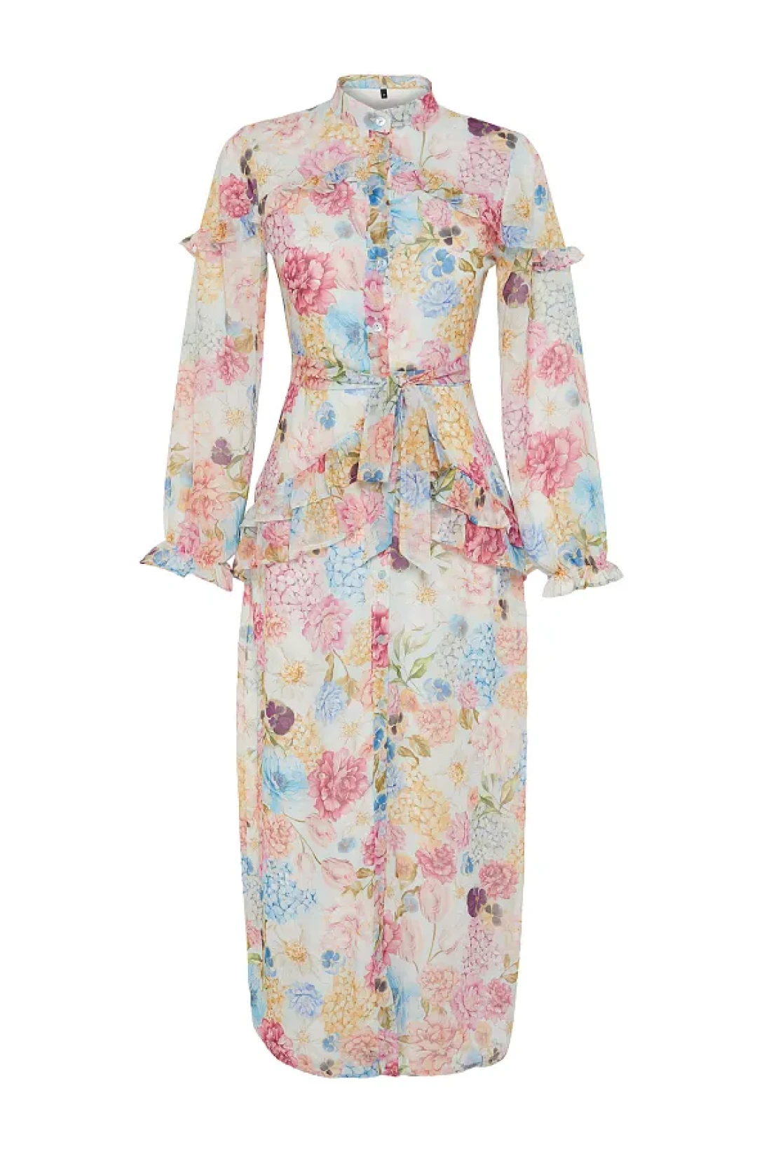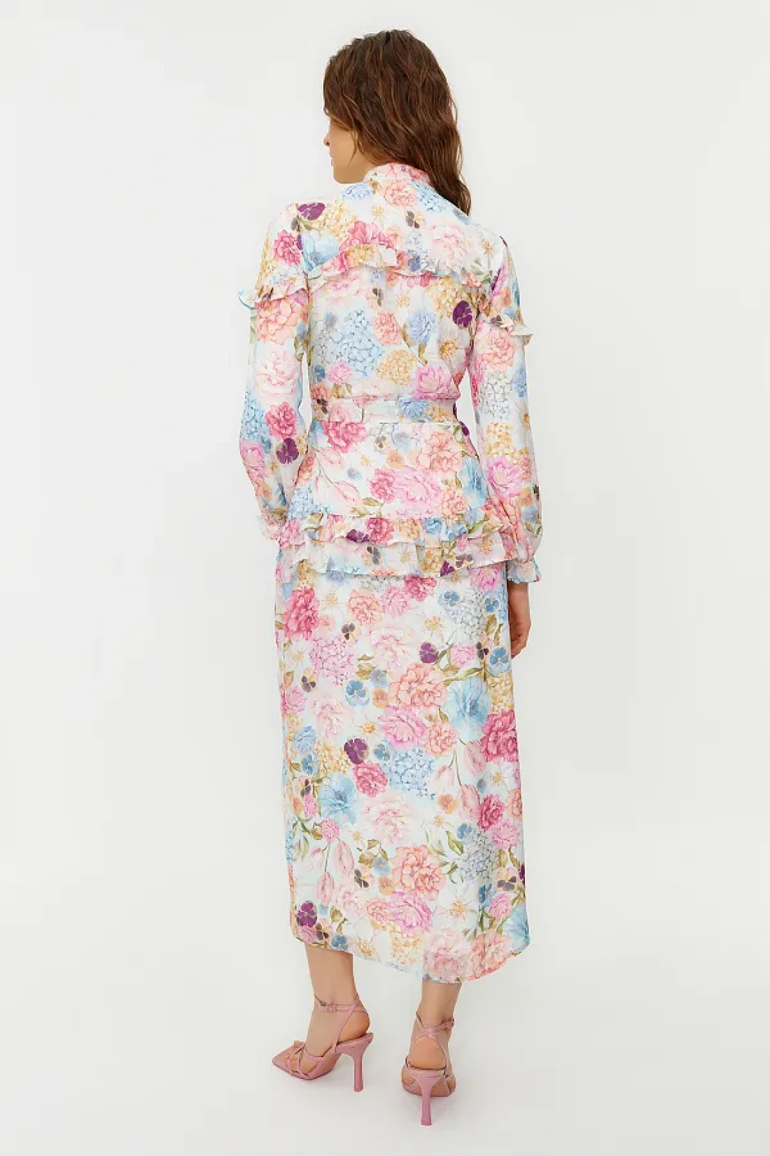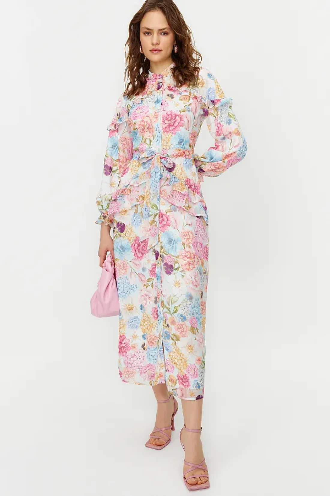 Modest فستان من الشيفون المنسوج ومبطن ومكشكش ومزين بنقشة الزهور أرجواني TCTSS24EB00003