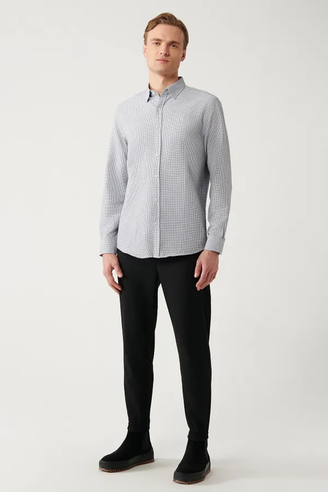 Avva قميص رجالي من القطن ذو الياقة السوداء سهل الكي A32y2089