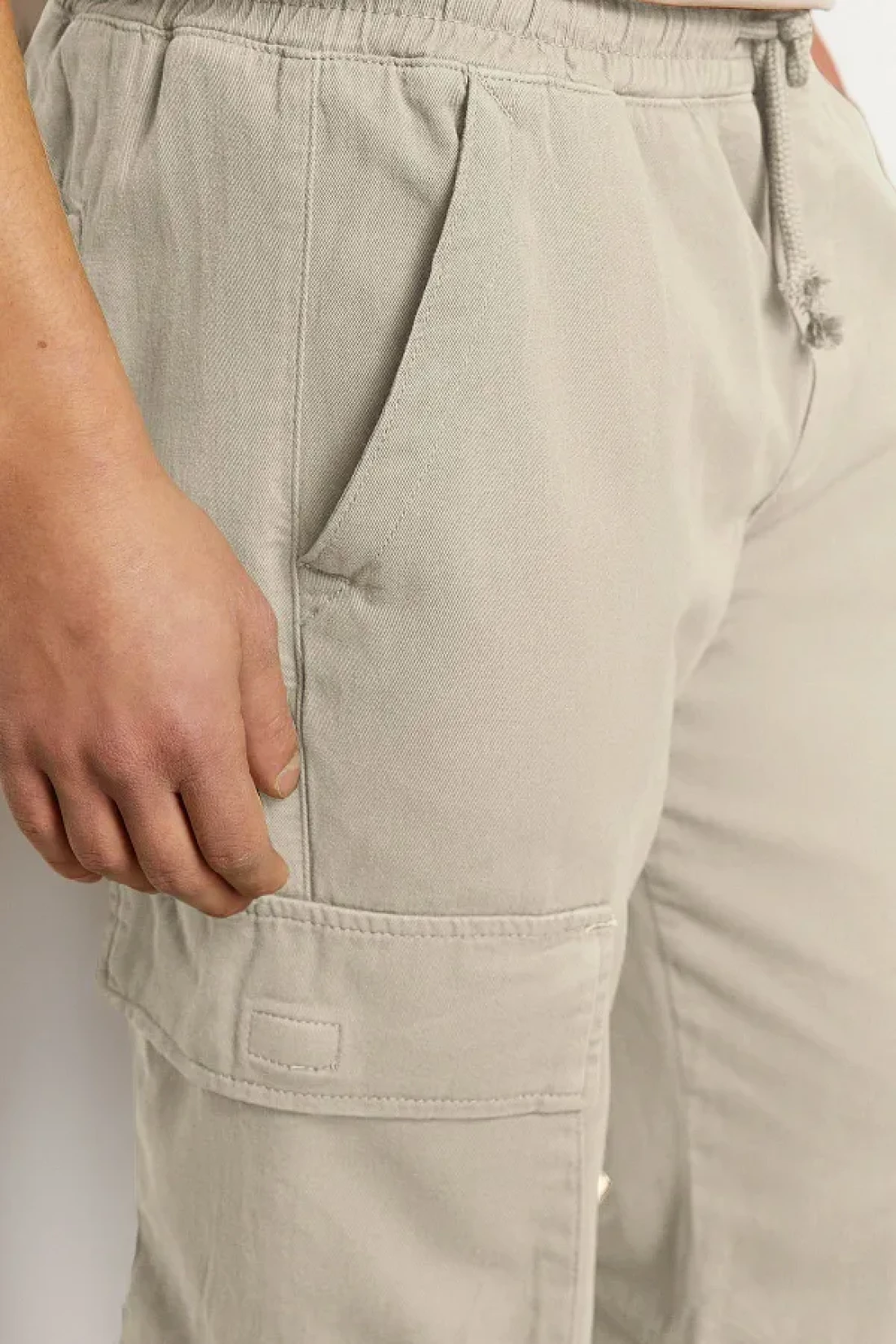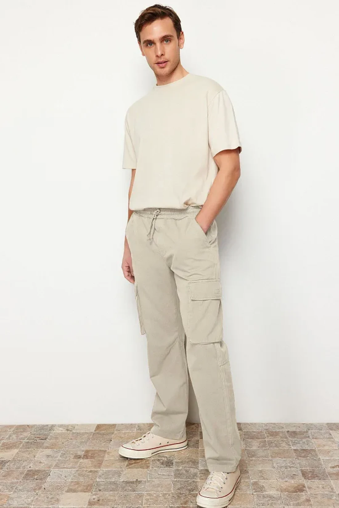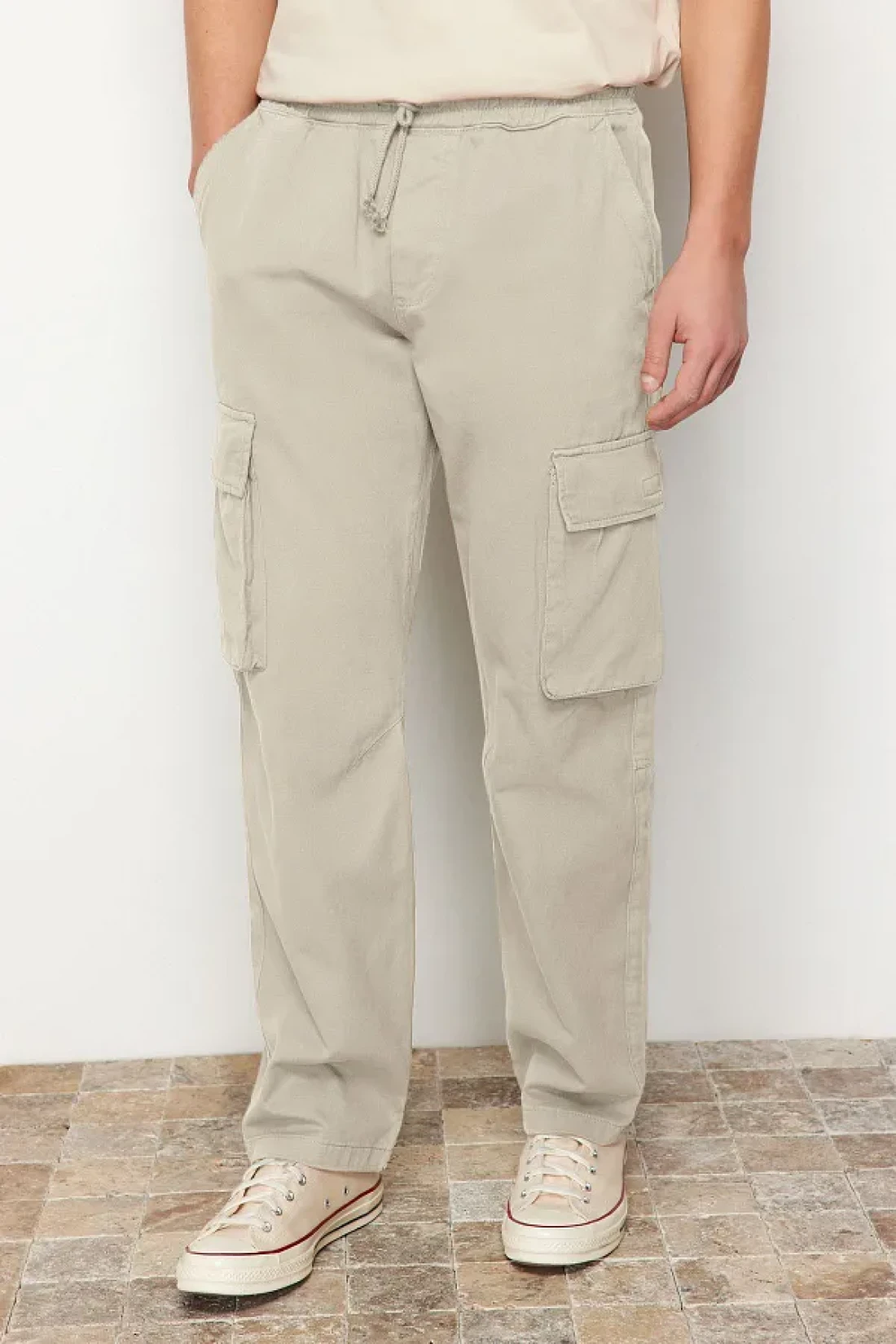 Collection بنطال كارجو بقصة عادية بلون حجري للجنسين - خصر مطاطي، قصة مربوطة TMNSS24PL00003