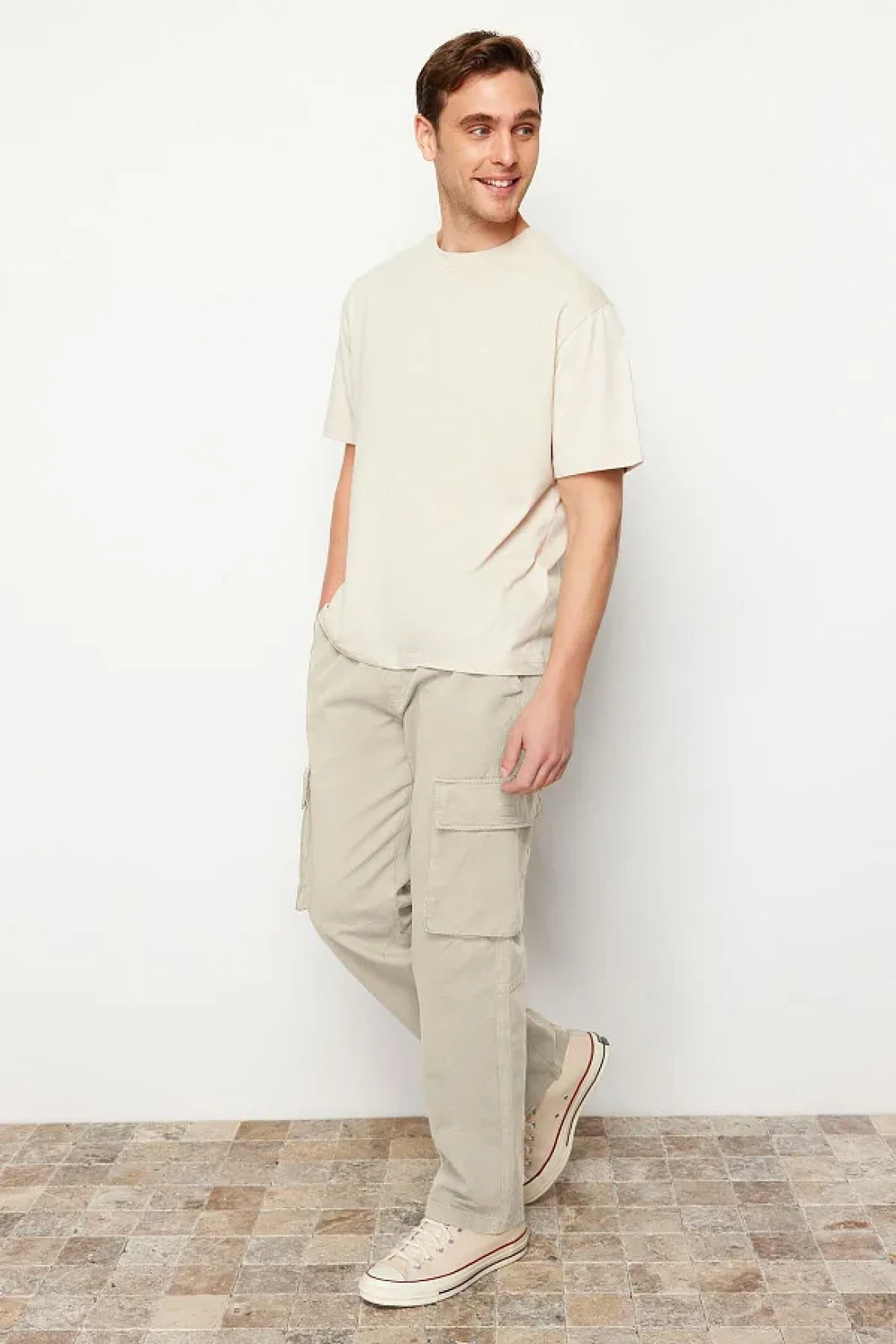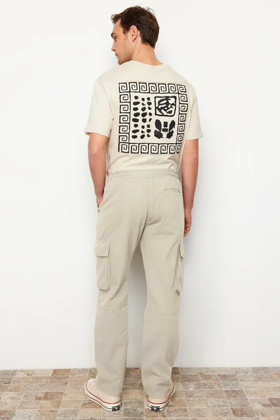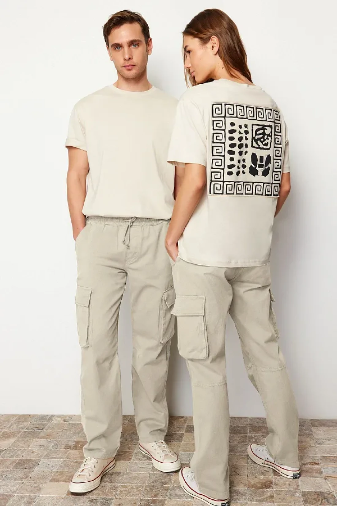 Collection بنطال كارجو بقصة عادية بلون حجري للجنسين - خصر مطاطي، قصة مربوطة TMNSS24PL00003