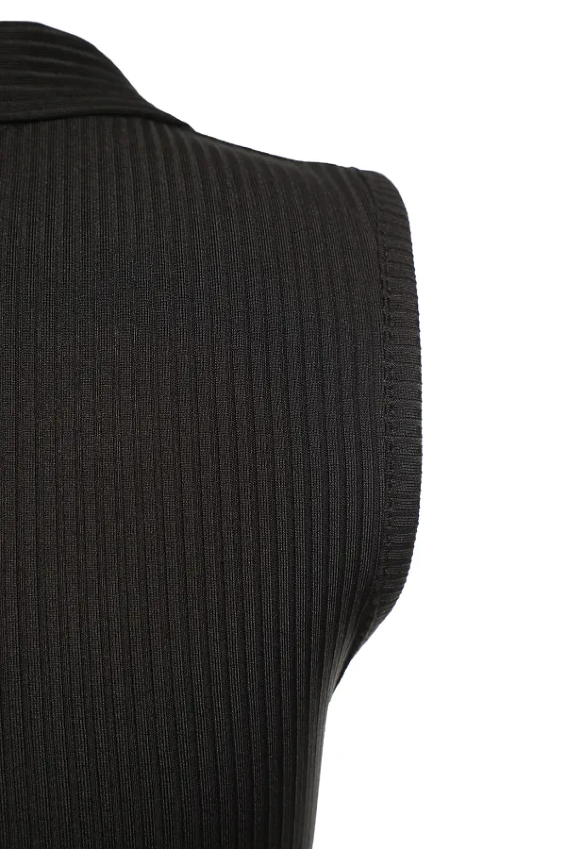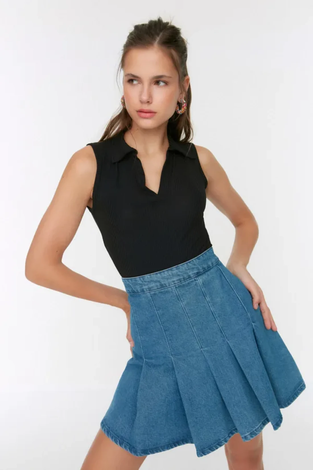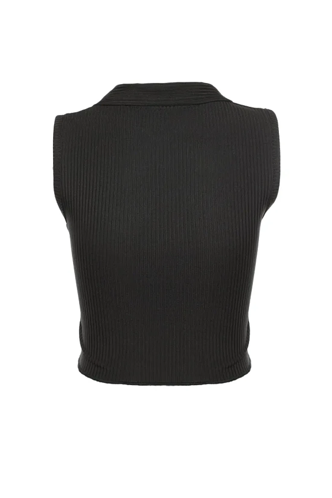 Collection بلوزة محبوكة قابلة للتمدد برقبة بولو سوداء اللون TWOSS22BZ0335