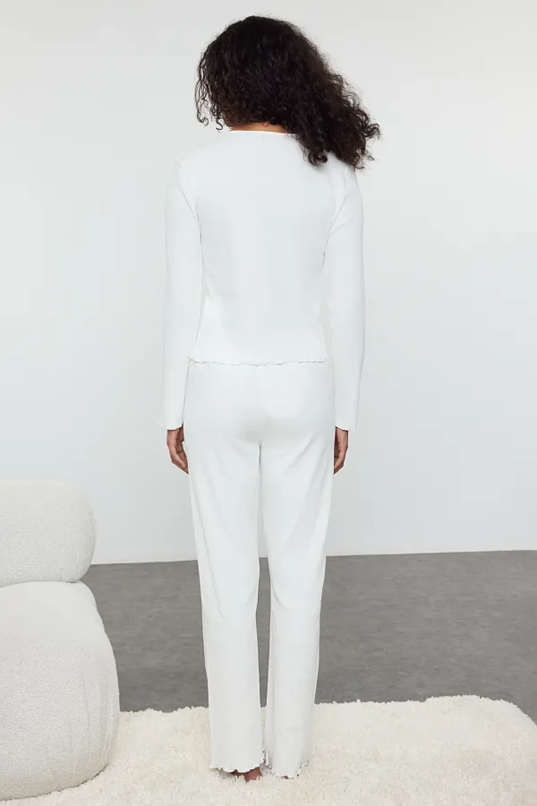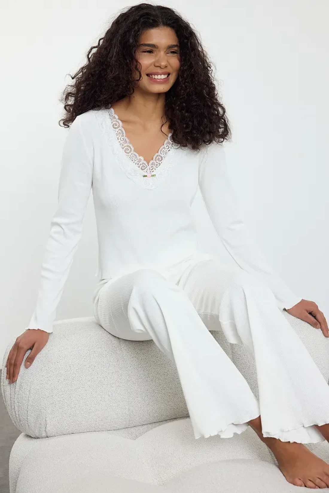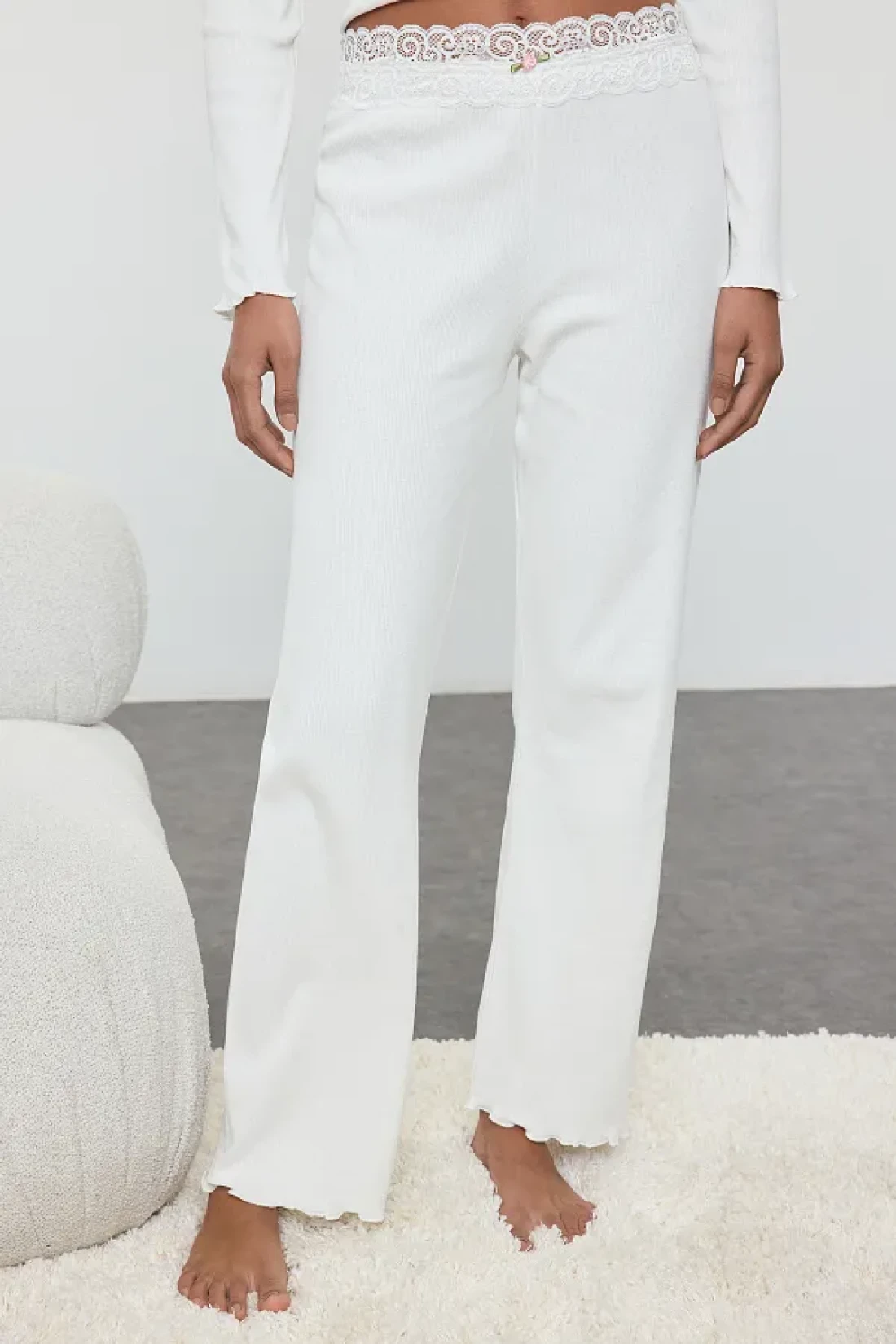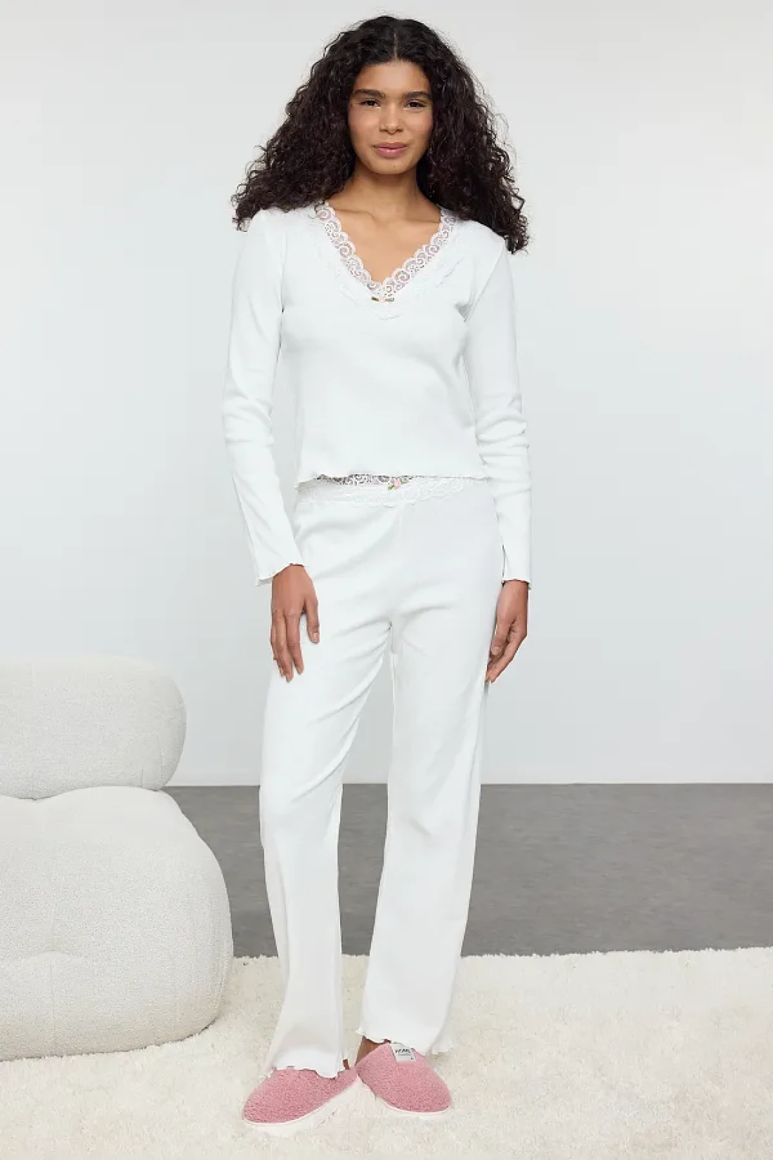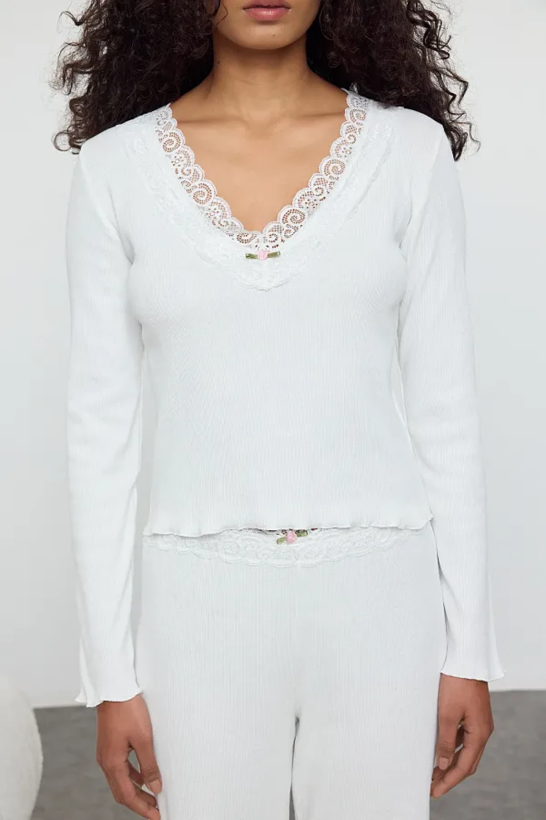 Collection طقم بيجامة محبوكة من القطن الأبيض مع إكسسوارات الورد THMAW25PT00233