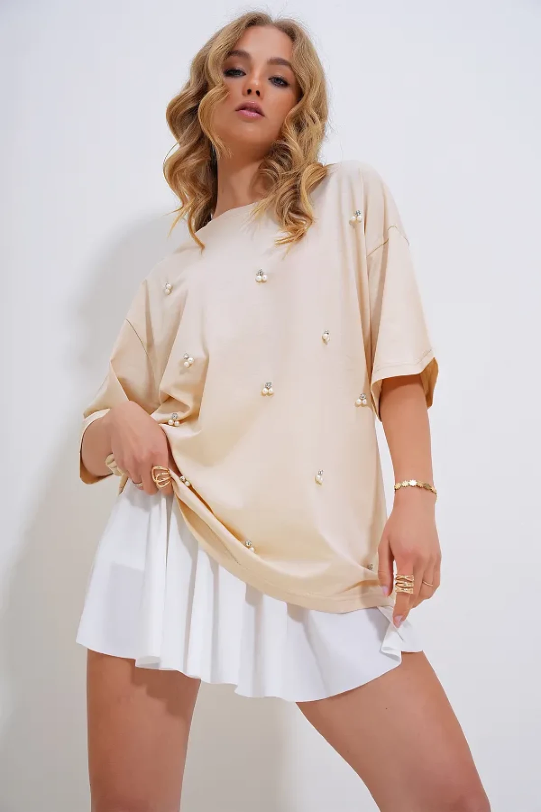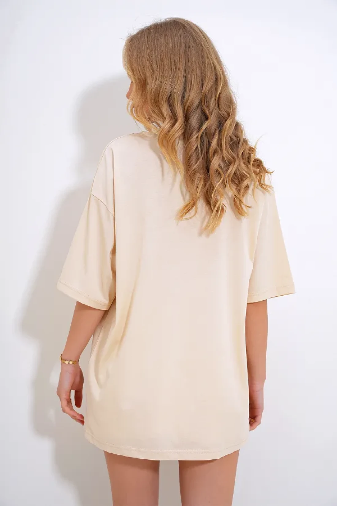 يقدم استخدامًا متينًا ومريحًا، مصنوع من نوع نسيج الجيرسيه ثنائي الخيط. كجزء من المجموعة الأساسية، يتميز بتصميم بسيط وخالد يكمل أناقتك اليومية. هذا t الذي يجذب الانتباه بنمطه مطبوع يمكن تفضيل القميص بسهولة في البيئات غير الرسمية. يمكن تنظيف النوع 1 بسهولة وفقًا لتعليمات الغسيل لذلك يبقى منتجك كما كان في اليوم الأول لفترة طويلة. بفضل نمطه قصة فضفاضة، فإنه يوفر حرية الحركة بسهولة ويتكيف مع نطاق واسع من الأحجام. مع تفاصيل اللؤلؤ، يعطي مظهرًا جذابًا، مع طباعته المطرزة بالأحجار، يبرز أسلوبك. يوفر التصميم ذو الأكمام القصيرة البرودة والراحة في الطقس الحار، بينما يتناسب مع محيط جسمك بمقاسه العادي. الطباعة التي تنتج باستخدام تقنية الطباعة على القماش / الحجر، تظهر التفاصيل بشكل كبير.