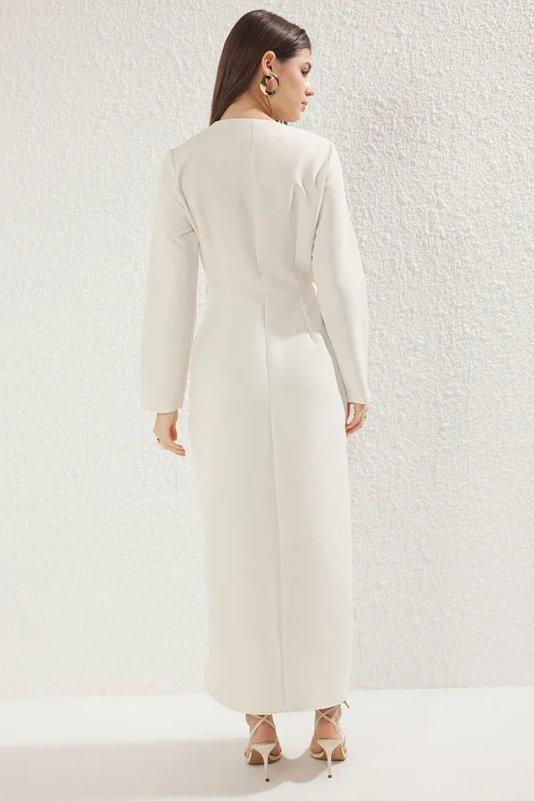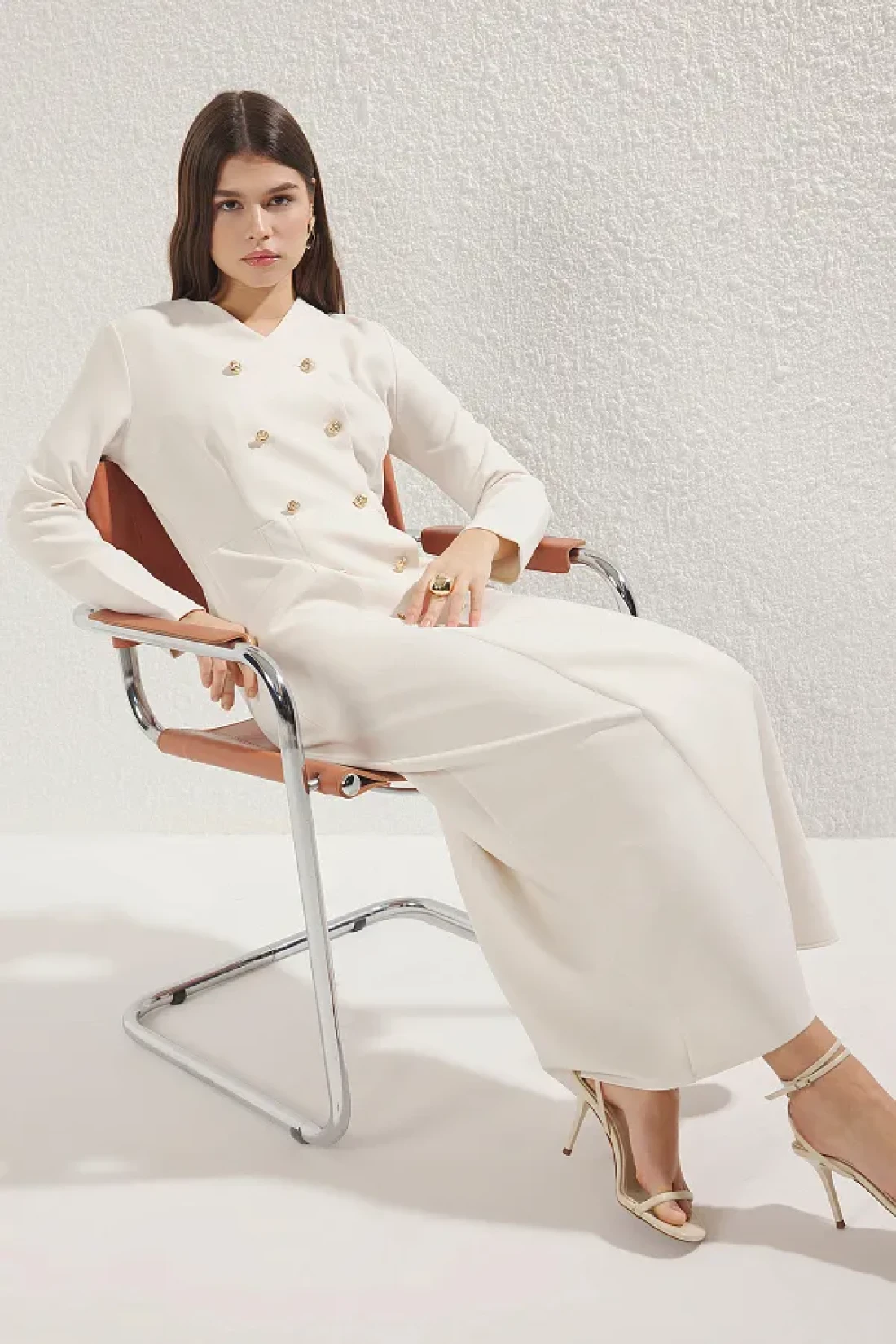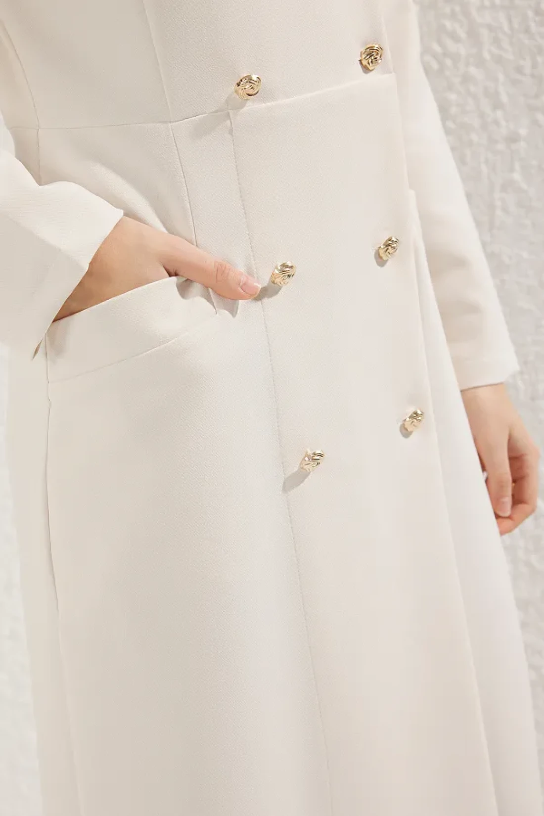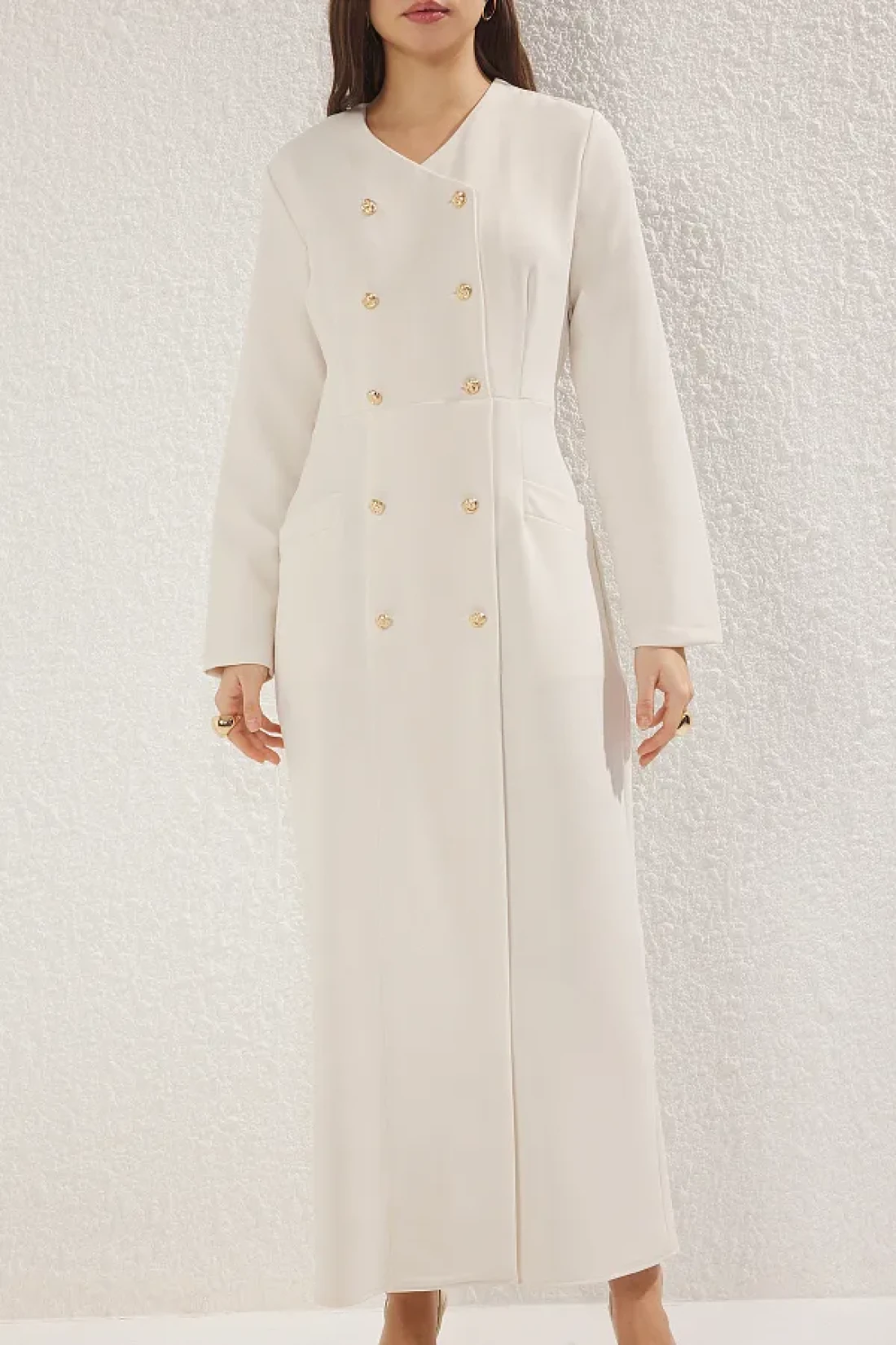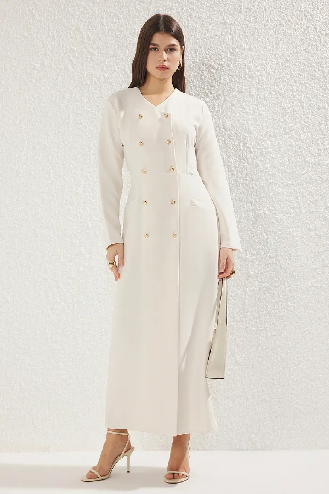 Modest فستان من القماش المنسوج بأزرار باللون البيج TCTSS25EB00027