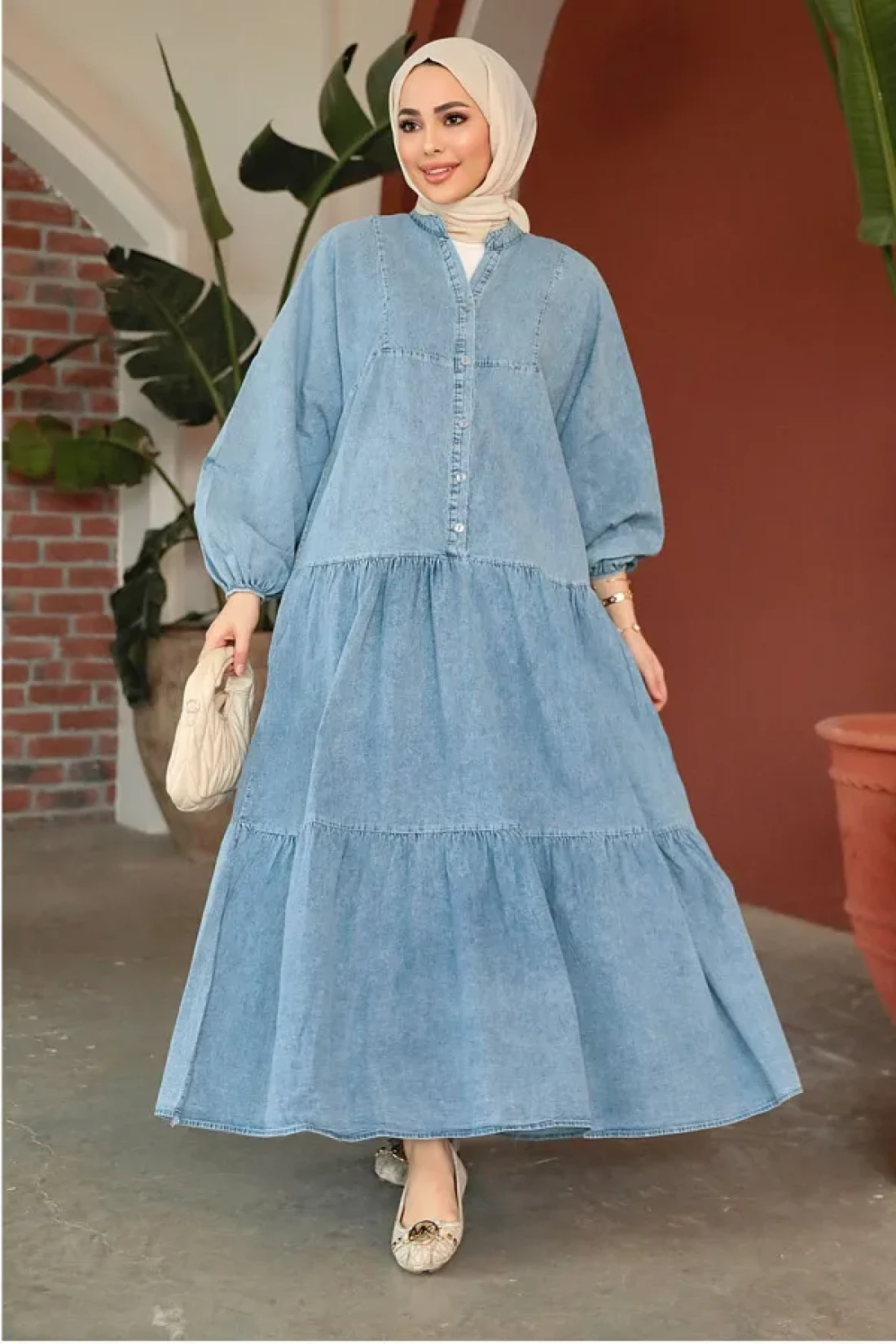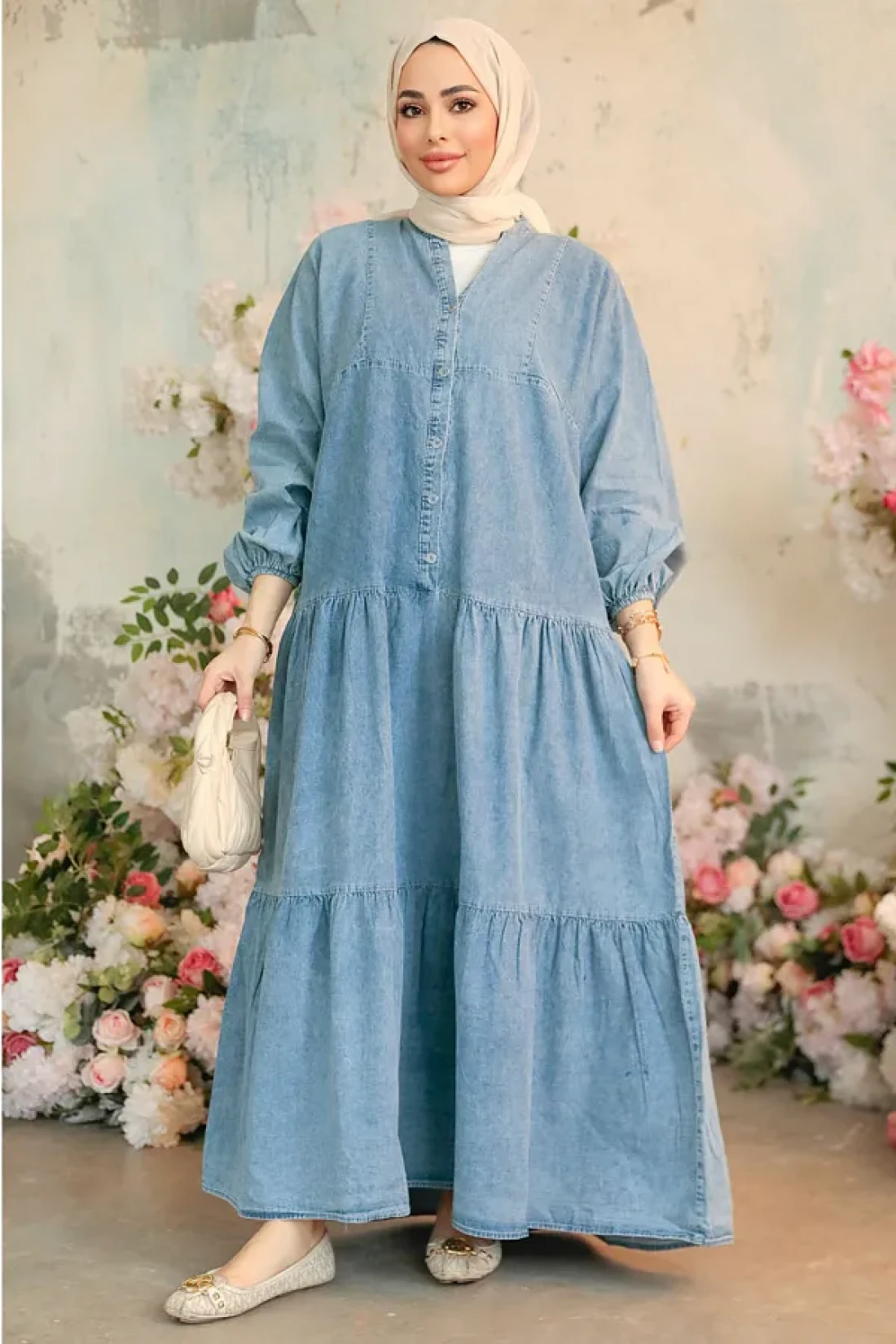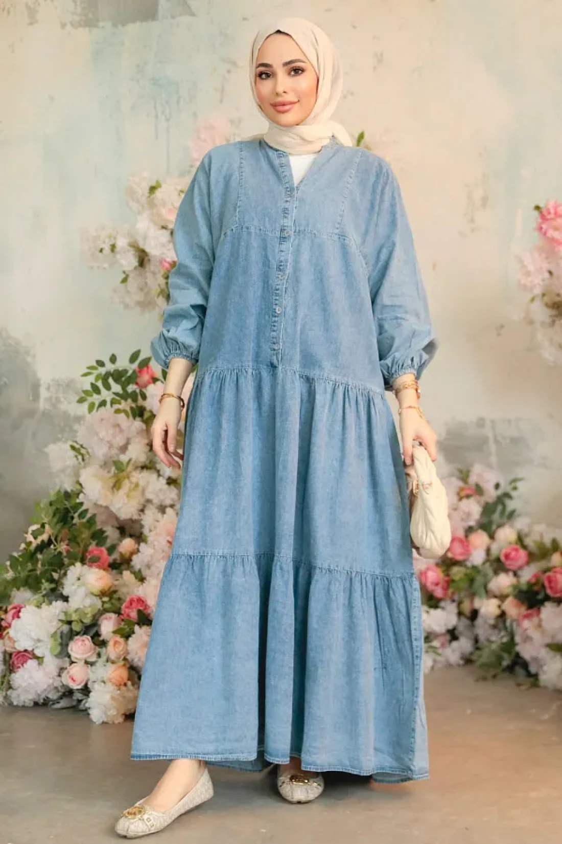 Neva Style فستان جينز حجاب أزرق بأزرار 10622M