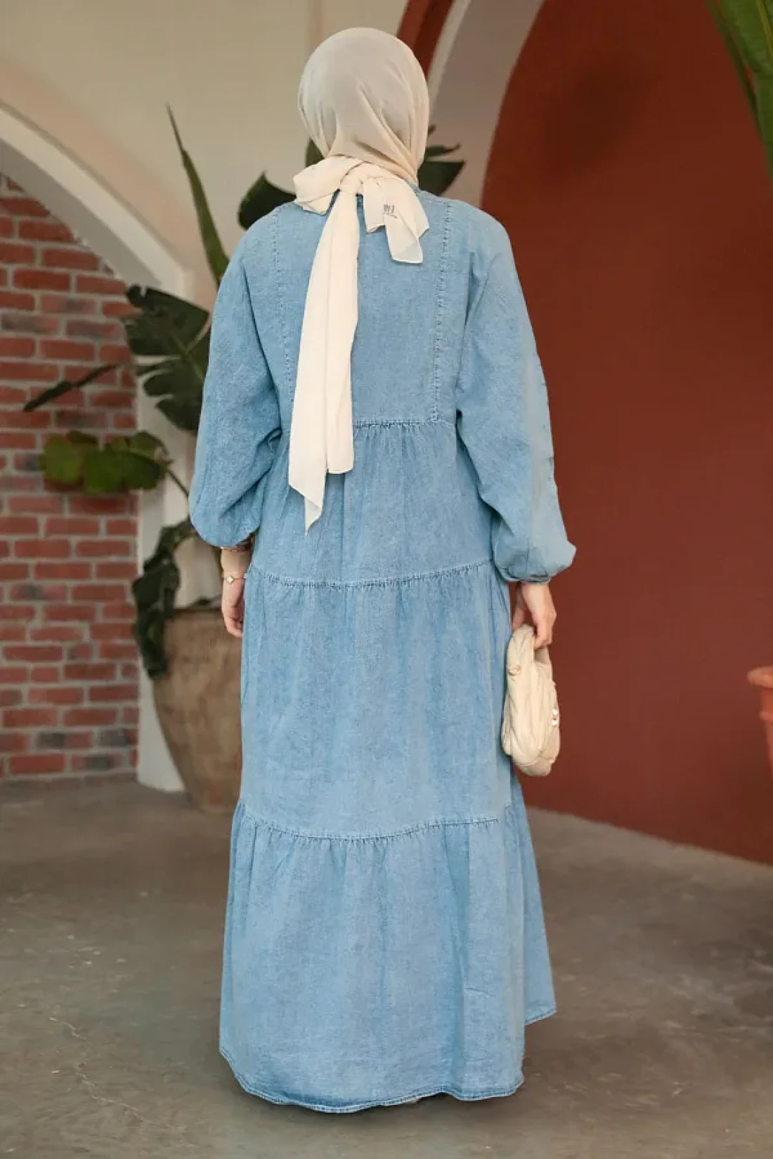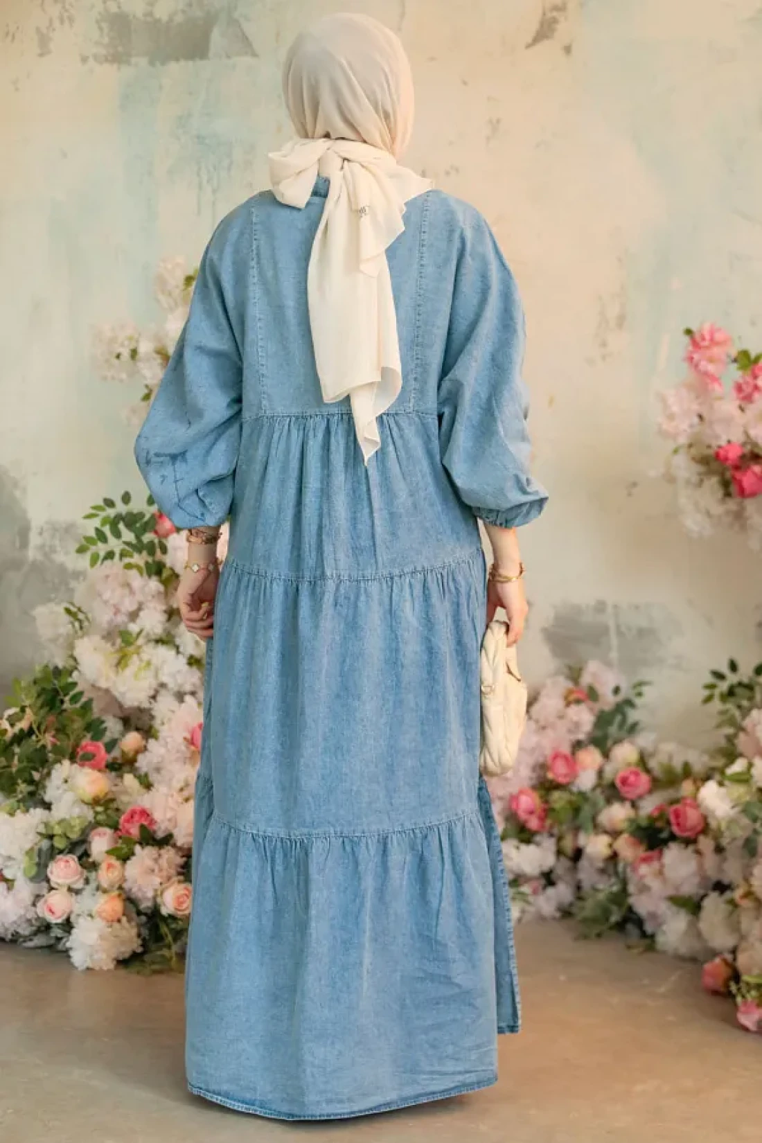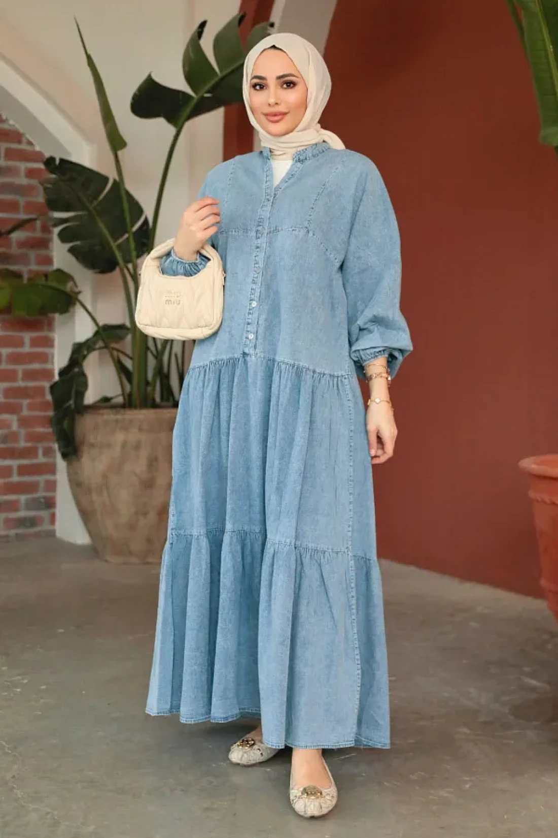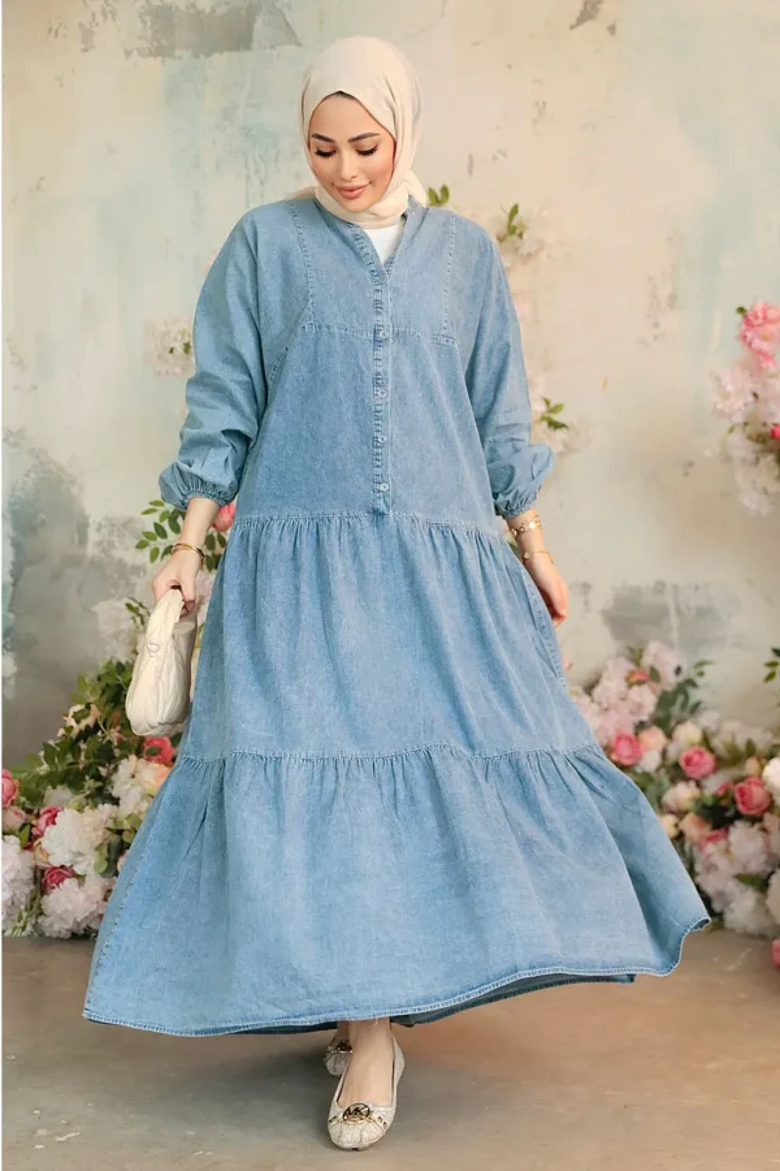 Neva Style فستان جينز حجاب أزرق بأزرار 10622M
