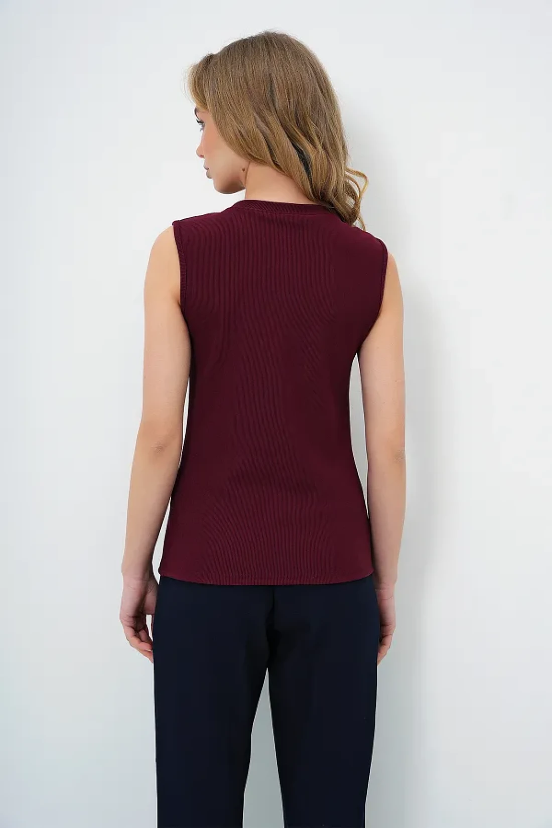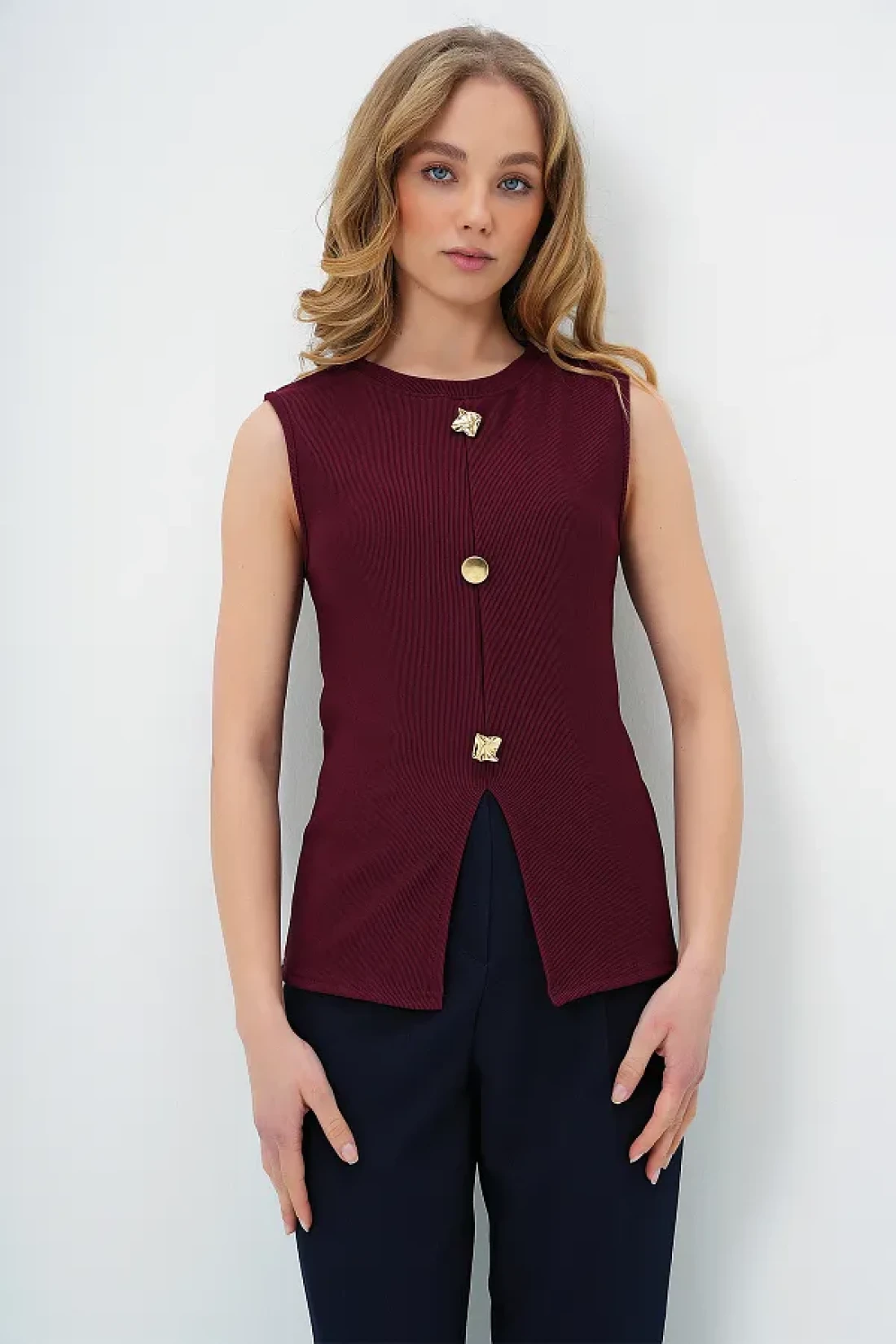 Trend Alaçatı Stili بلوزة نسائية باللون العنابي بياقة دائرية وأزرار ذهبية من Ottoban ALC-X13729