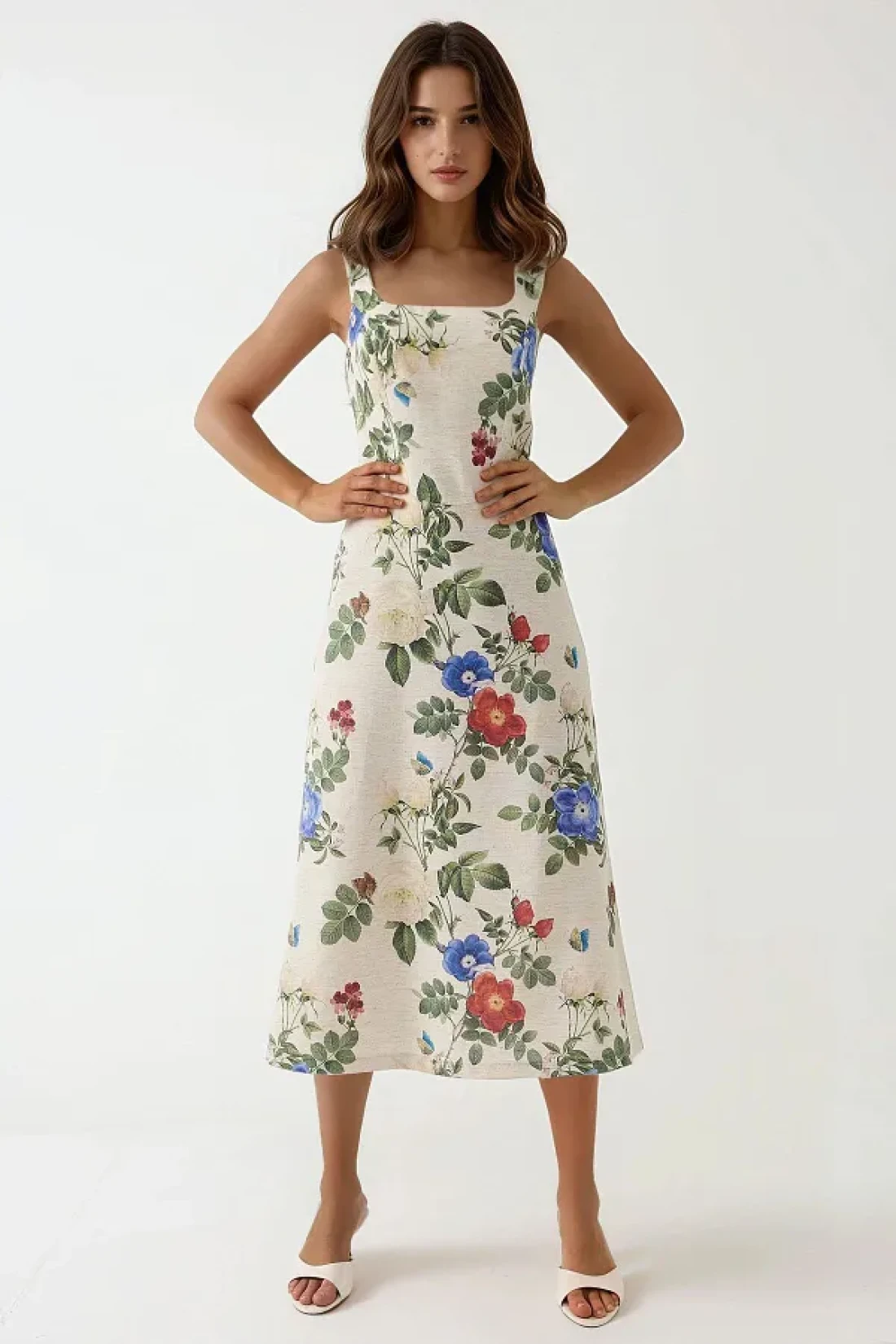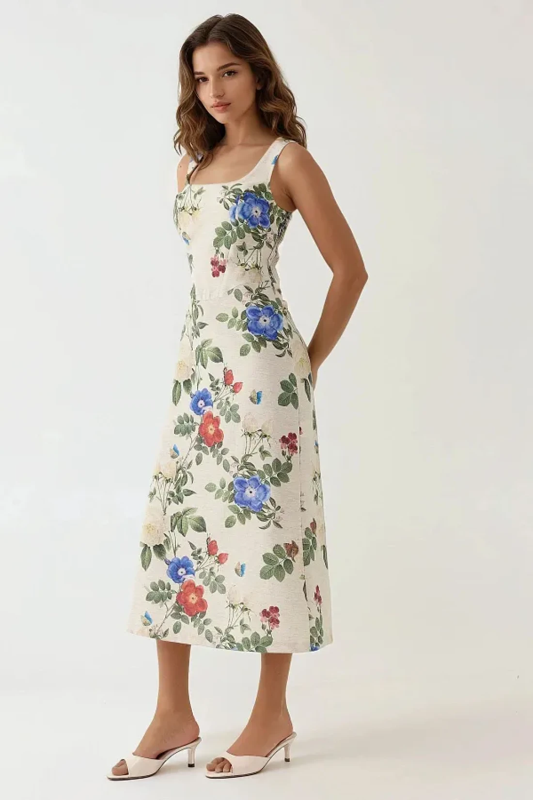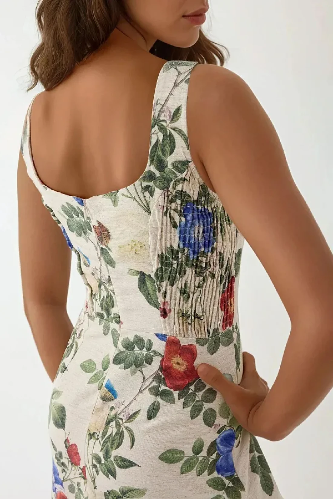 Hiccup فستان طويل منقوش على شكل زهرة من الكتان مع بطانة من الداخل