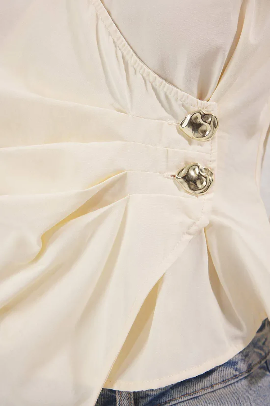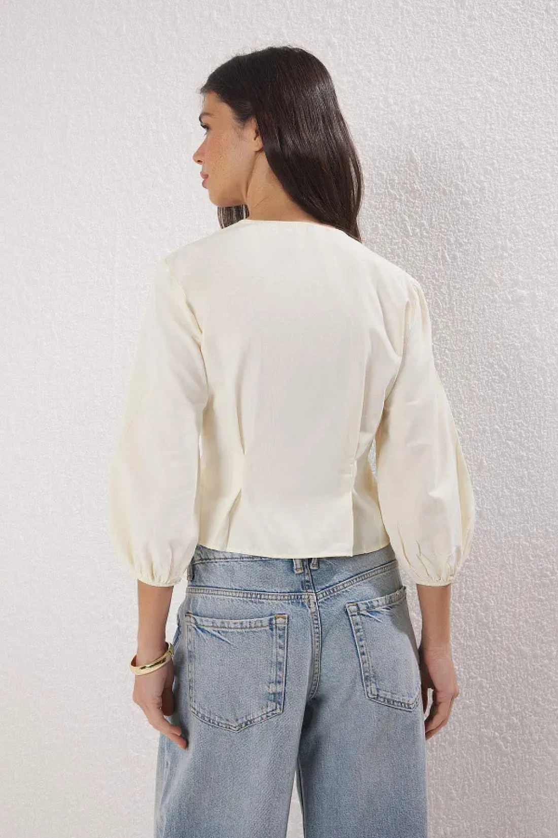 Collection بلوزة منسوجة مخططة مزدوجة الصدر باللون البيج الفاتح TWOSS25BZ00170