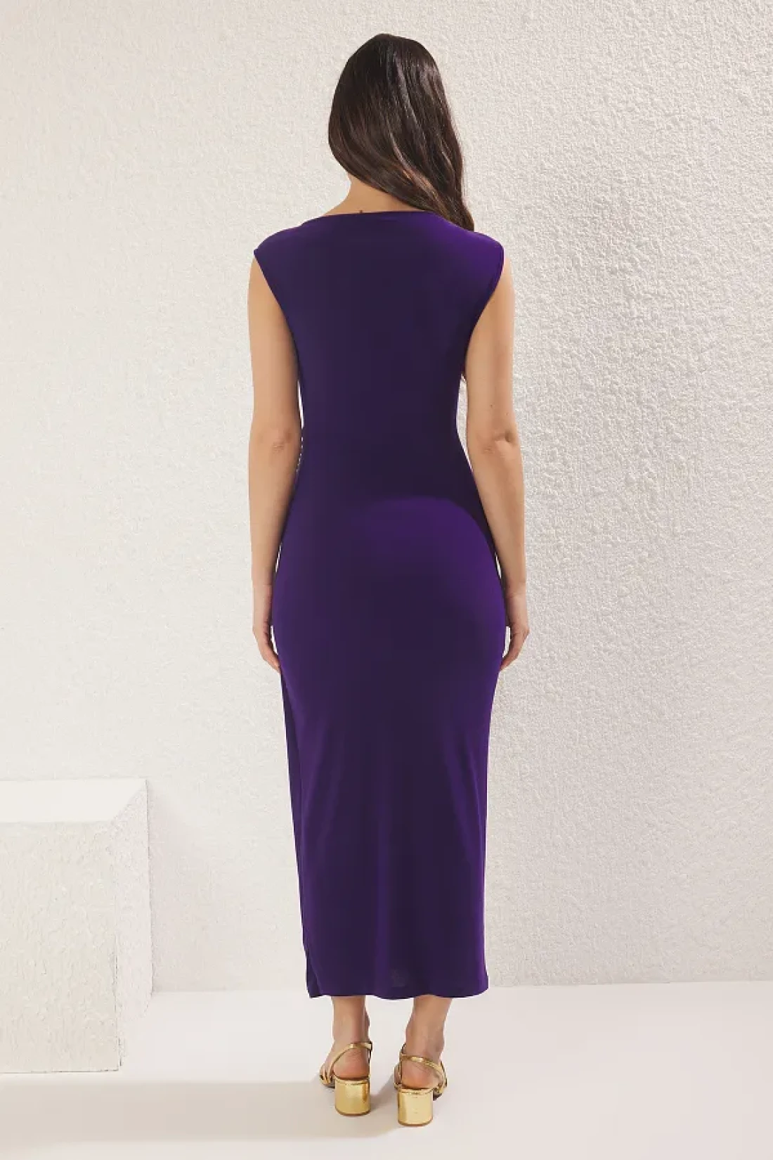 Collection Bodycone الأرجواني / الملحقات المجهزة، وأكمام Taylan Moon وفستان محبوك متوسط الطول