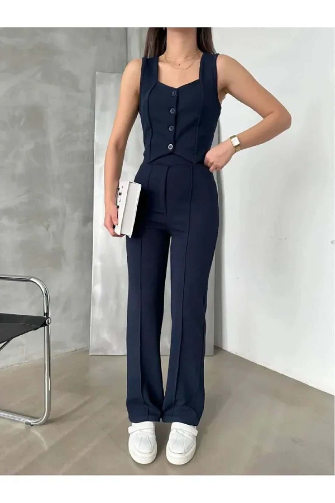 - بدلة سترة تبرز خصرك بتفاصيل حزامها وتوفر مظهرًا أنيقًا - يخلق طرازًا عصريًا وأنيقًا بتصميم خط العنق على شكل قلب؛ - متوفر بلون ونمط ثابت، يسهل تنسيقه مع أي بيئة؛ - يقدم مجموعة واسعة من المستخدمين، ويلبي جميع الفئات العمرية؛ - يوفر الراحة والأناقة معًا بتصميمه الكاجوال المثالي للاستخدام اليومي؛ - بدلة علوية وسفلية مع سروال سترة، توفر لك مجموعة كاملة، مما يوفر وقتك؛ بفضل تفاصيلها المرنة، توفر استخدامًا مريحًا، بينما يسمح النمط الكبير الحجم بالتحرك بحرية. - مع نوع النسيج المحبوك الذي يشبه الملابس المحبوكة، فإنه يوفر لمسة ناعمة ومتانة معًا. - تصميم الجيب المزدوج يوفر استخدامًا عمليًا؛ يوفر منطقة وصول سهلة لأغراضك الصغيرة.