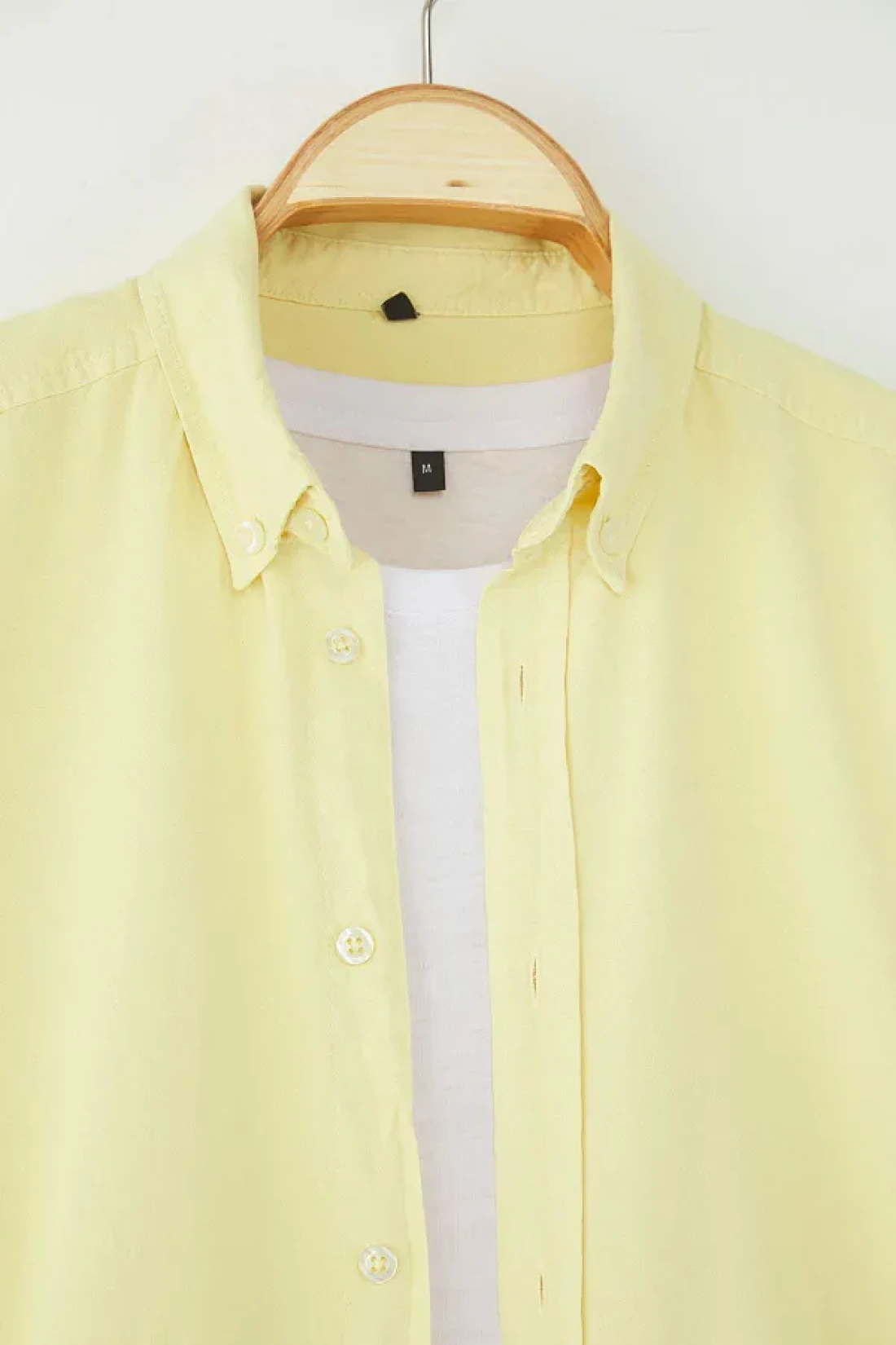 Collection قميص أصفر للجنسين بقصة عادية 100% قطن وكتان TMNSS23GO00099