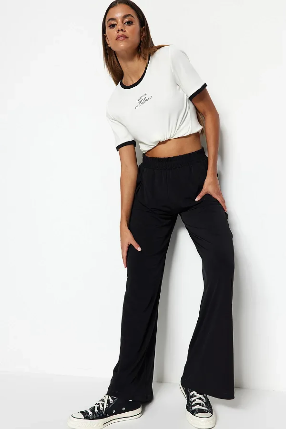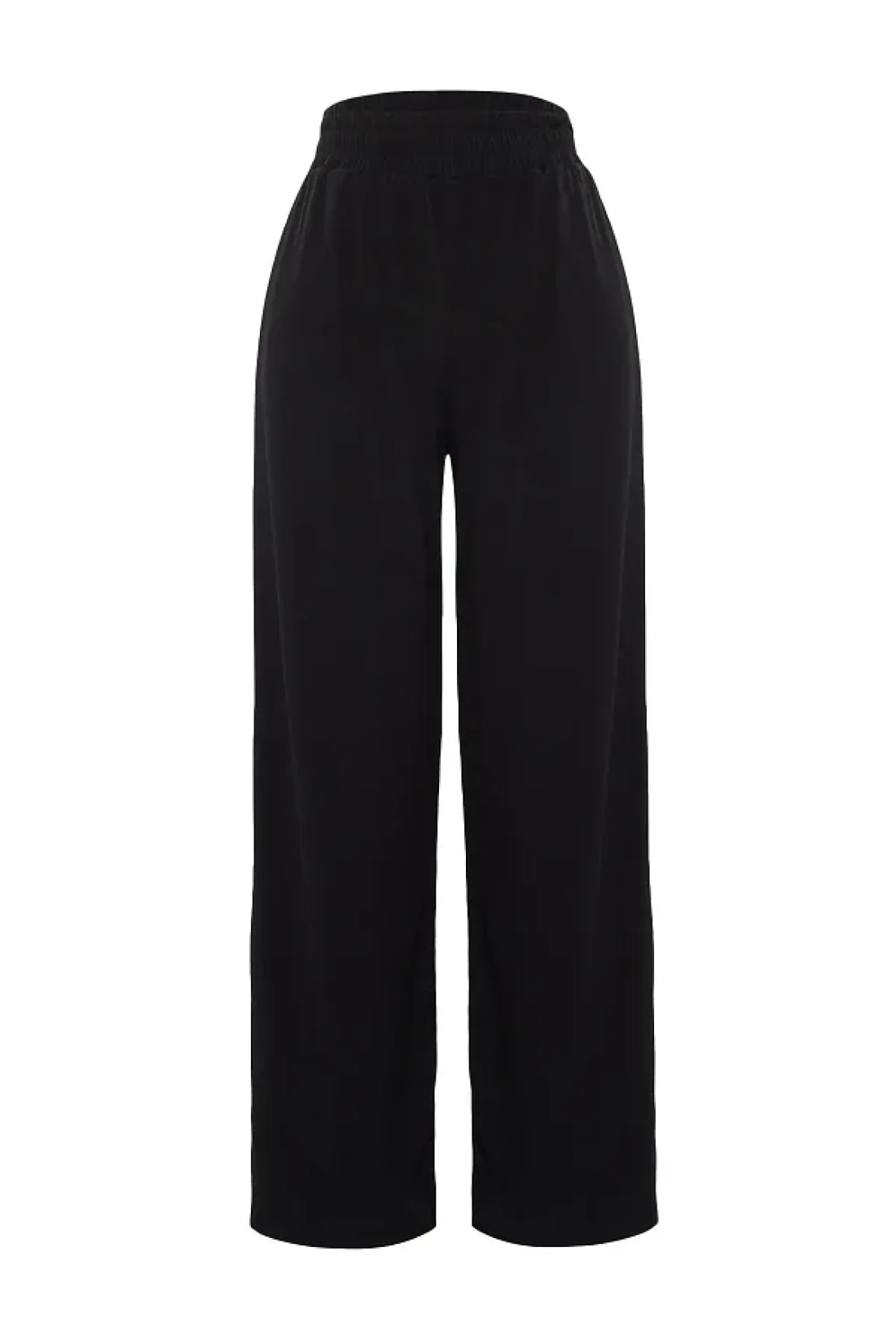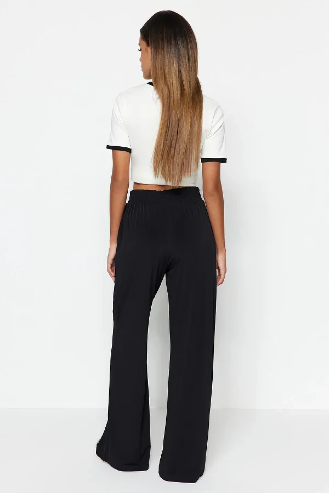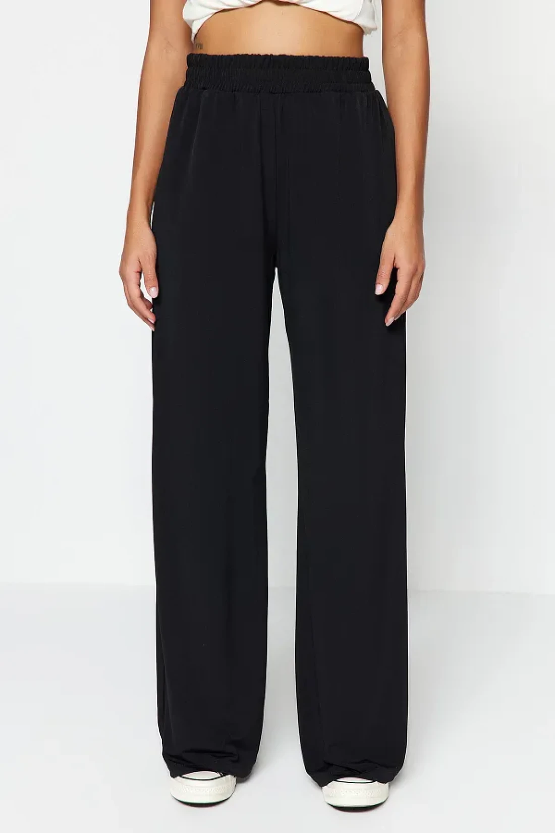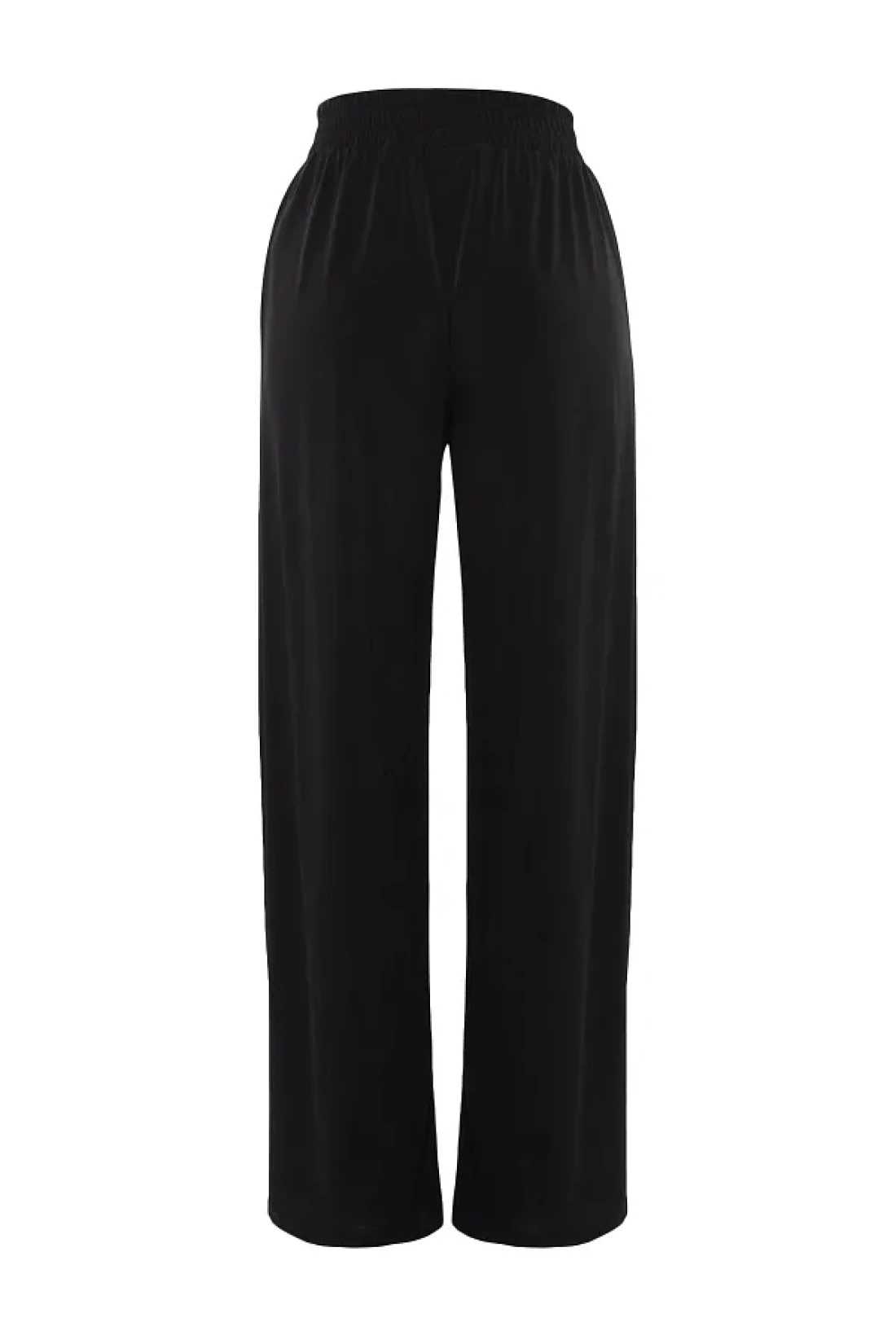 Collection بنطلون محبوك عالي الخصر قابل للتمدد - أسود مريح ذو قصة واسعة الساق TWOSS23PL00129