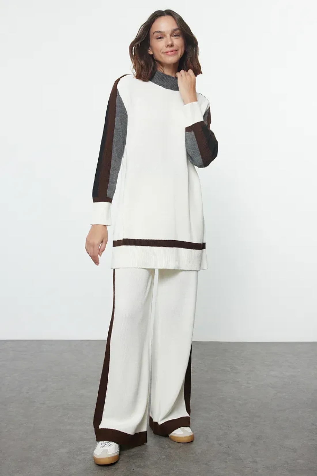 Modest طقم تريكو أبيض بياقة واقفة - TCTAW25US00030