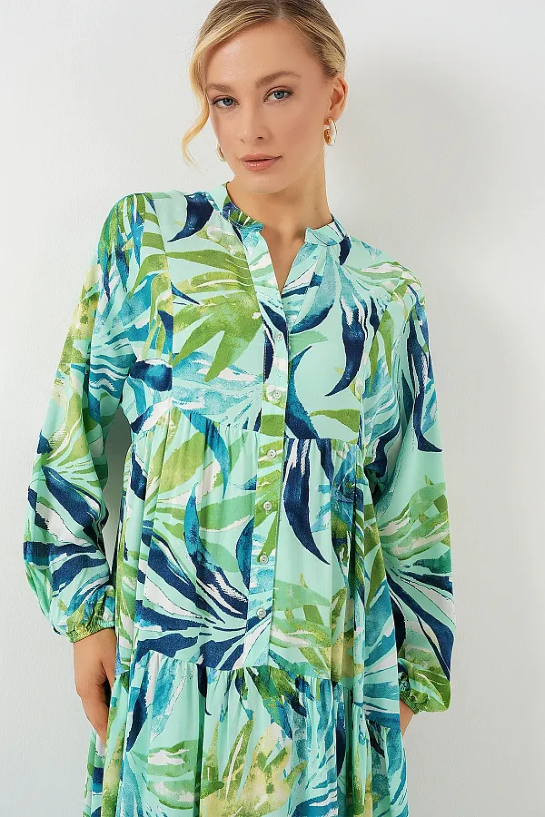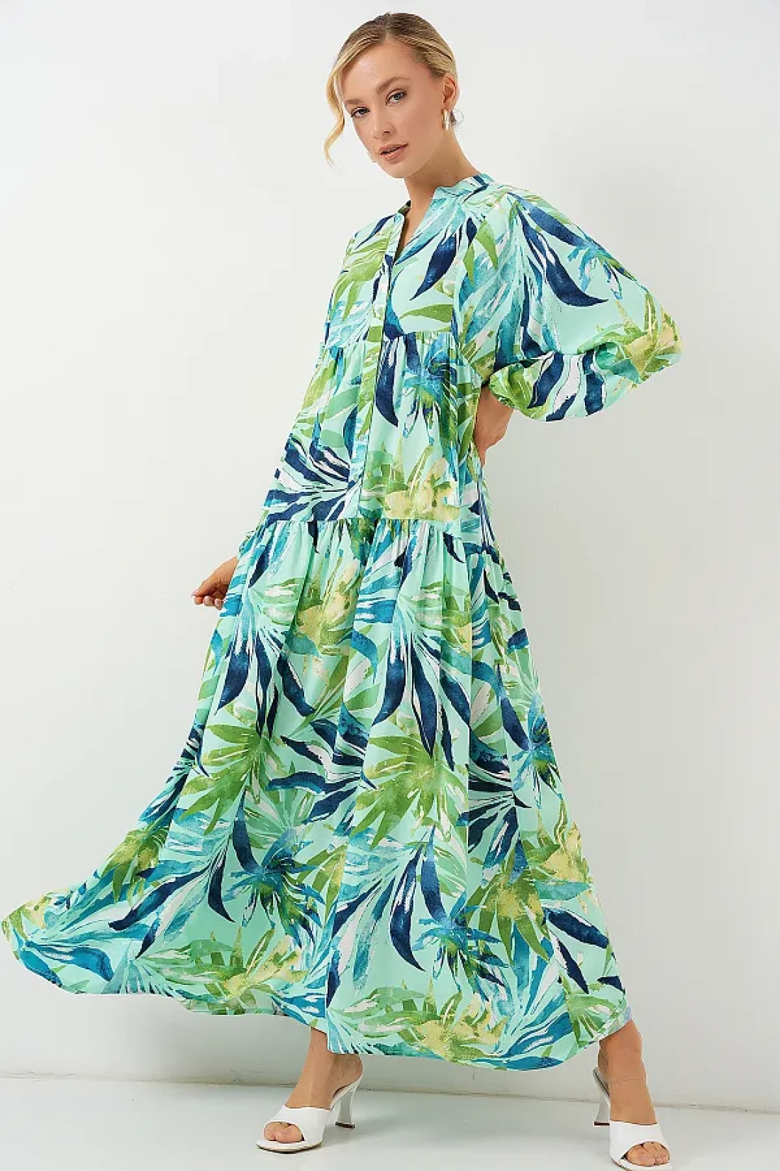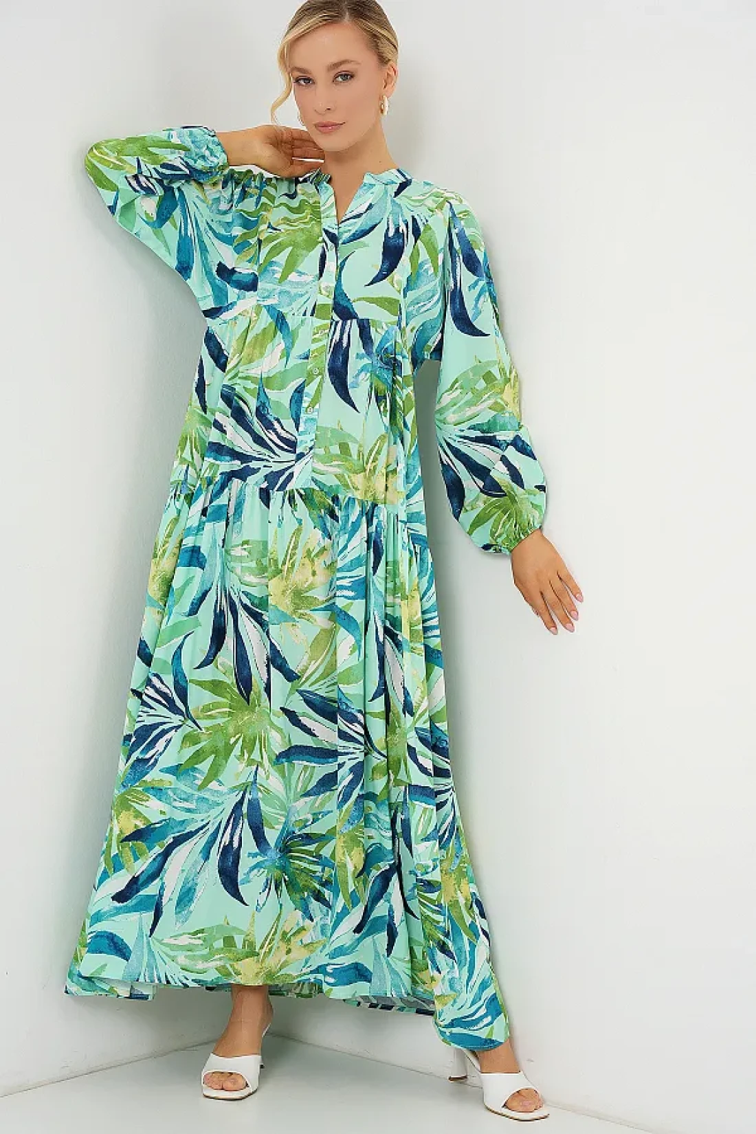 محتوى المنتج 100٪ فيسكوز ميزات المنتج: فستان منقوش أصلي معلومات الموديل الحجم: 38 طول المنتج: 136 سم طول الكم: 60 سم منتجنا غير مبطن. حجم العارضة: الطول: 176 الصدر: 90 الخصر: 63 الورك: 94 تعليمات الغسيل والاستخدام العامة لتجنب تلف المنتج أثناء الغسيل، لا تتجاوز 30 درجة مئوية عند غسل المنتج، اغسله وفقًا لتعليمات الغسيل، استخدم المنظفات المناسبة للمنتجات الملونة.