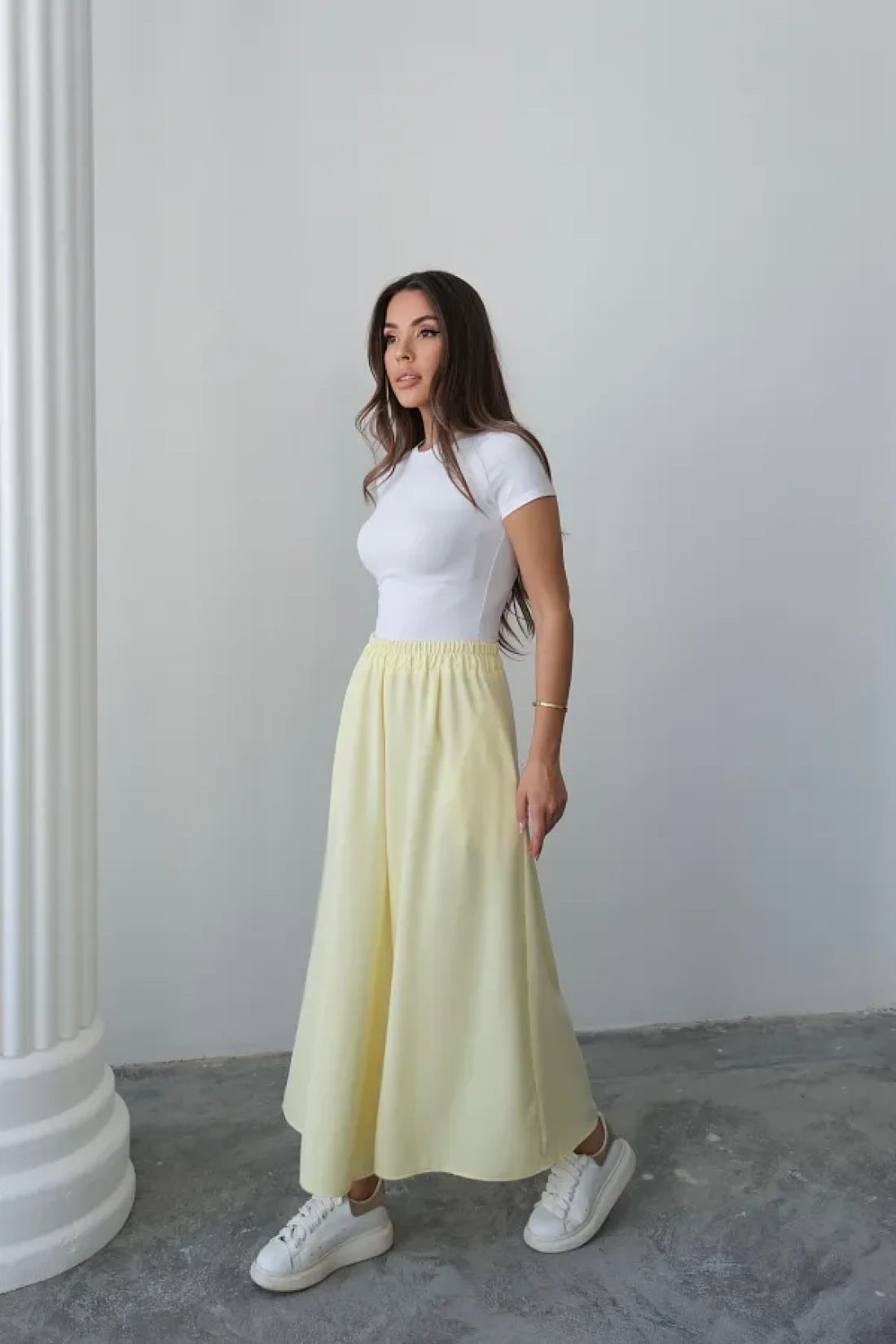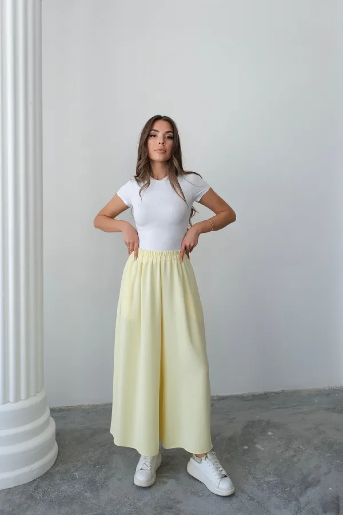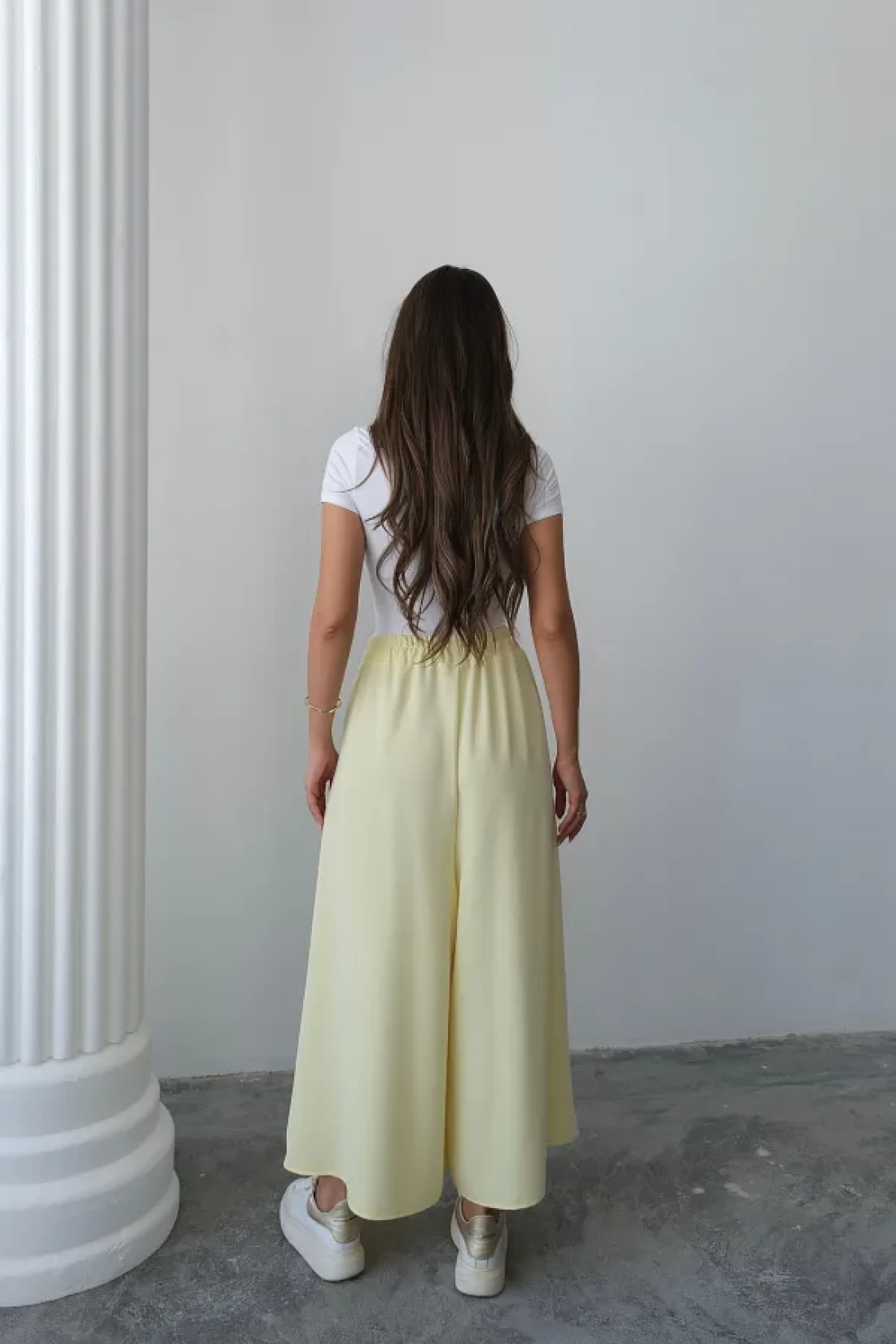 Hatun Atila تنورة بنطلون كريب مزدوجة واسعة القطع بخصر مطاطي - أصفر