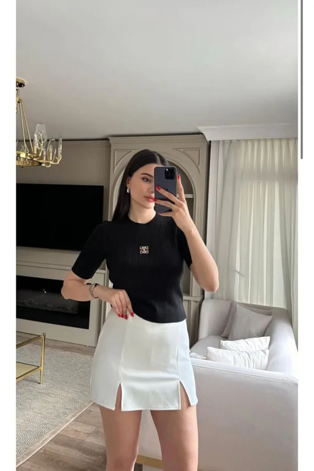 يوفر استخدامًا رائعًا ومريحًا في أشهر الصيف بفضل تصميمه قصير الأكمام. بفضل قصته المستقيمة، يتم تحقيق مظهر بسيط وأنيق. نسيج محبوك، يوفر الراحة طوال اليوم بملمسه الناعم. إنه خيار مناسب للجميع بفضل نطاق المقاسات الواسع الذي يناسب جميع الفئات العمرية. يتناسب النمط النحيف بشكل مثالي مع خطوط جسمك، مما يخلق صورة ظلية أنيقة؛