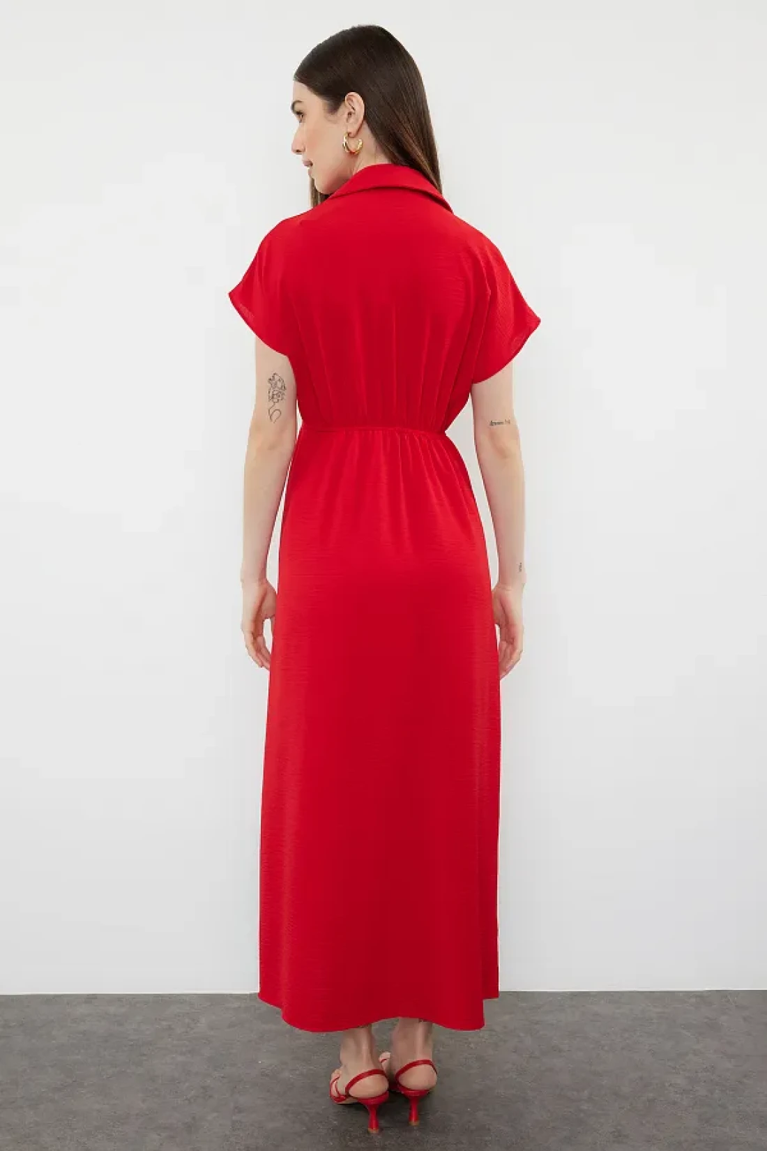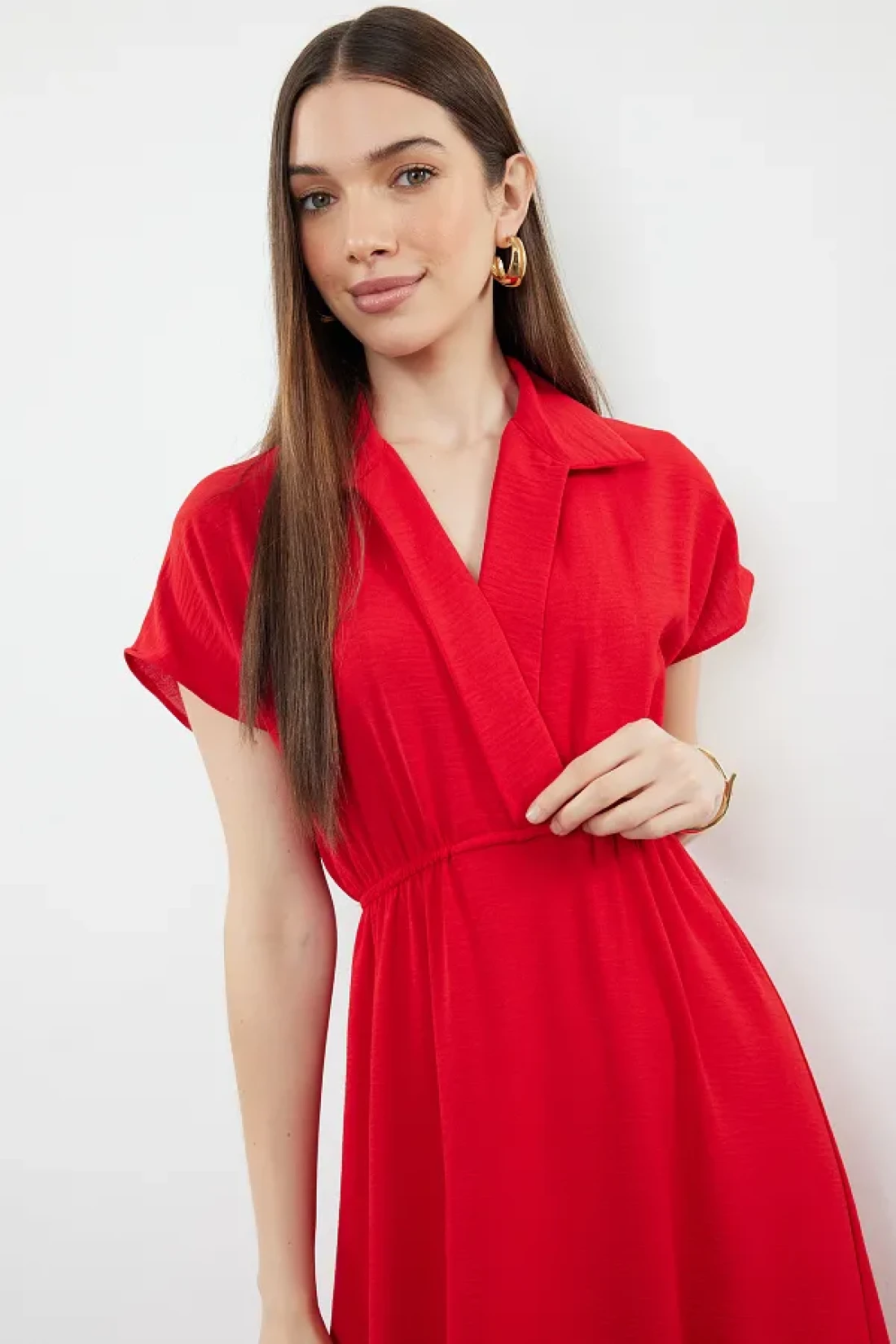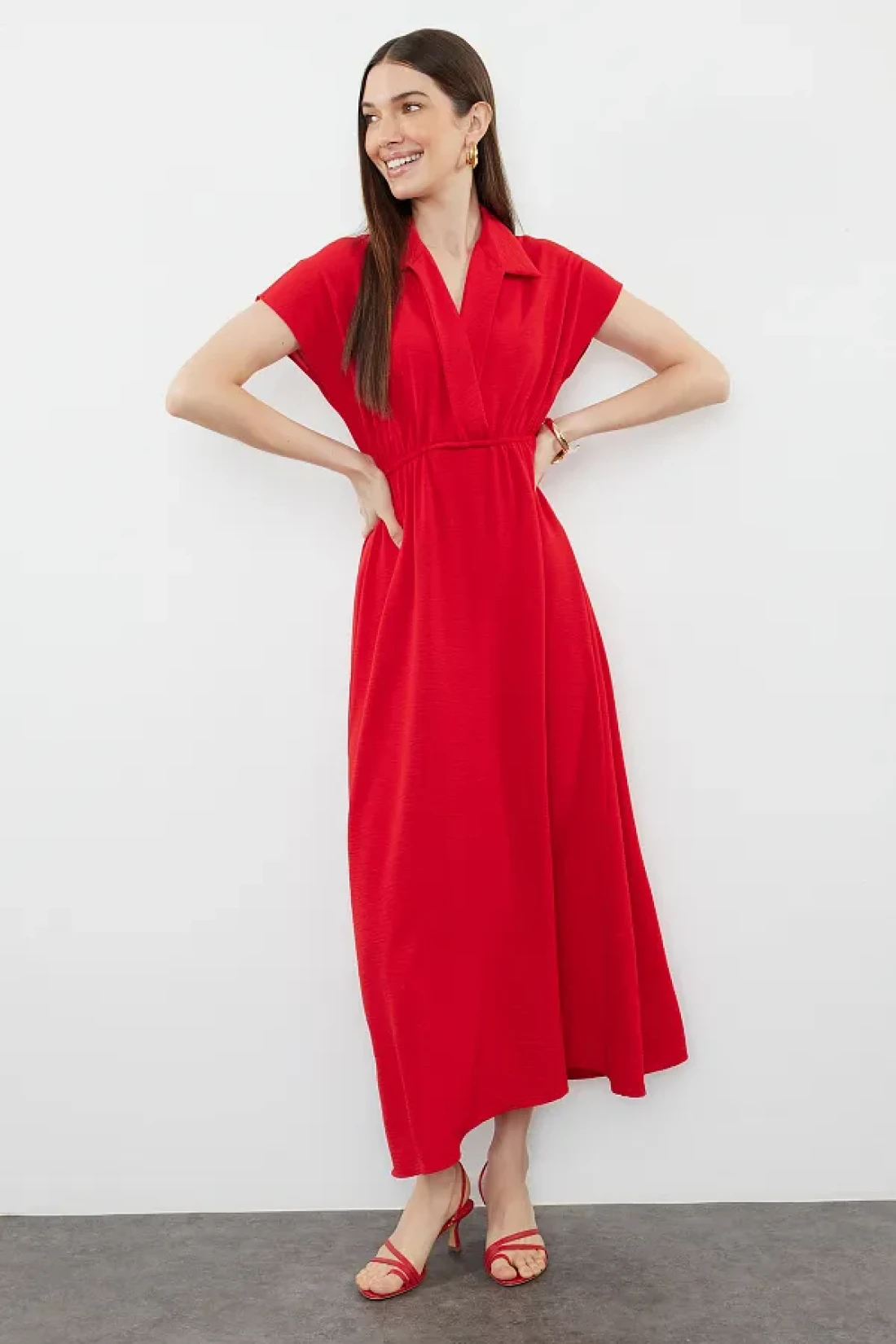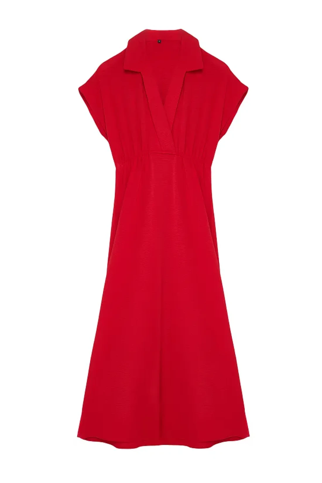 Collection فستان Aerobin أحمر متوسط الطول - سادة على شكل حرف A، ياقة مزدوجة الصدر TWOSS24EL00599