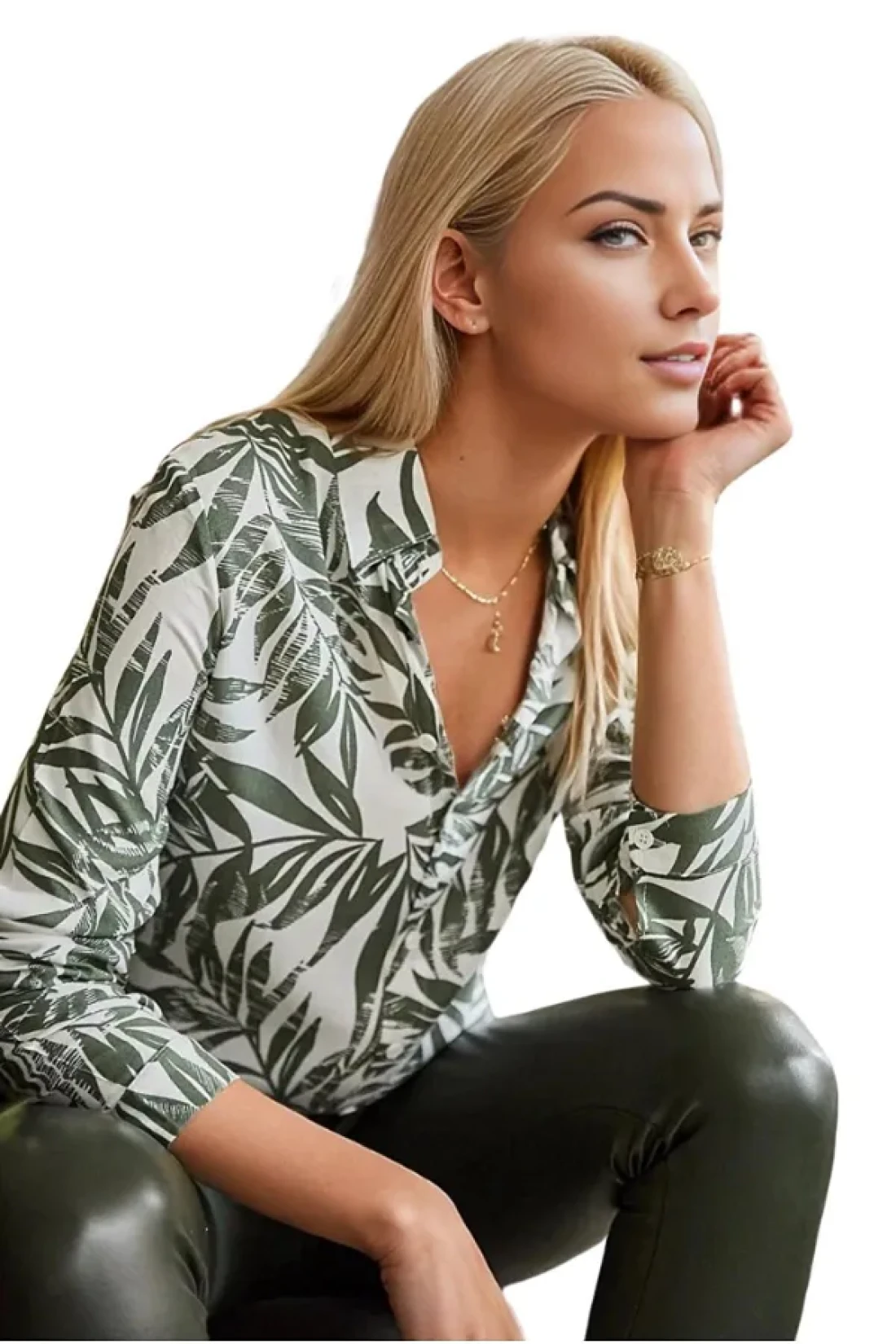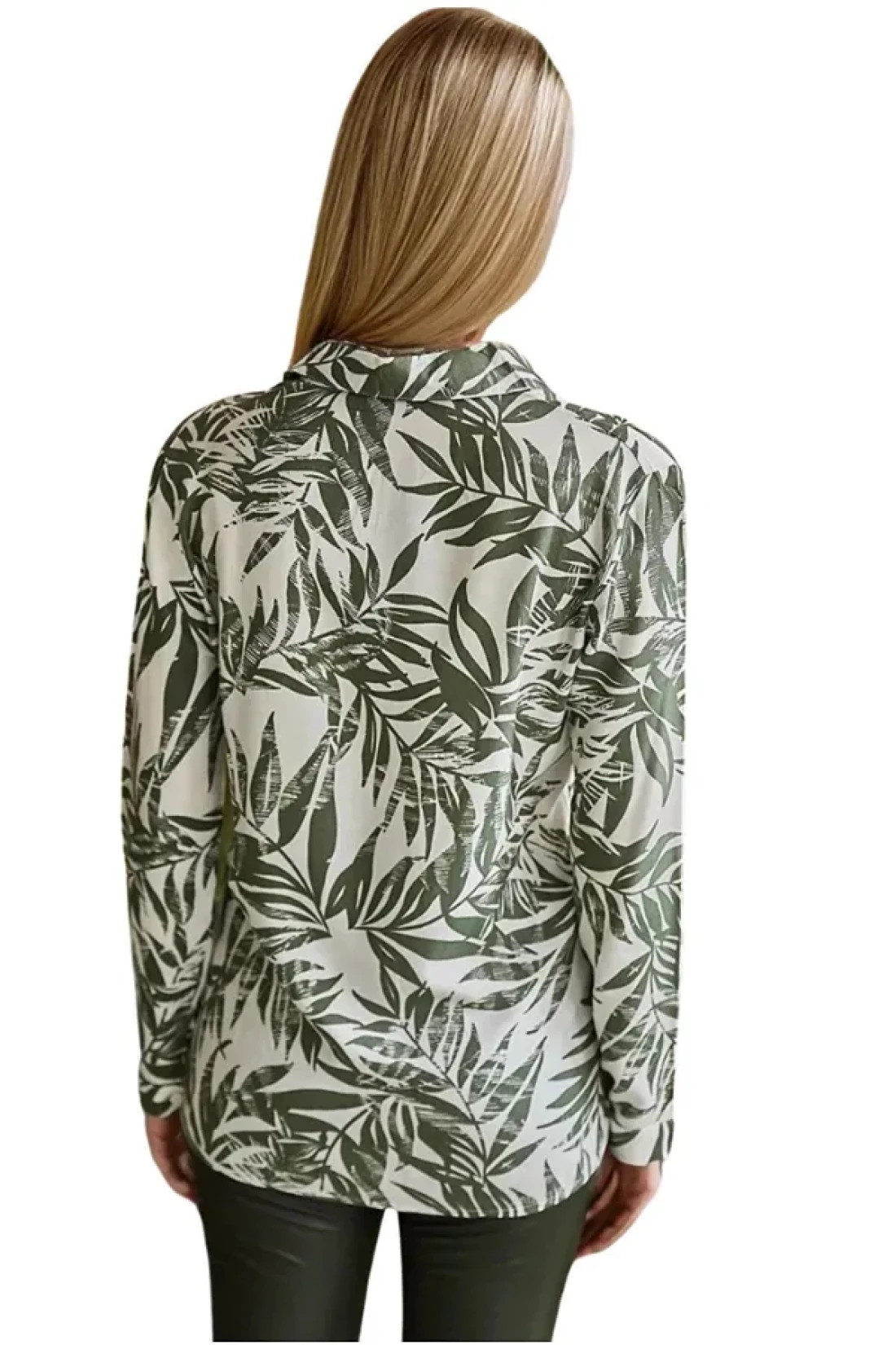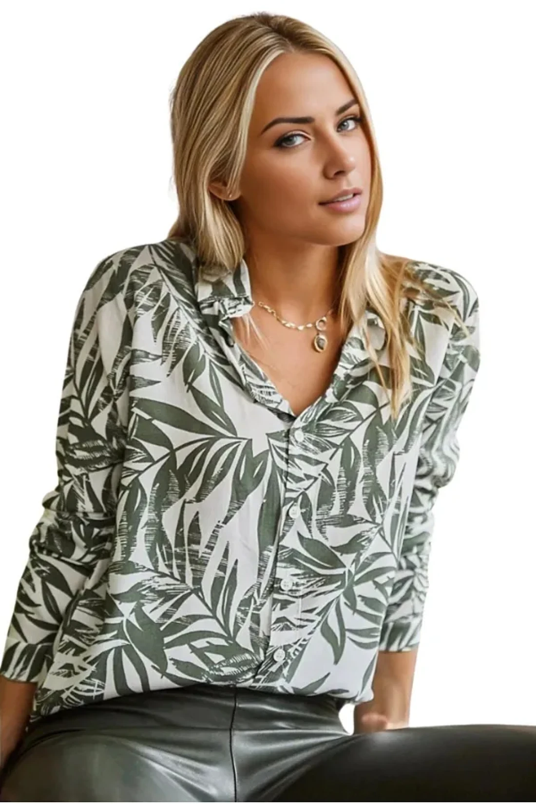 Cassime قميص فيسكوز بأكمام طويلة منقوش بأوراق خضراء للنساء S-m-l-xl-2xl-3xl