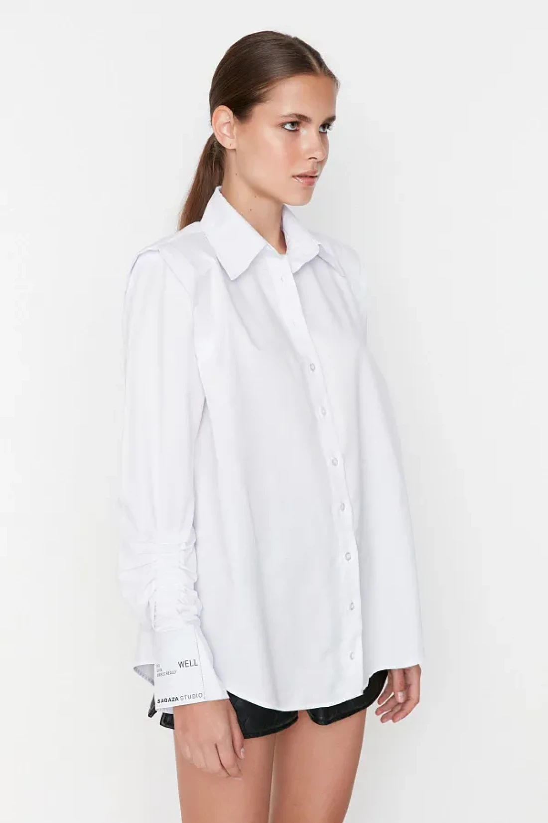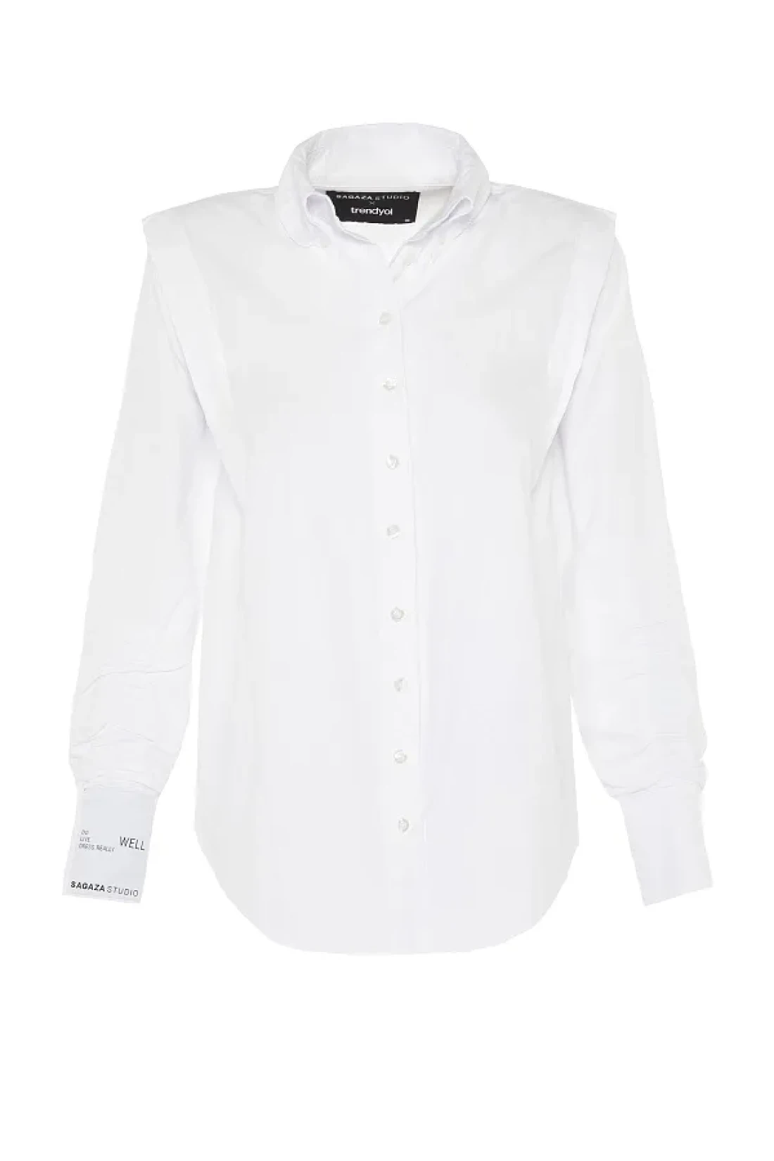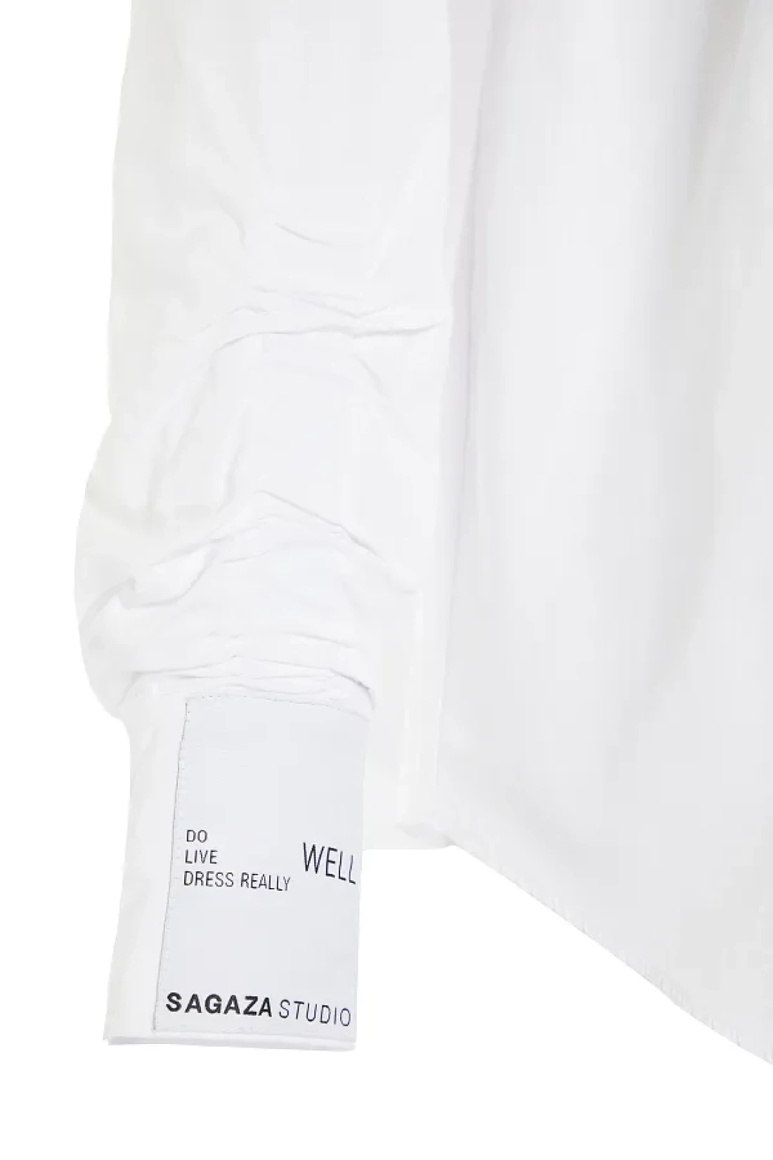 Collection قميص Sagaza Studio Poplin - أبيض، تفاصيل رباط، منسوج TPRAW22GO1191