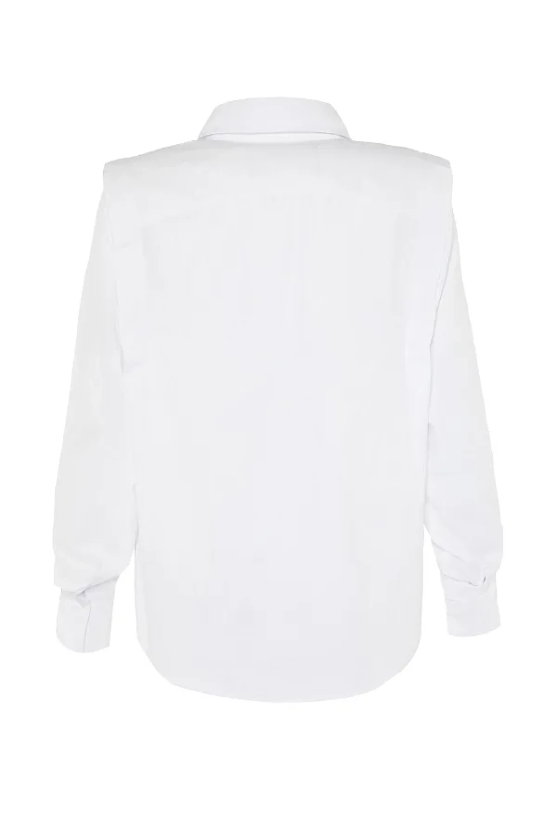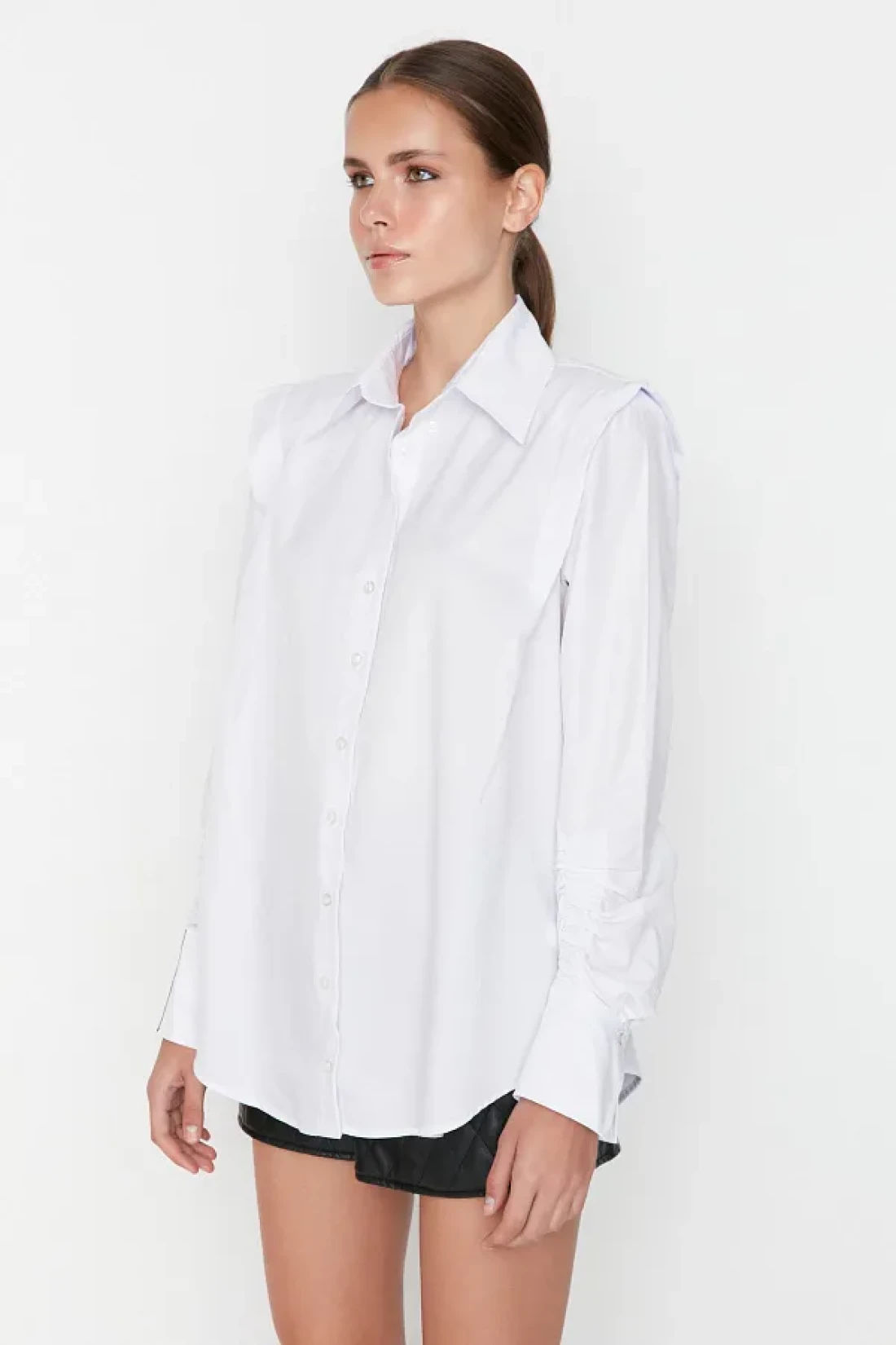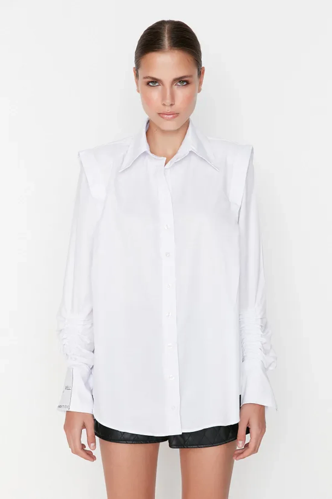 Collection قميص Sagaza Studio Poplin - أبيض، تفاصيل رباط، منسوج TPRAW22GO1191
